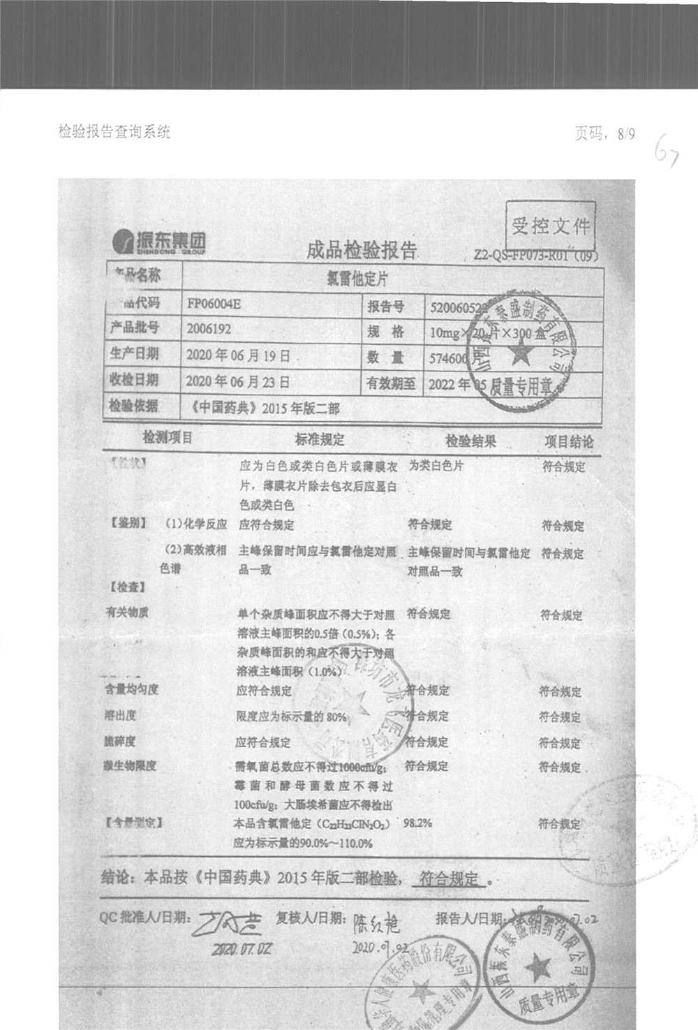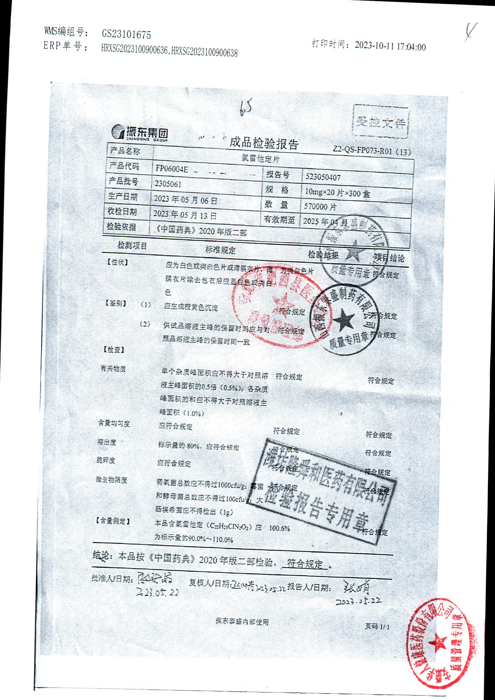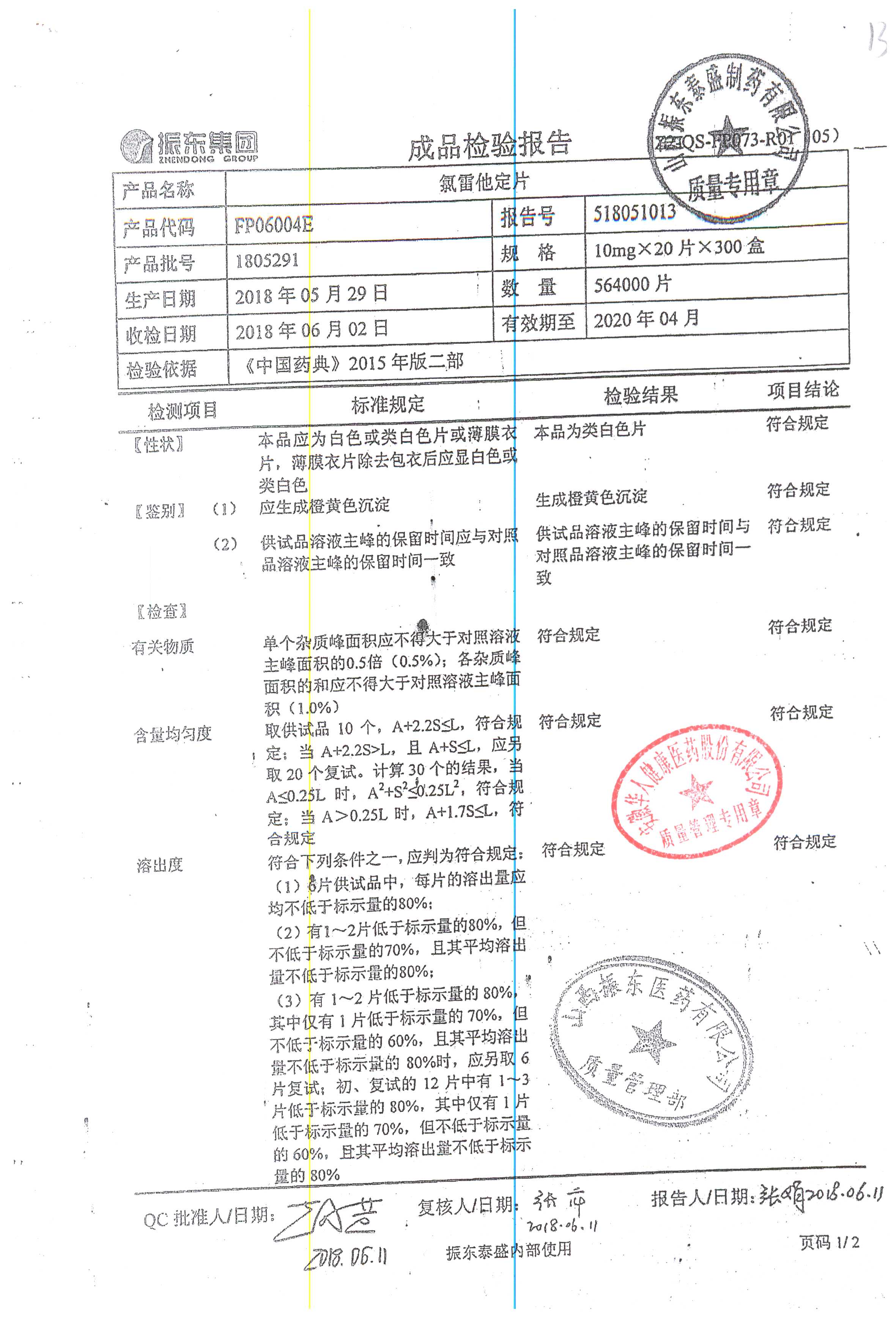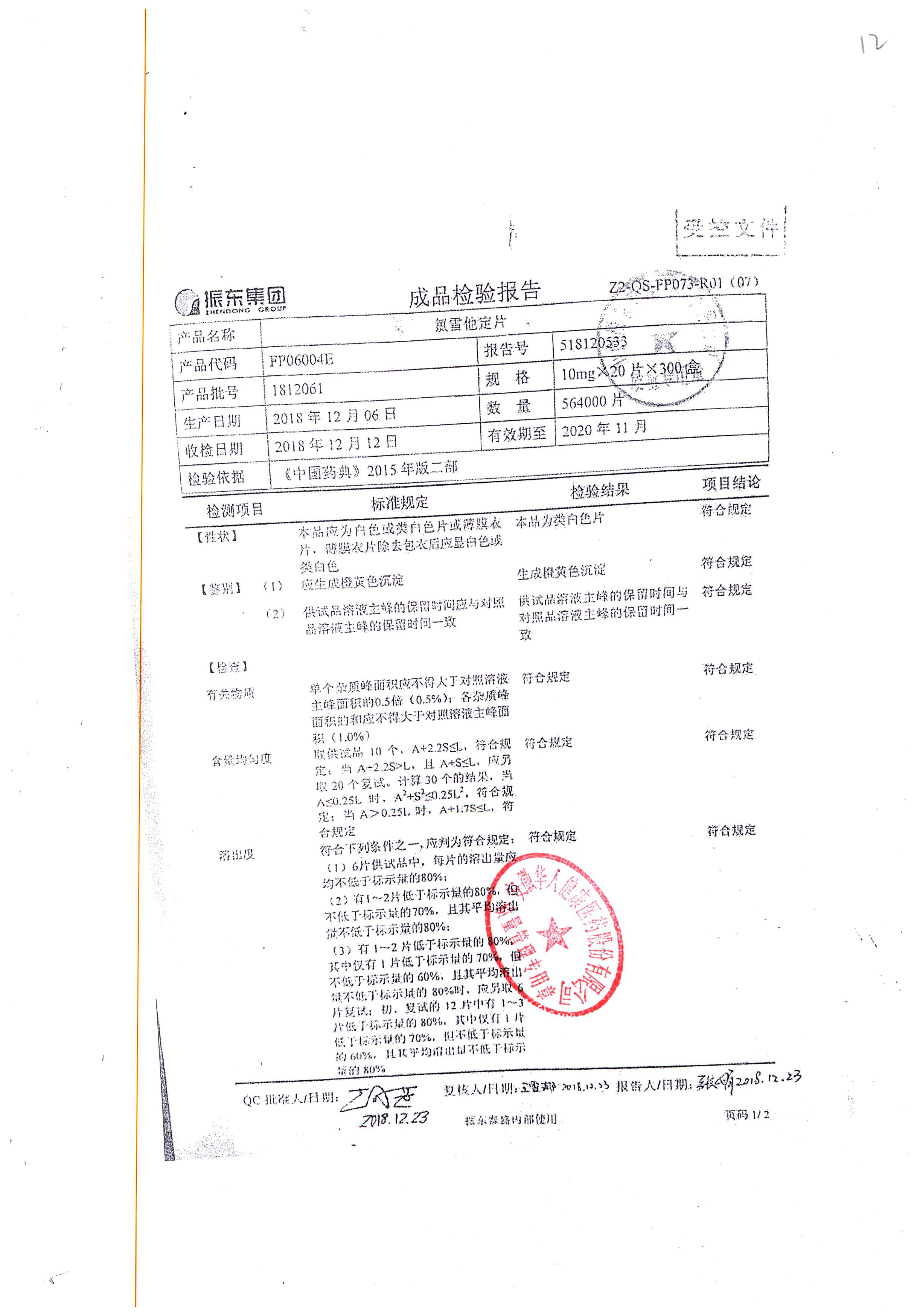 | 氯雷他定片 | 10mg*20s | 1809111(2/2) | 查看詳情 |