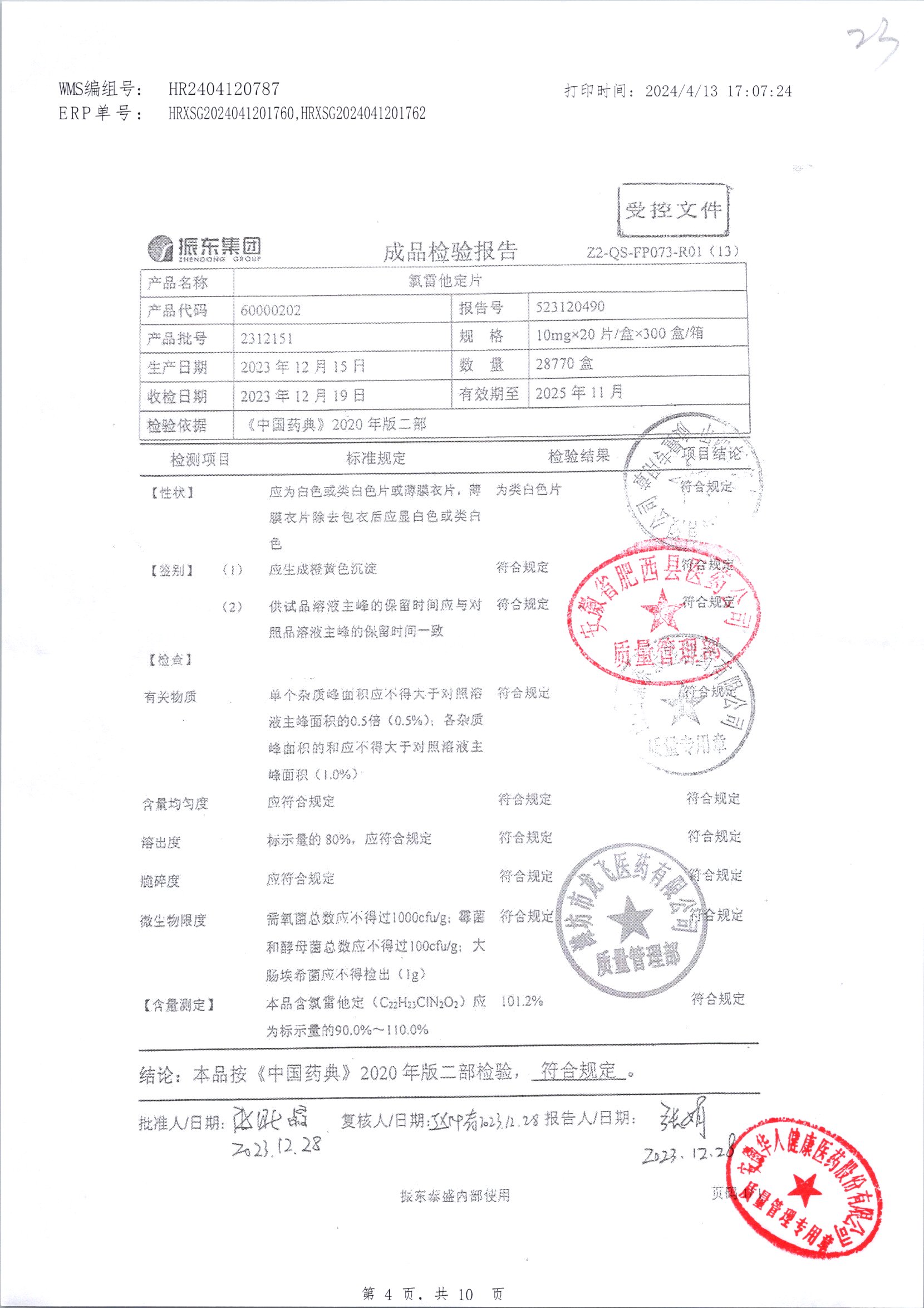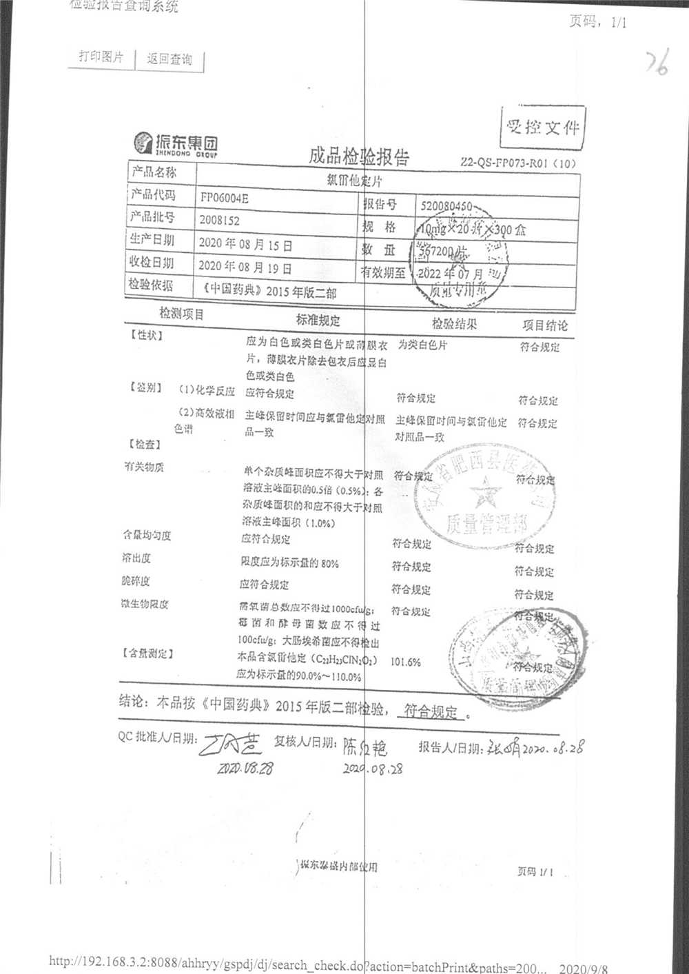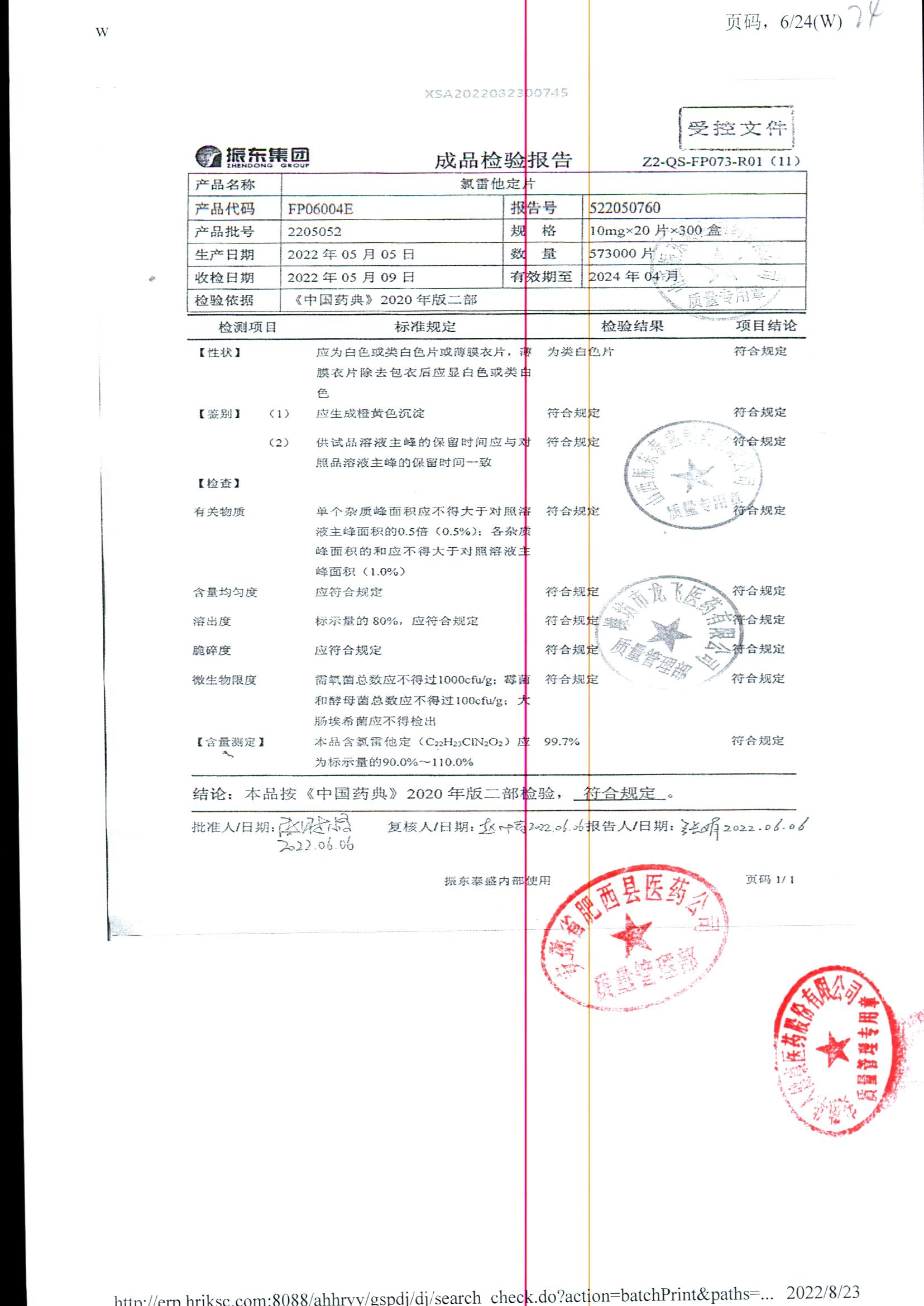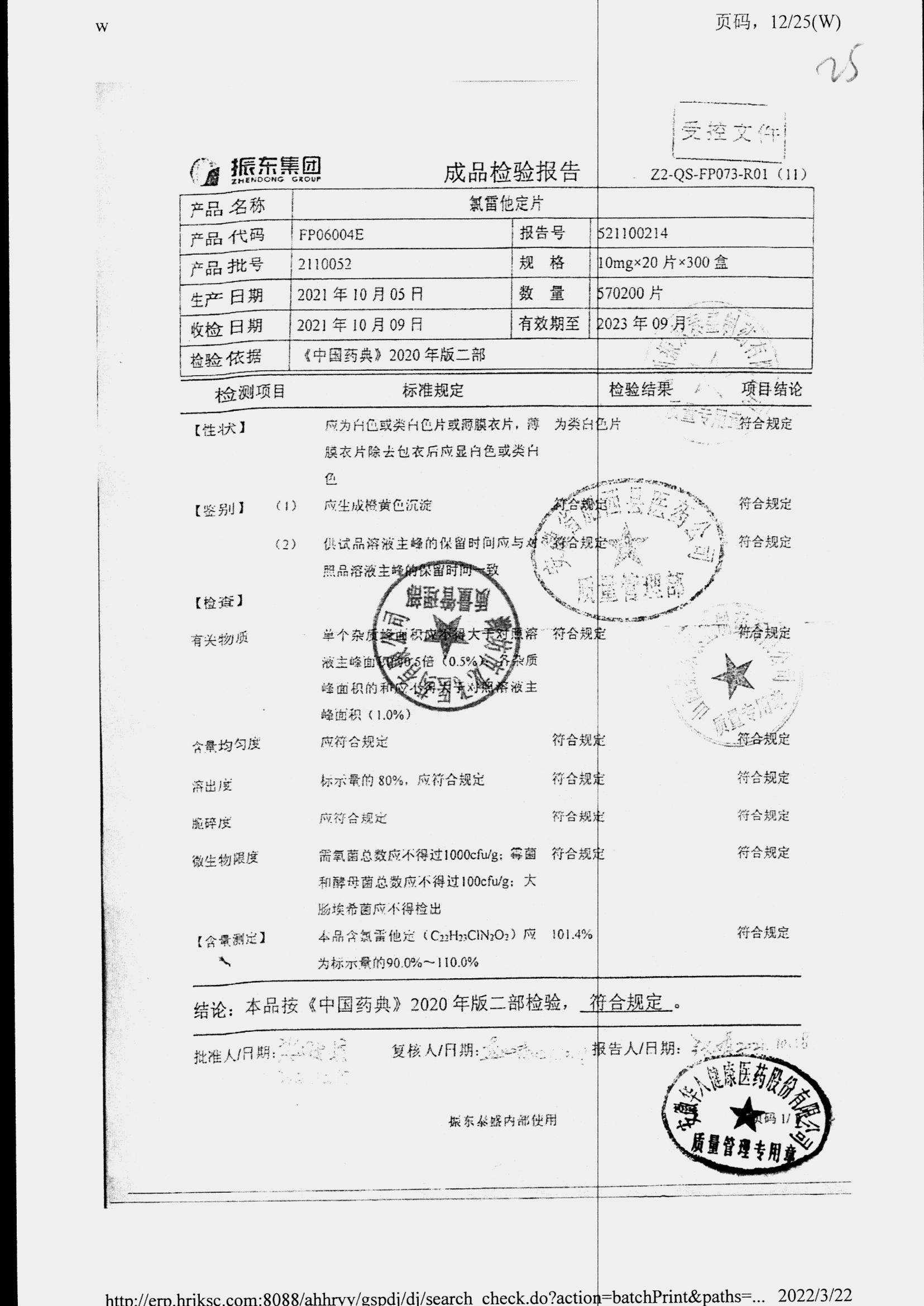 | 氯雷他定片 | 10mg*20s | 1809111(2/2) | 查看詳情 |
