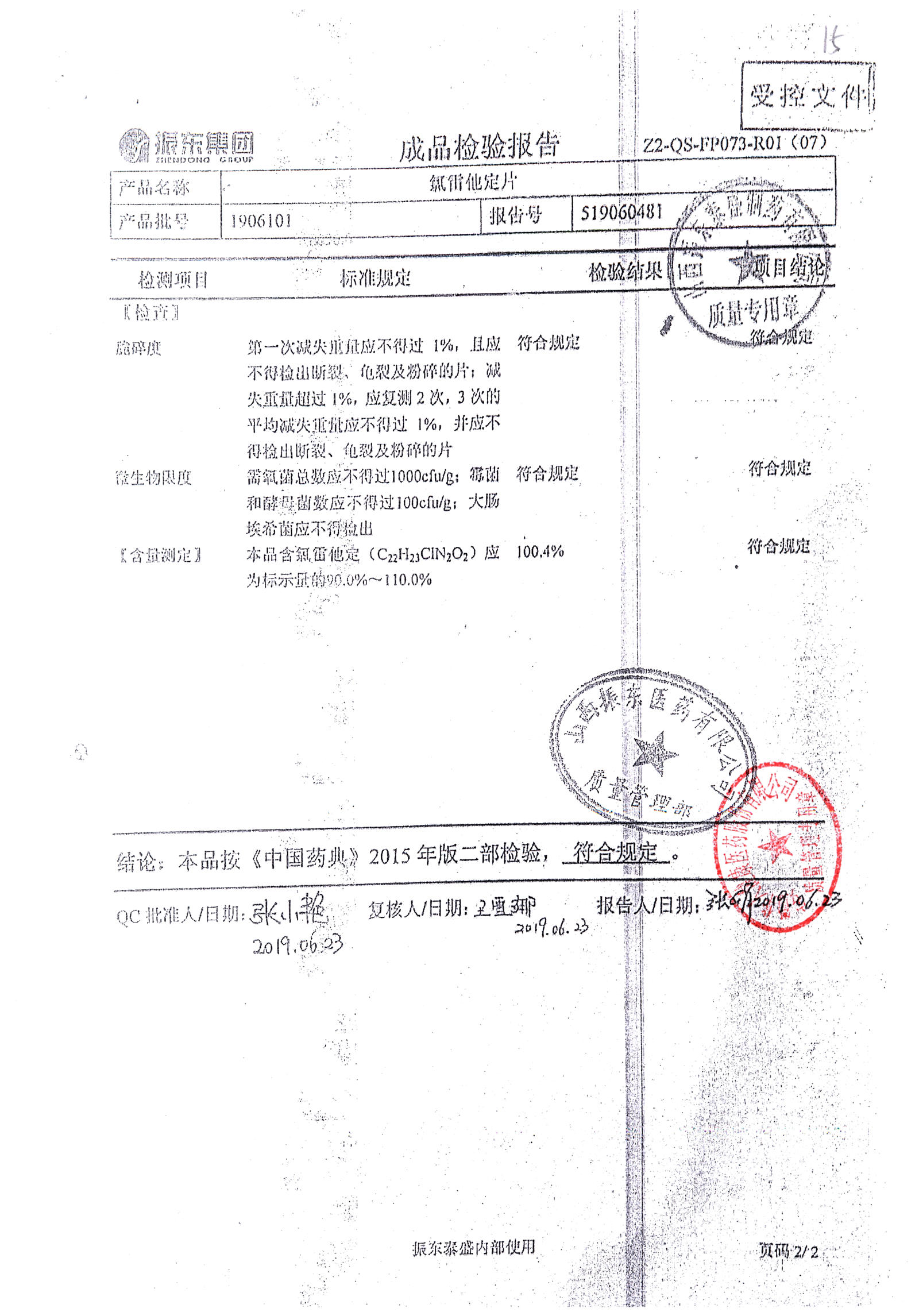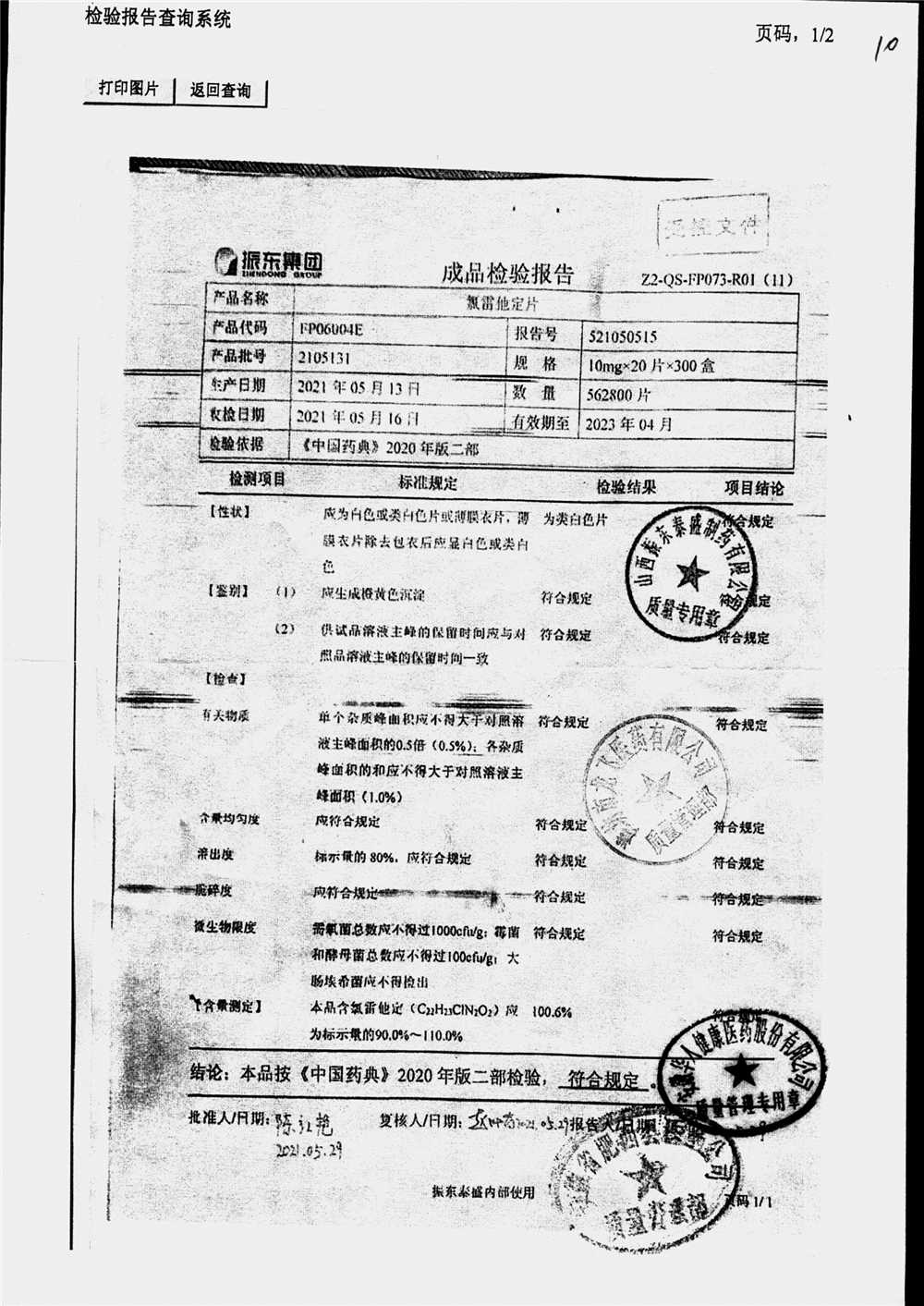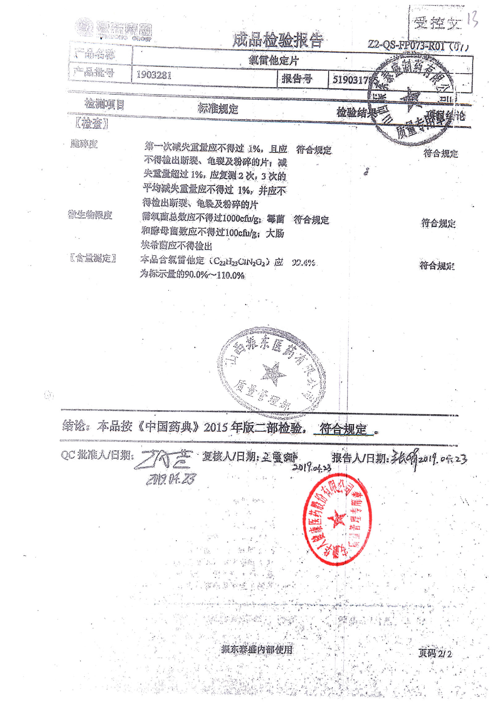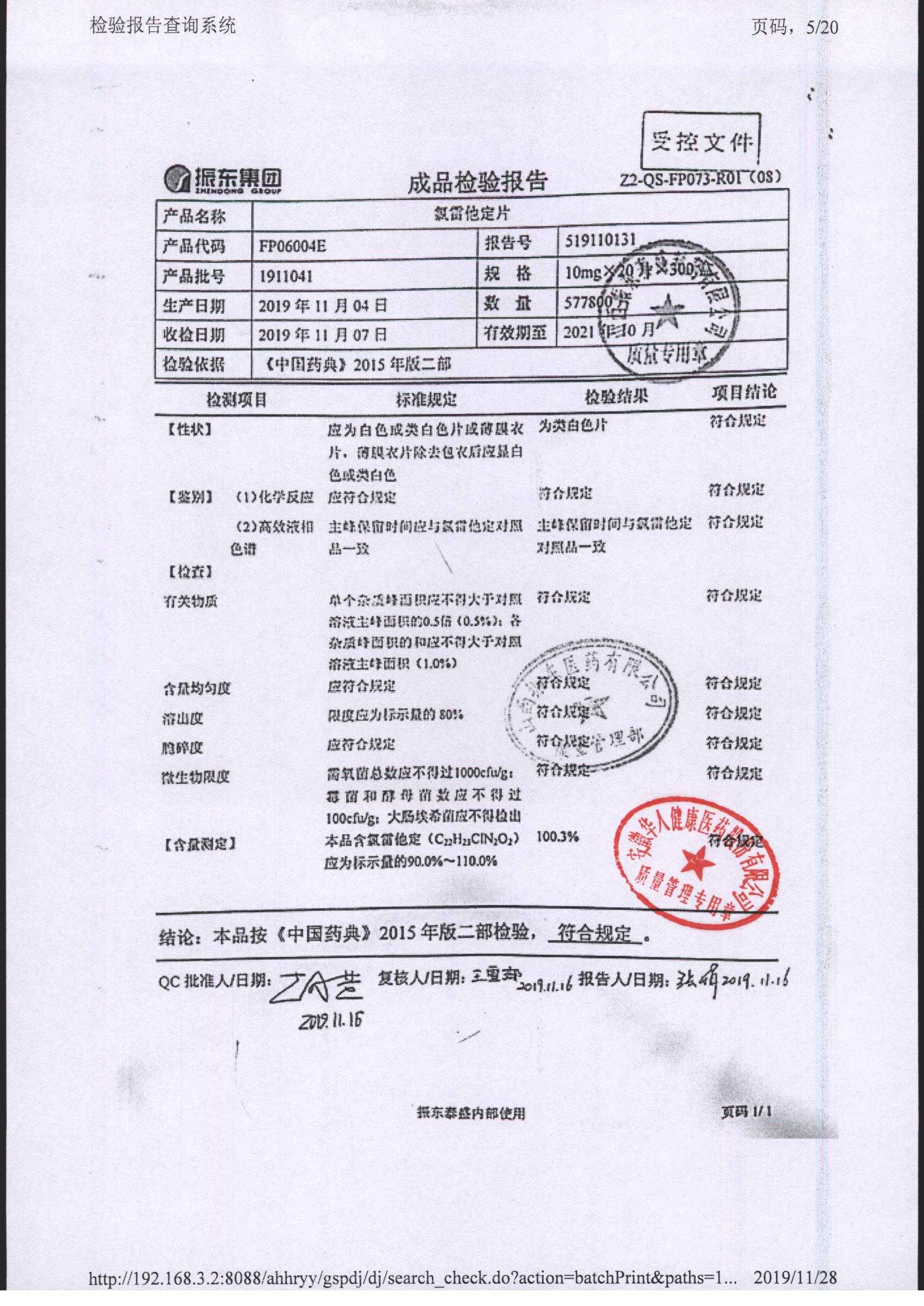 | 氯雷他定片 | 10mg*20s | 1906121(2/2) | 查看詳情 |