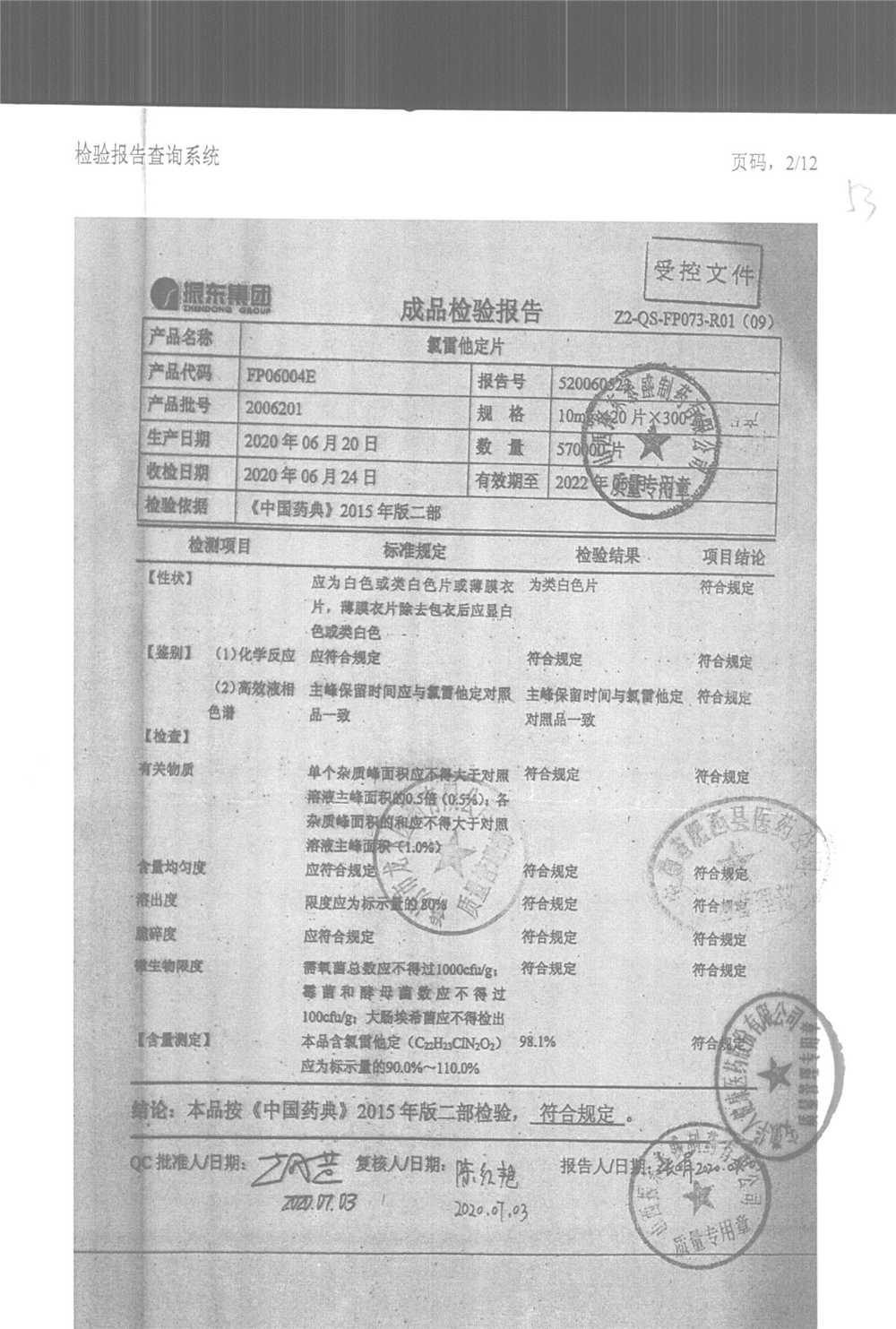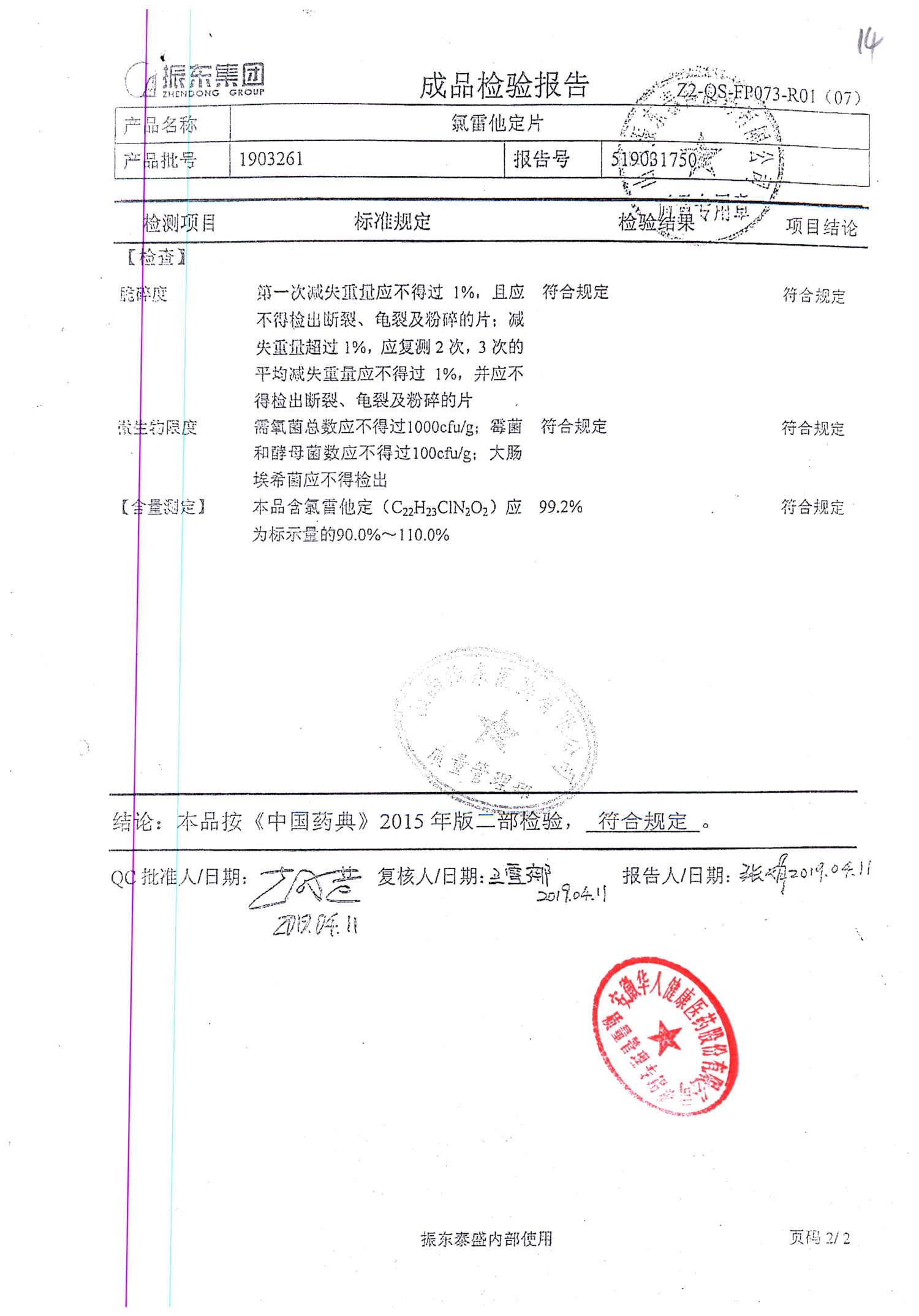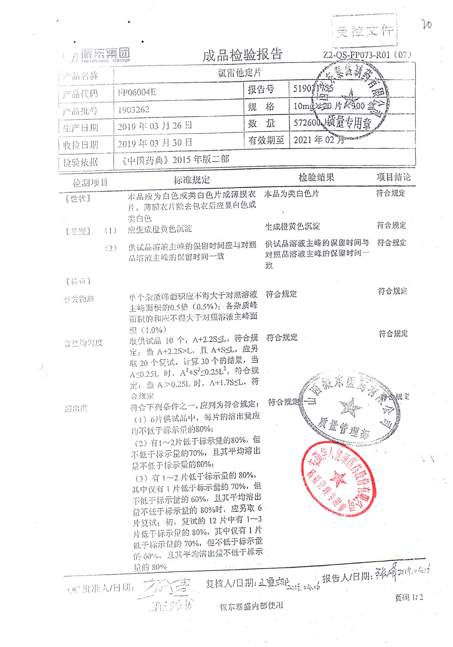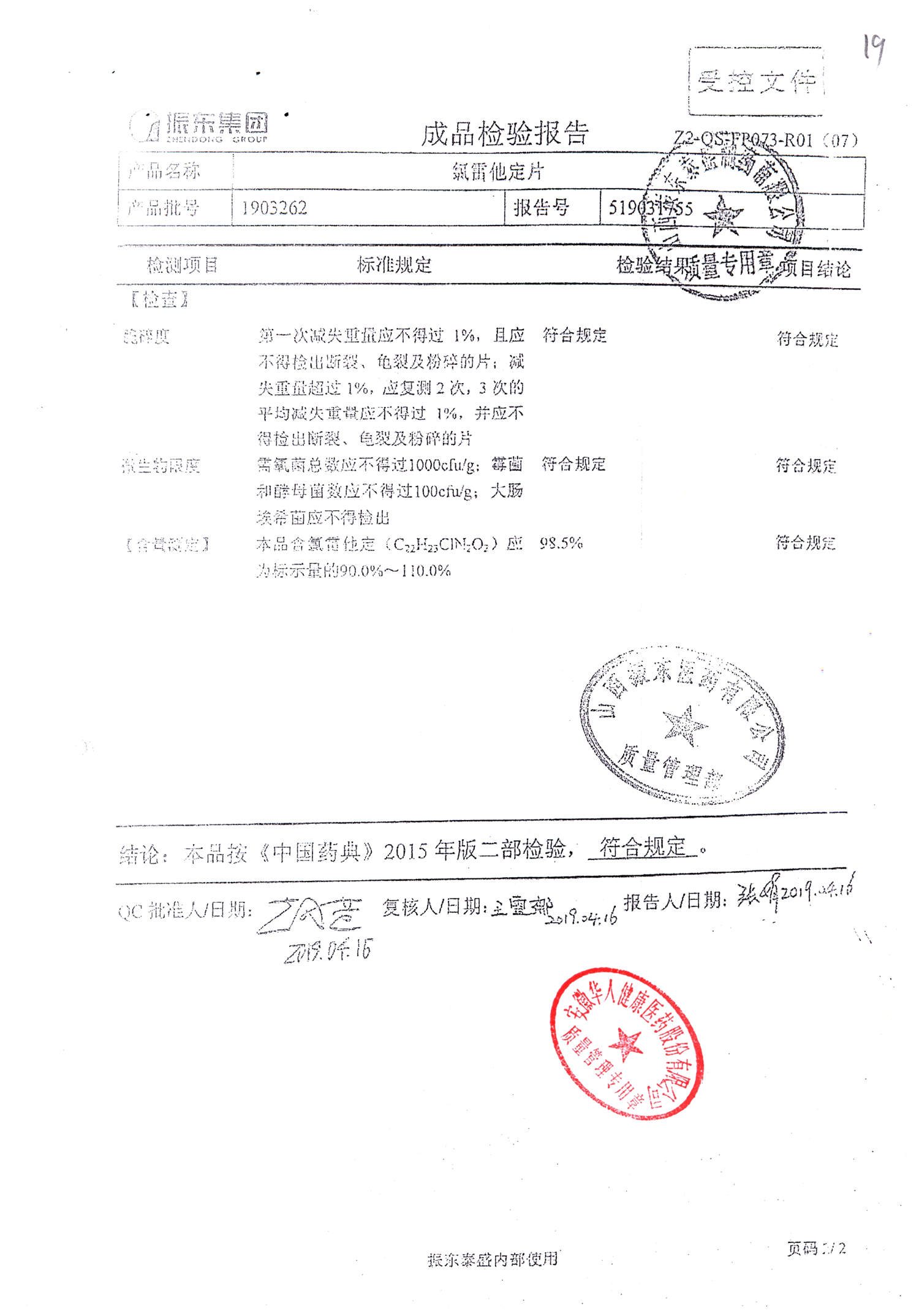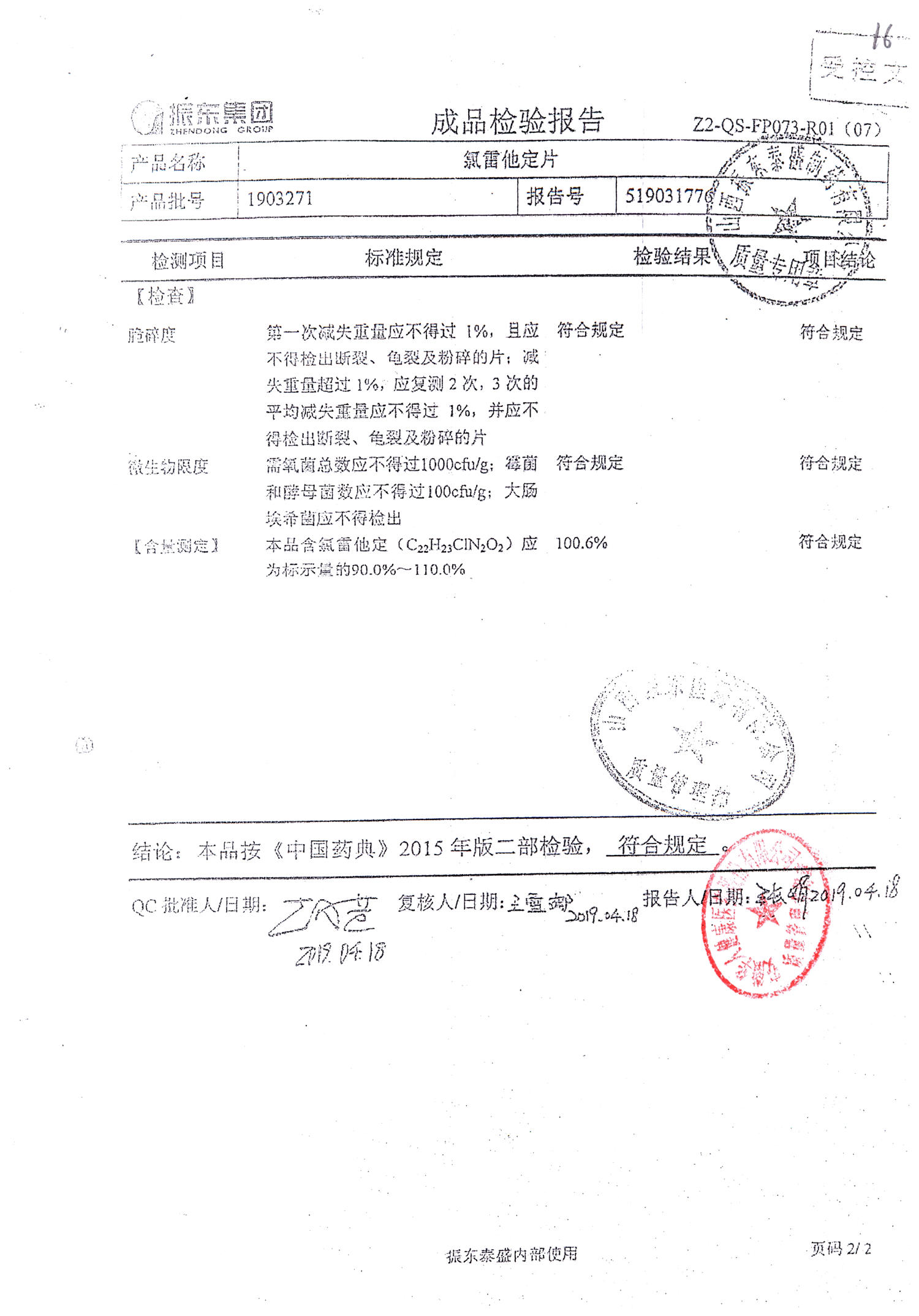 | 氯雷他定片 | 10mg*20s | 1906121(2/2) | 查看詳情 |