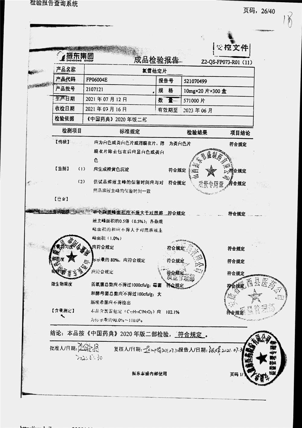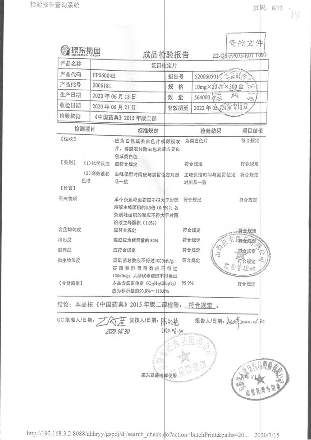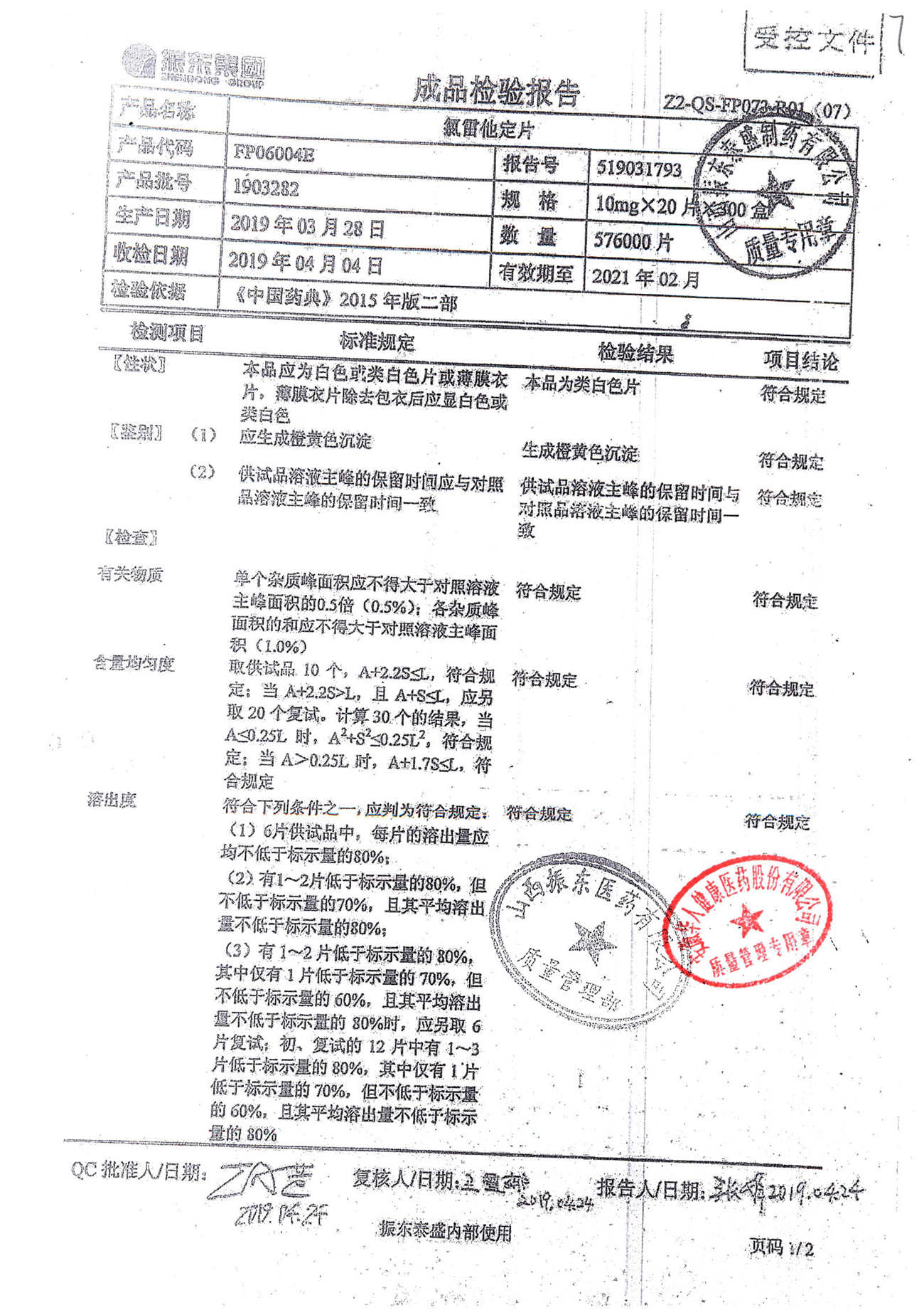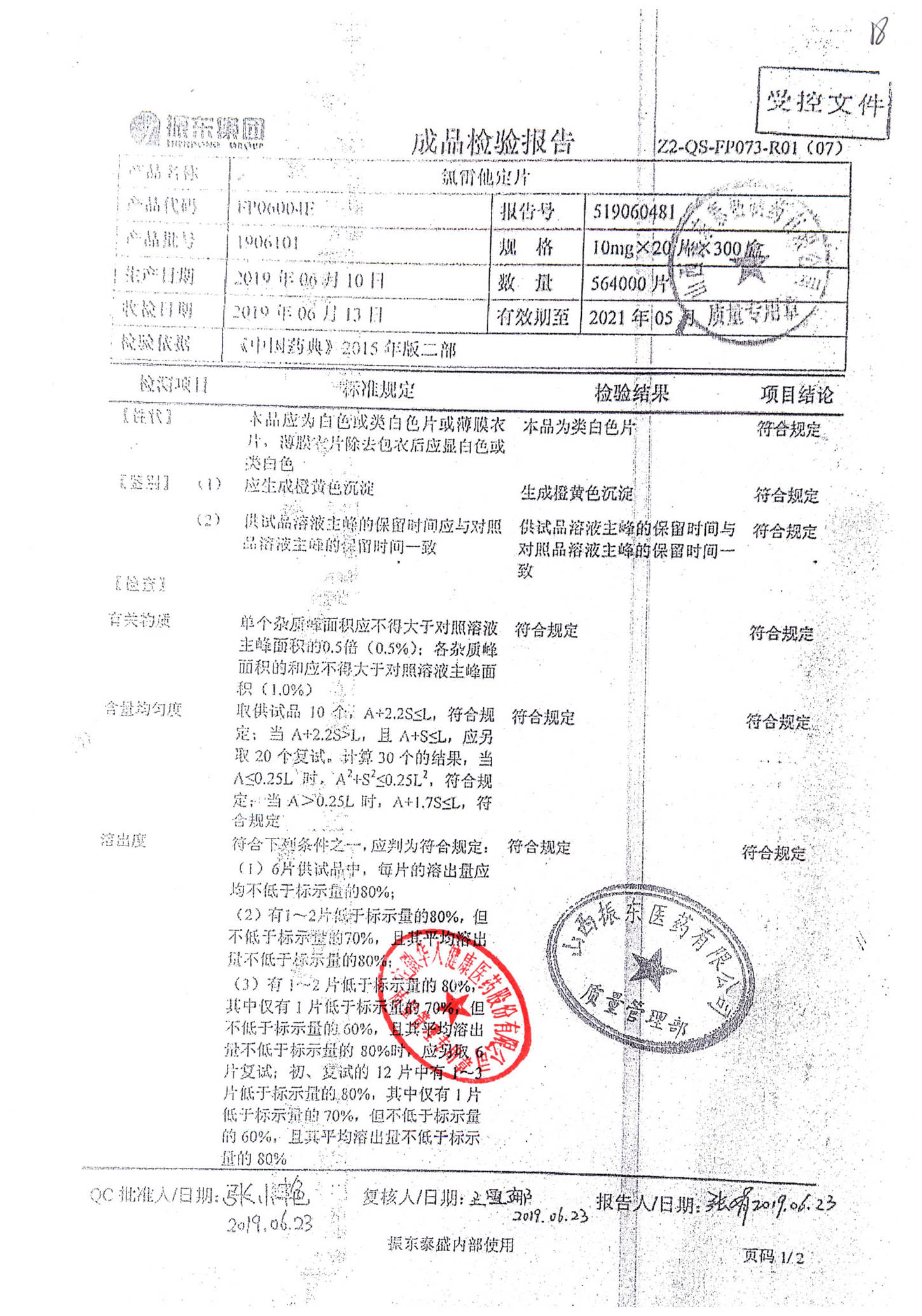 | 氯雷他定片 | 10mg*20s | 1906121(2/2) | 查看詳情 |