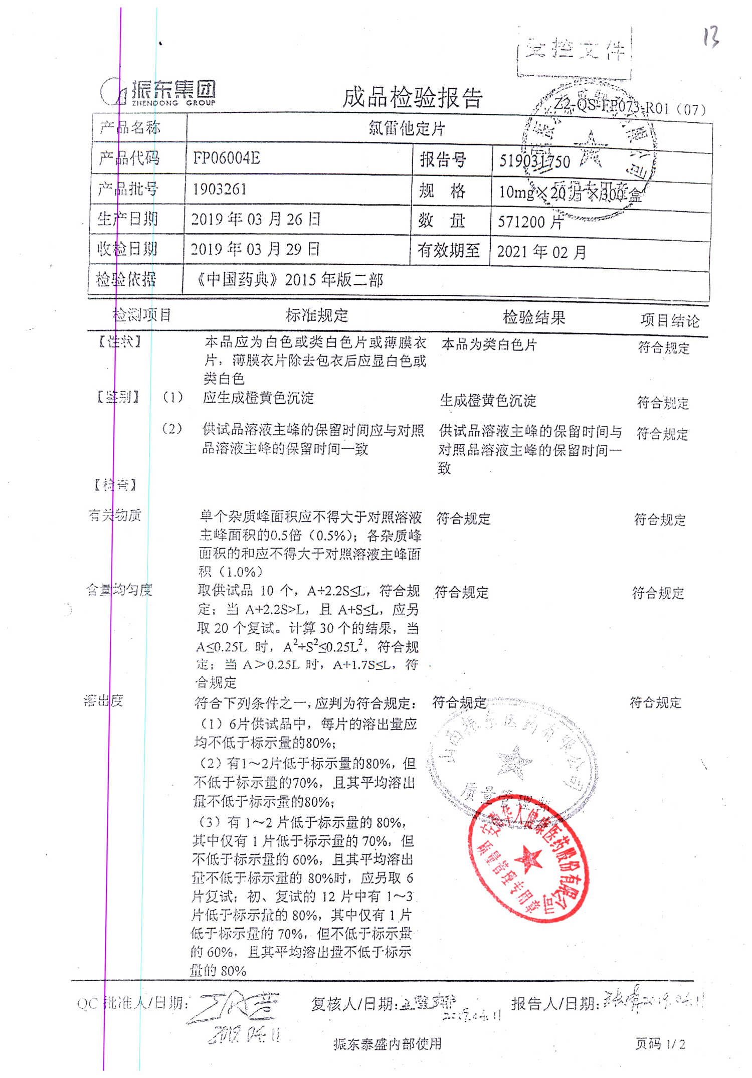 | 氯雷他定片 | 10mg*20s | 1906101(2/2) | 查看詳情 |
