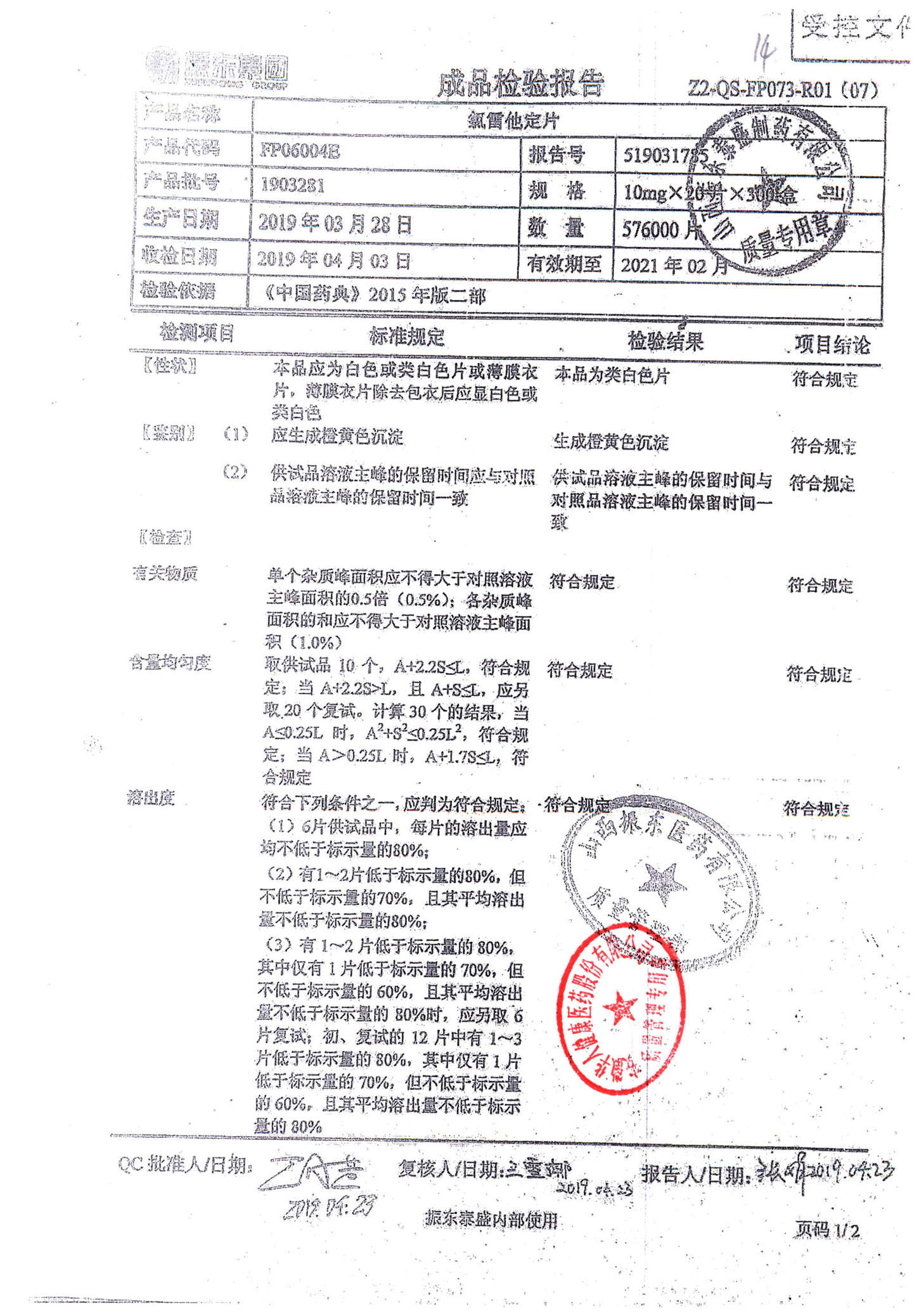 | 名稱 | 規(guī)格 | 批號 | 藥檢報告 |