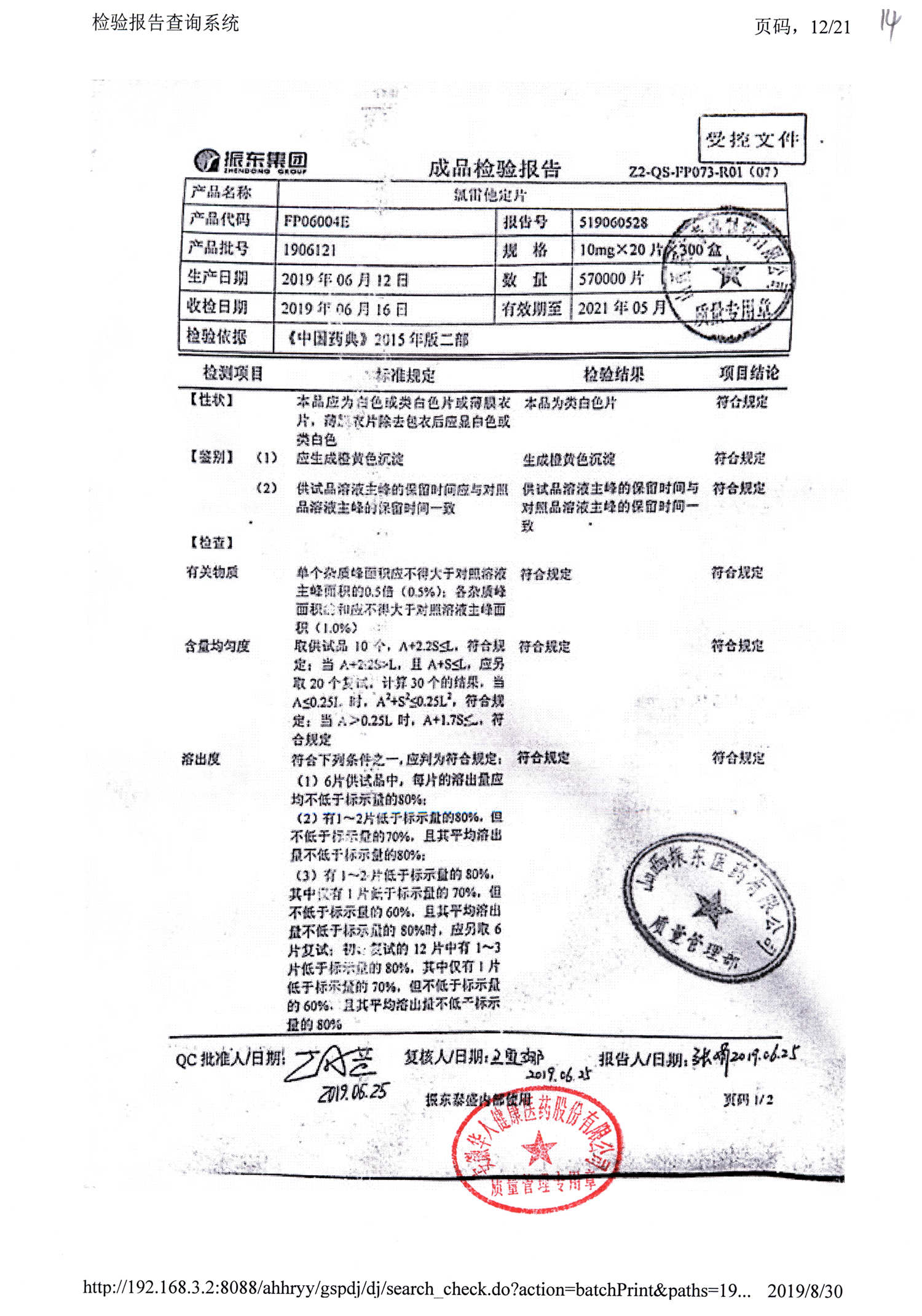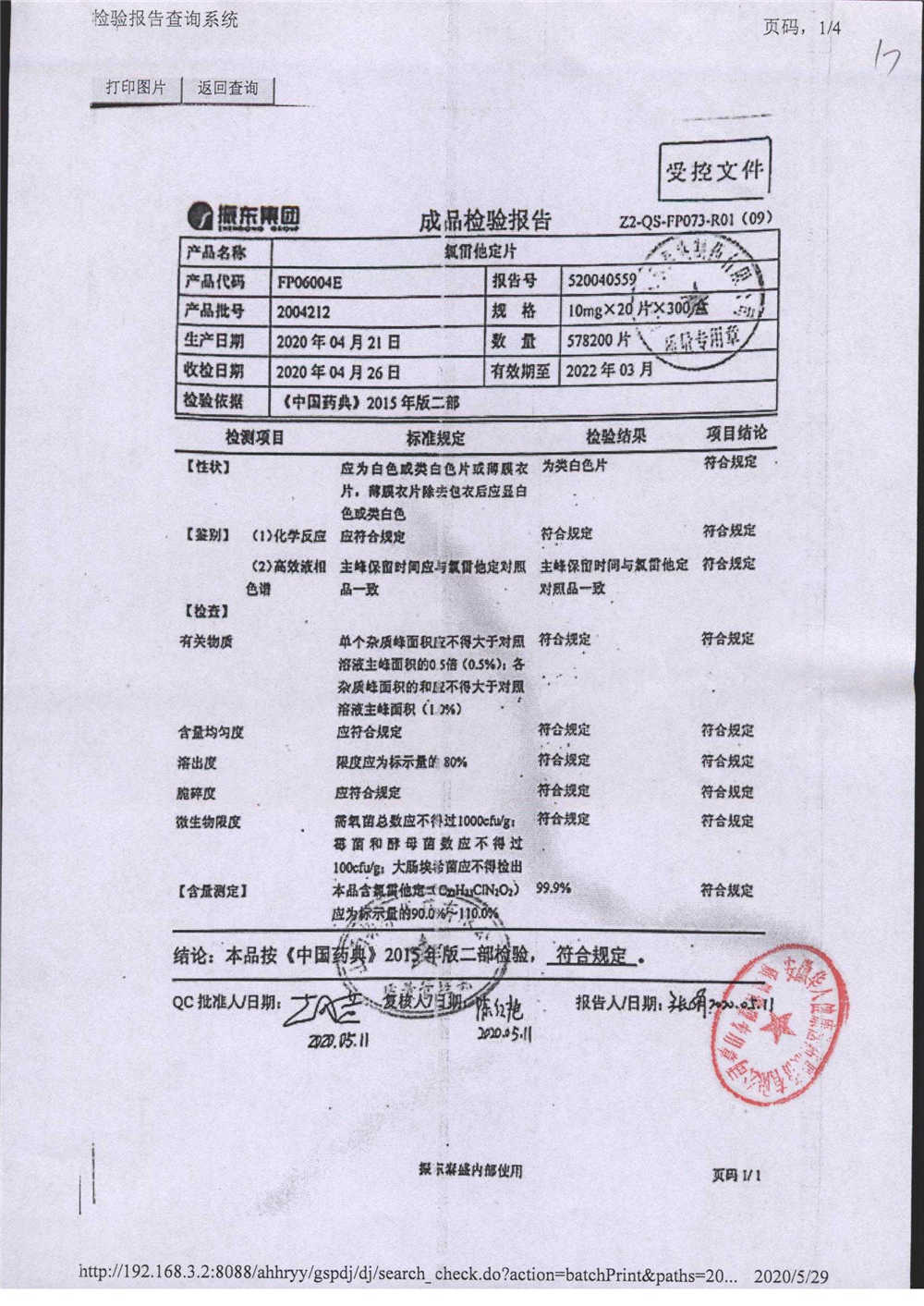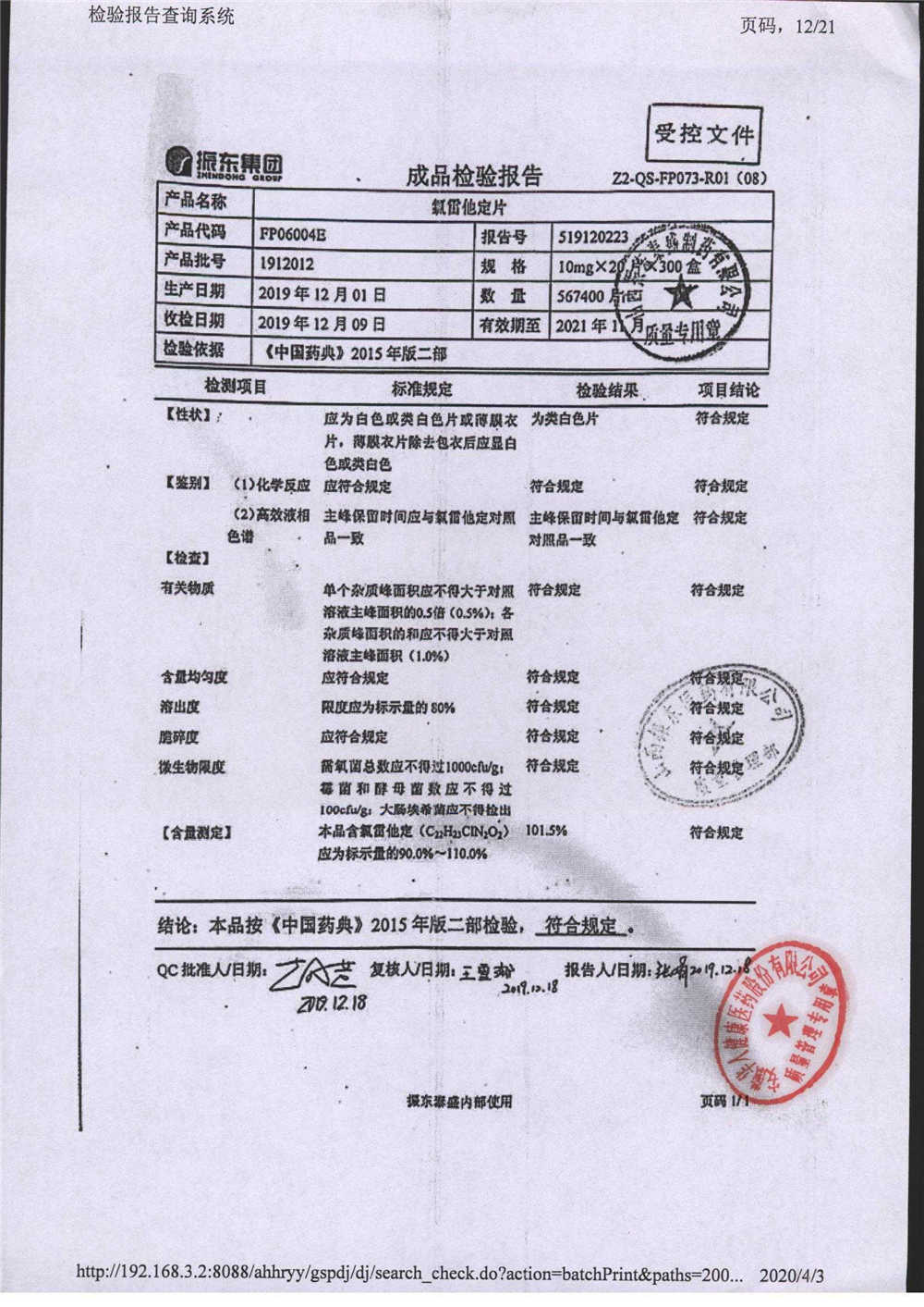 | 氯雷他定片 | 10mg*20s | 1908231(2/2) | 查看詳情 |