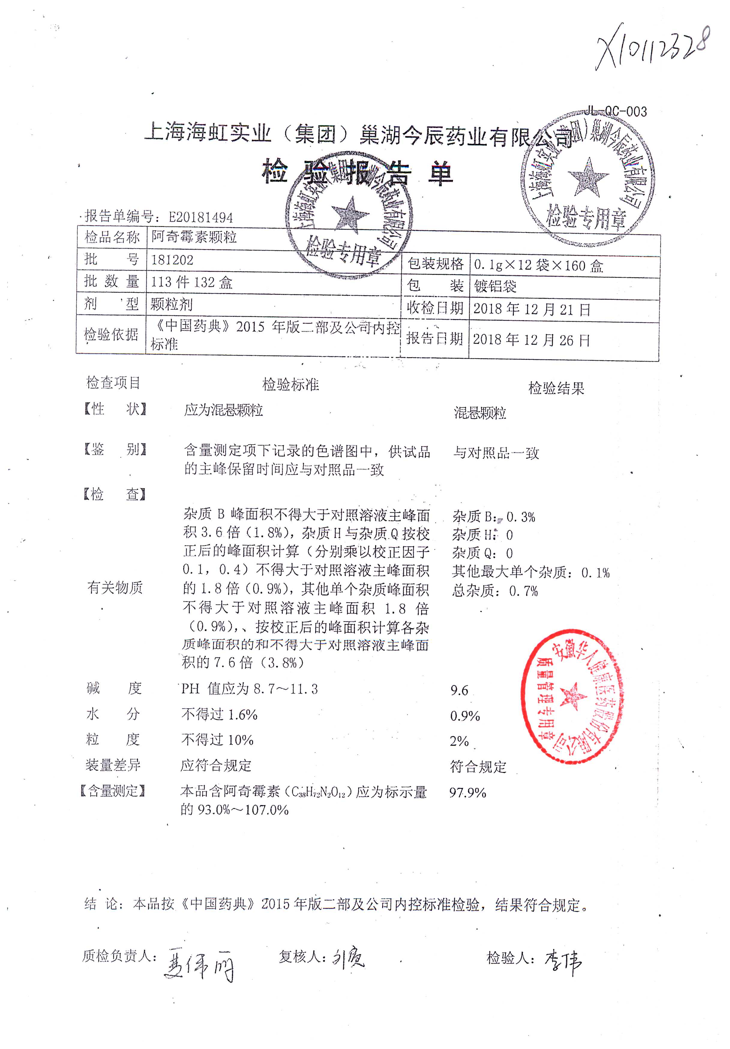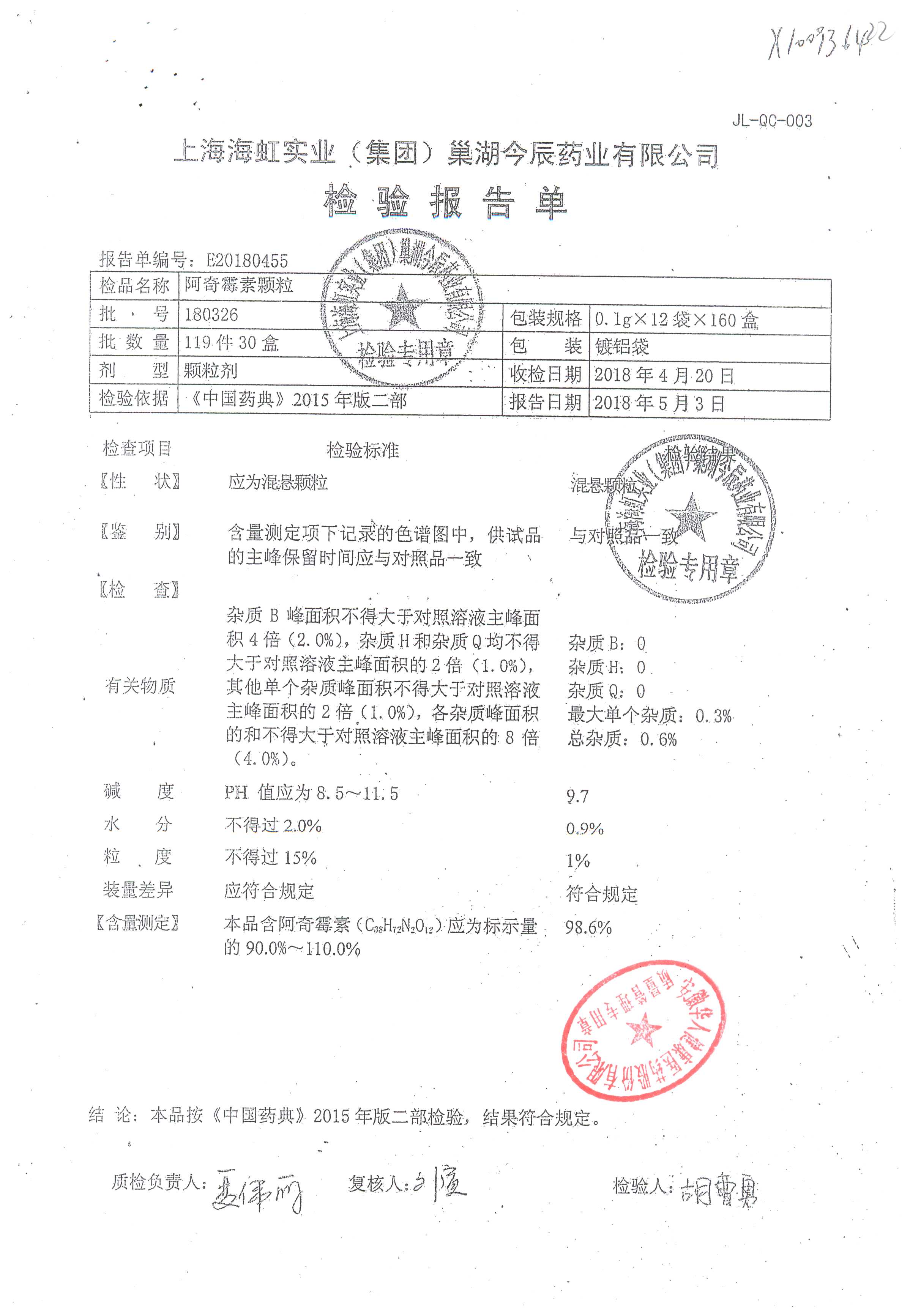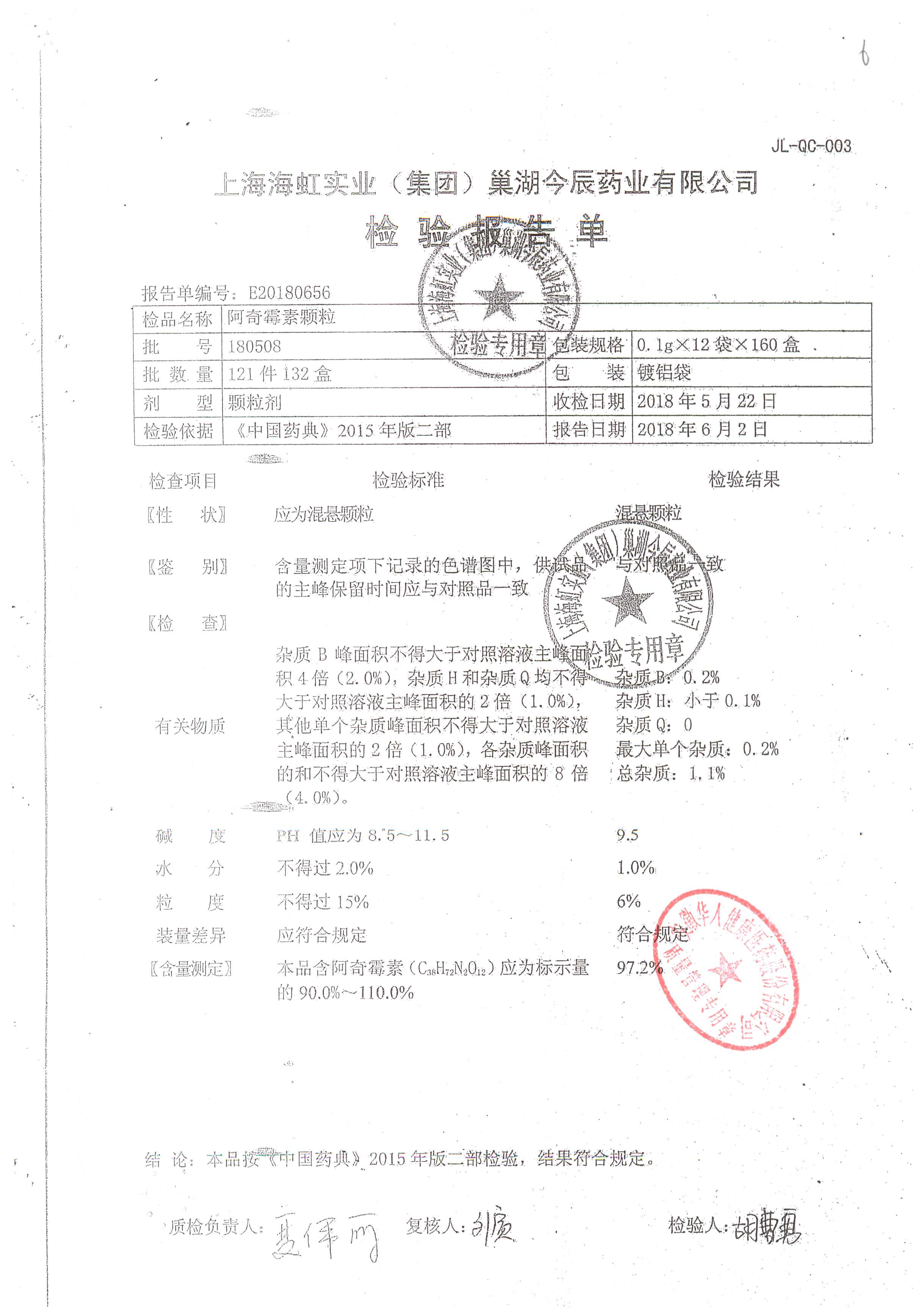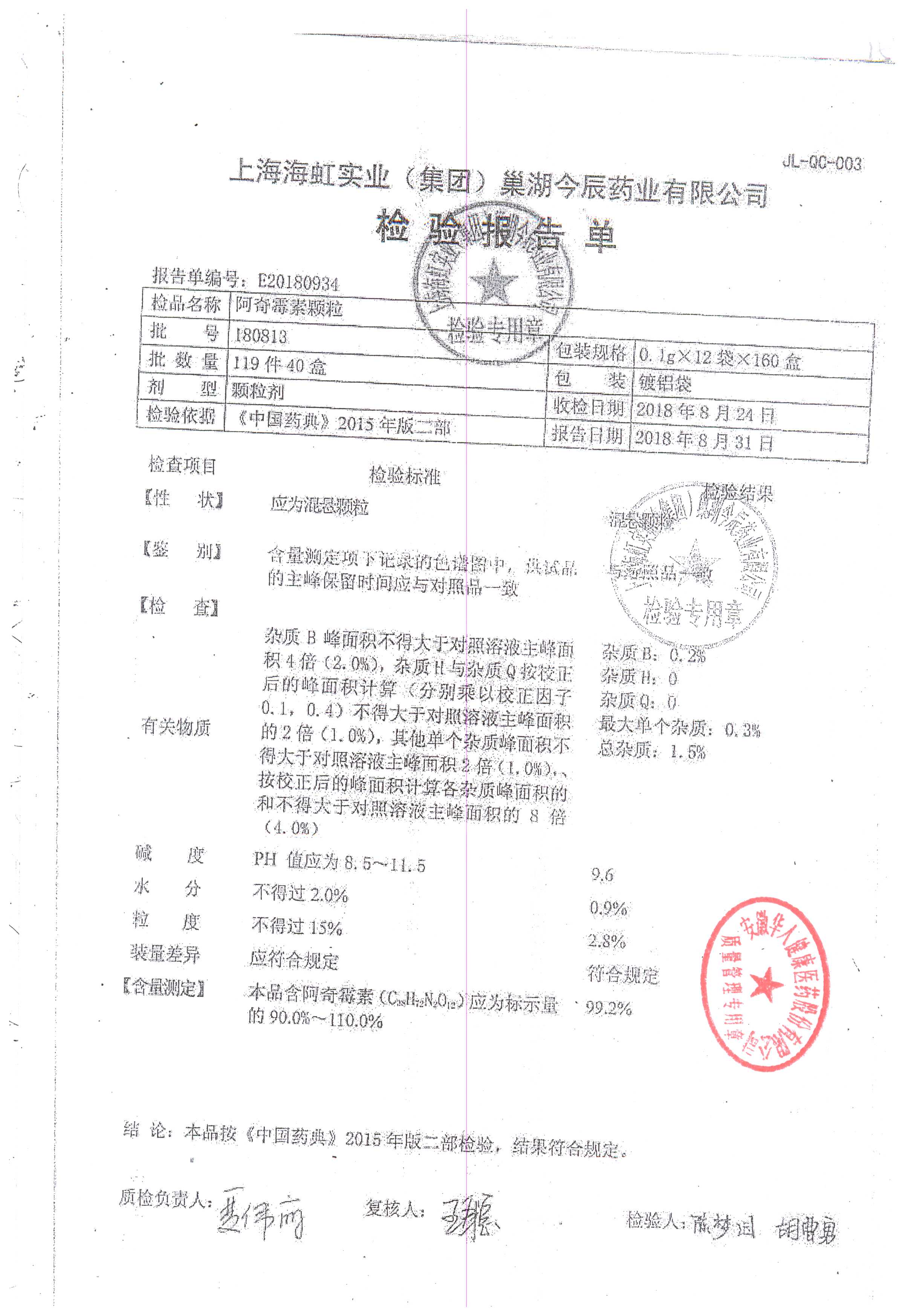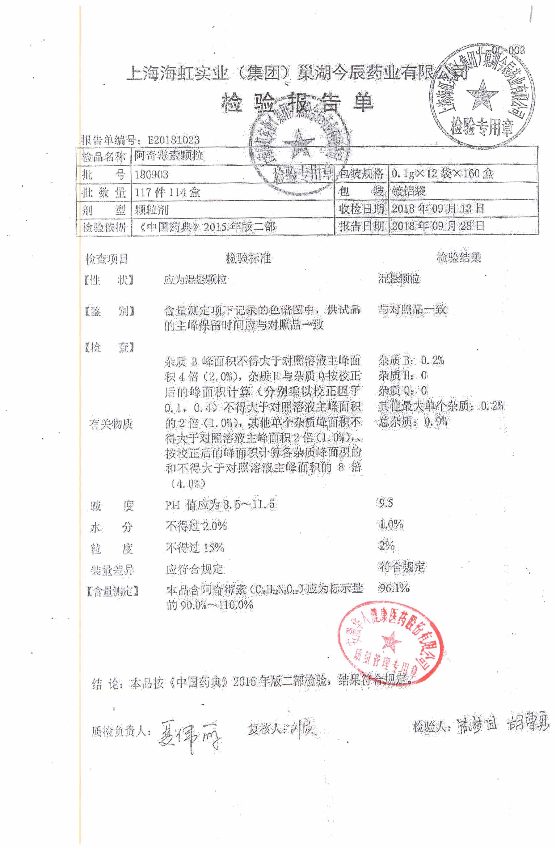 | 阿奇霉素顆粒 | 0.1g-12袋 | 180813 | 查看詳情 |