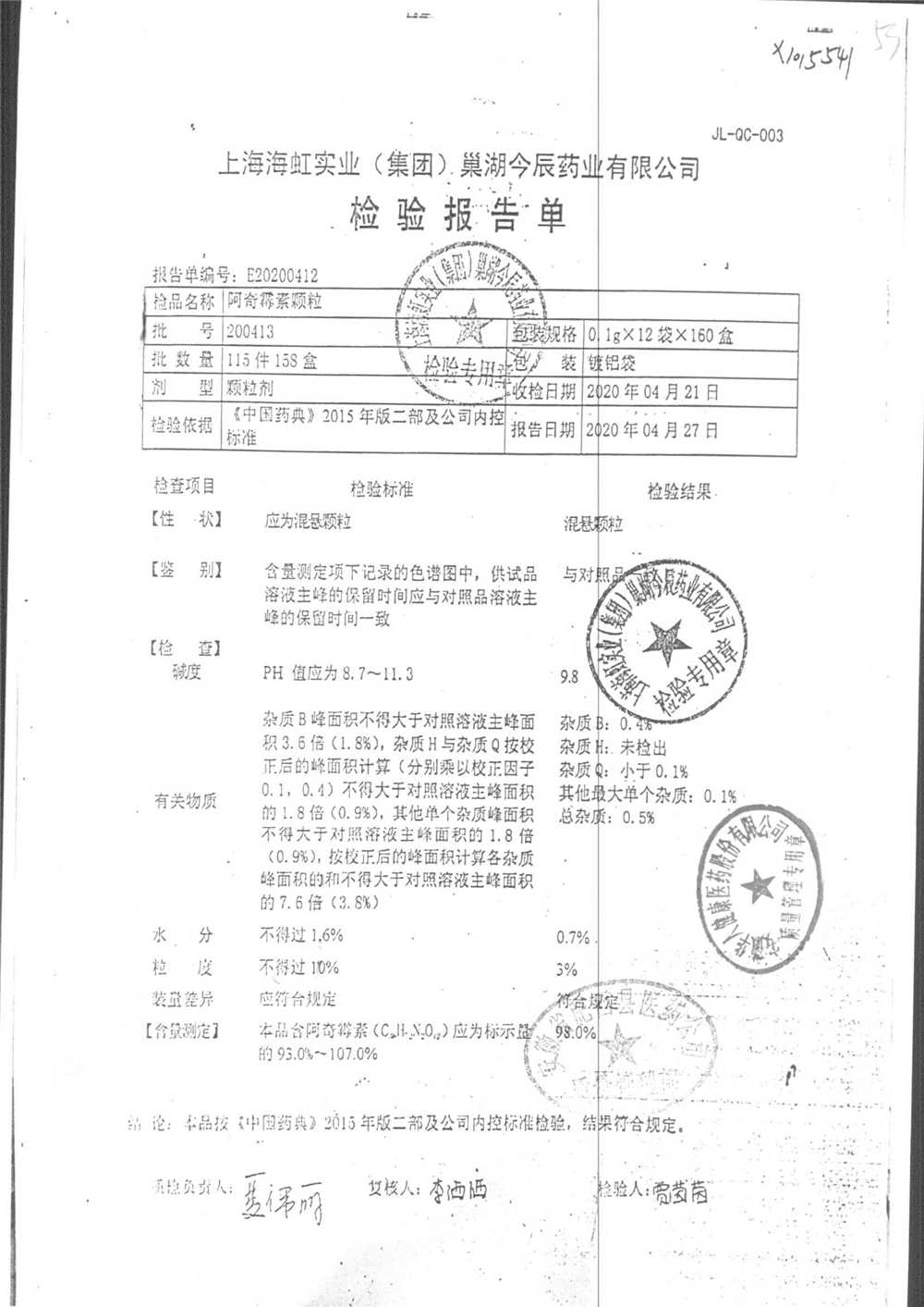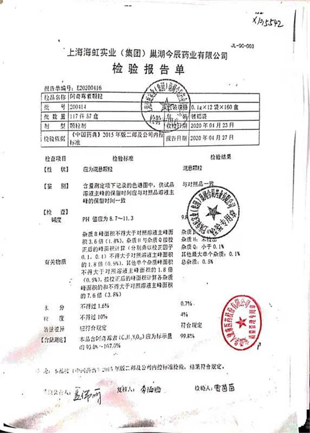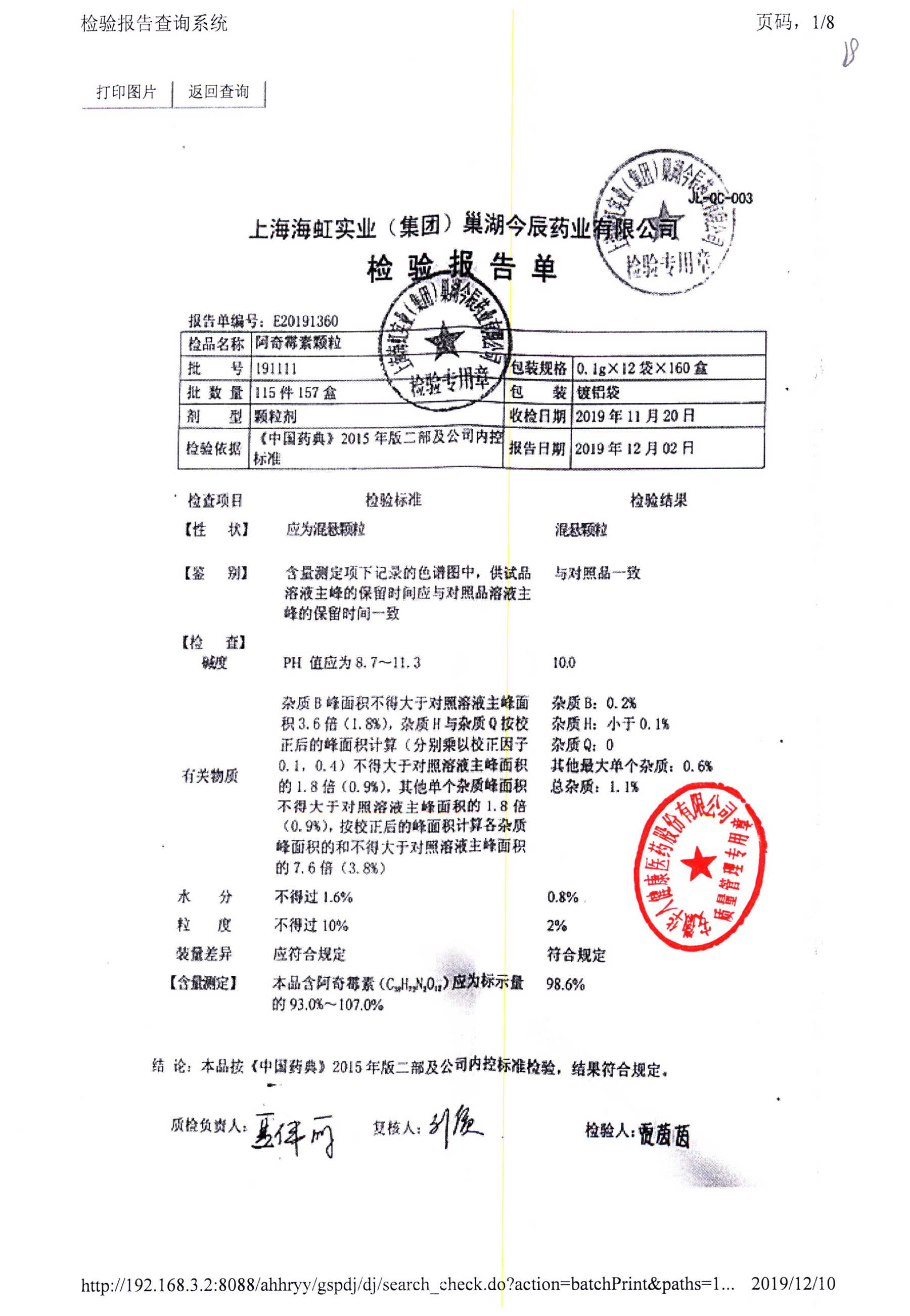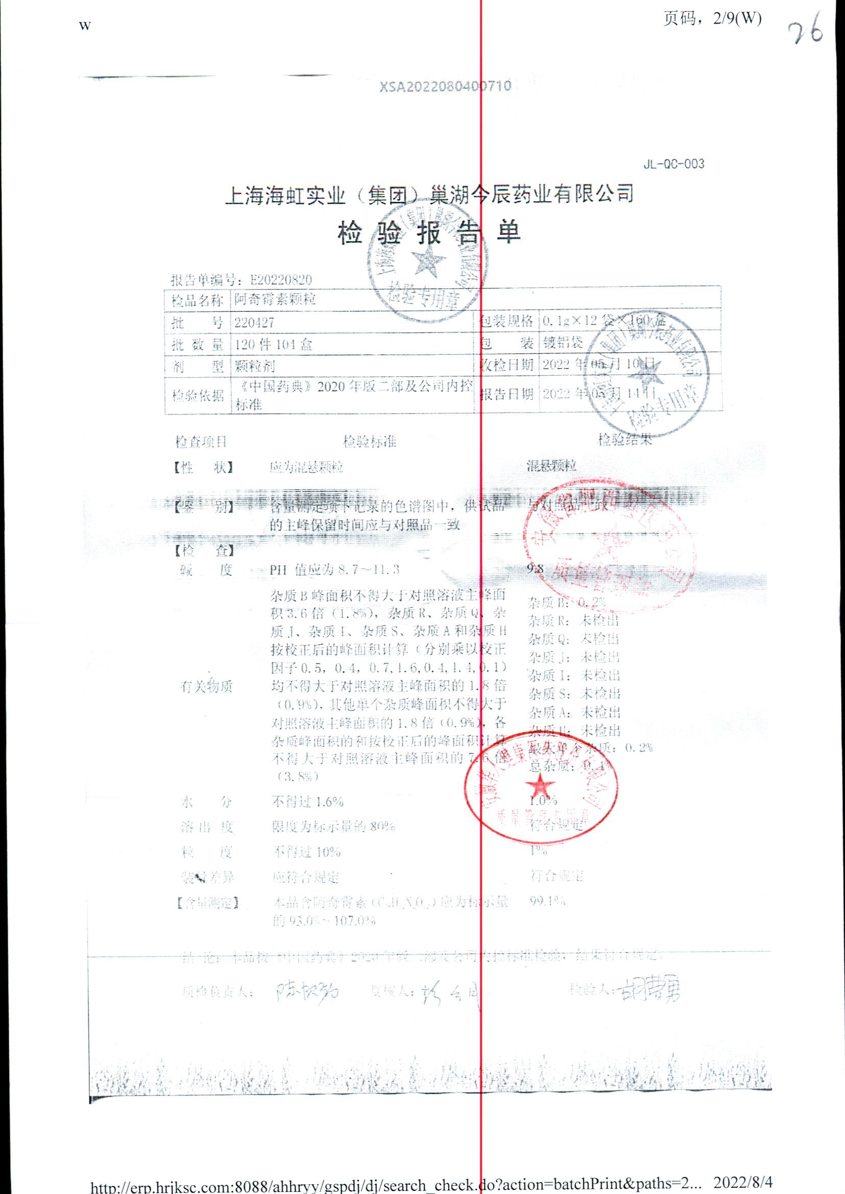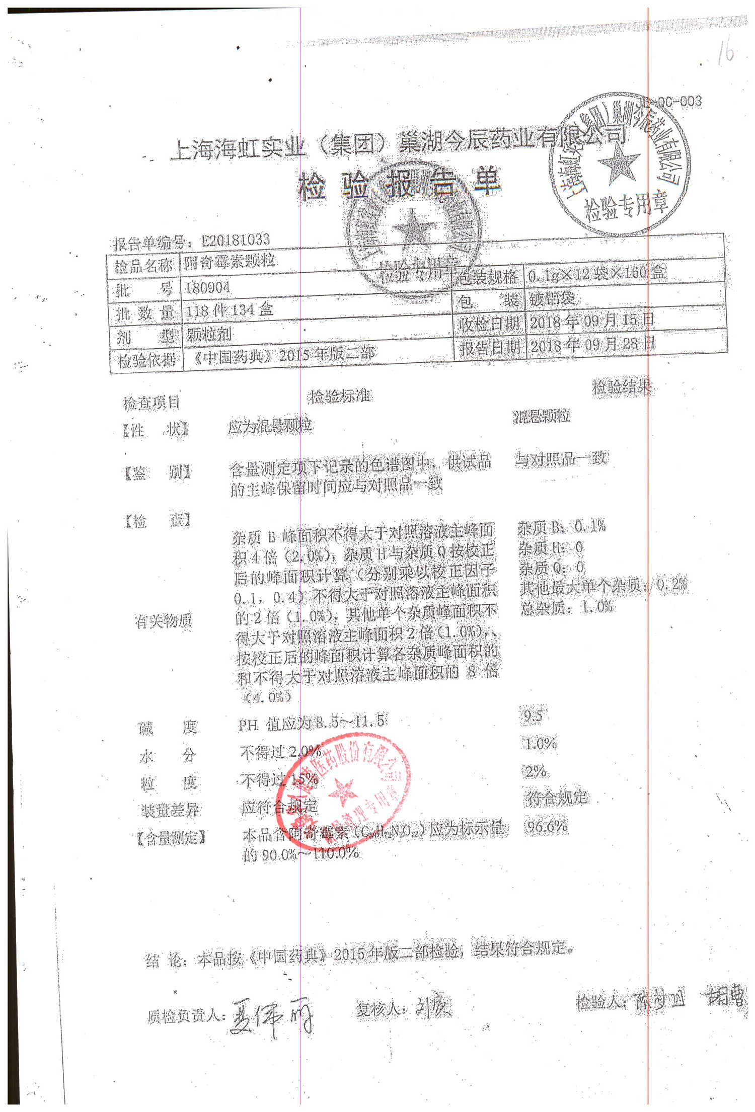 | 名稱 | 規(guī)格 | 批號 | 藥檢報告 |