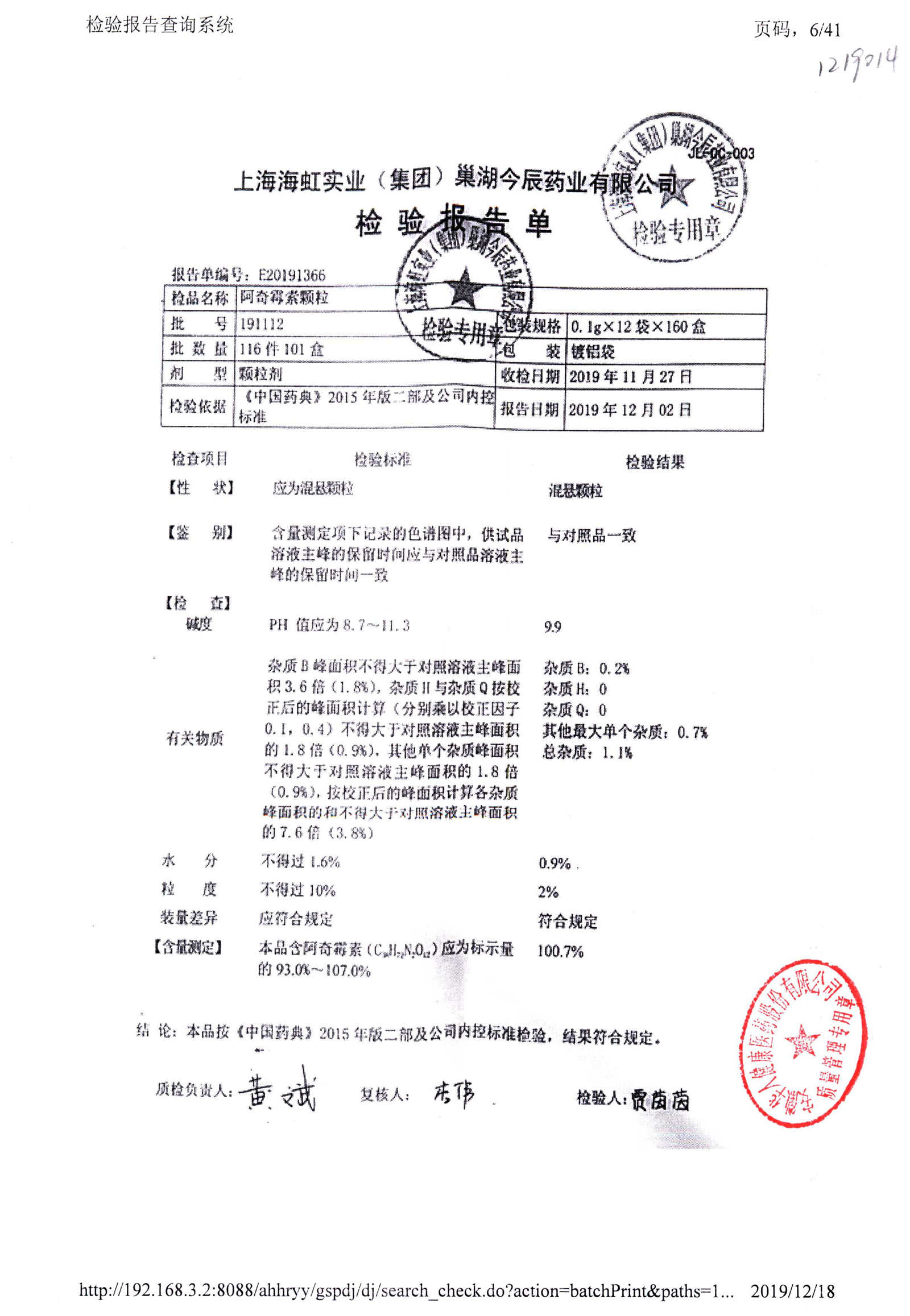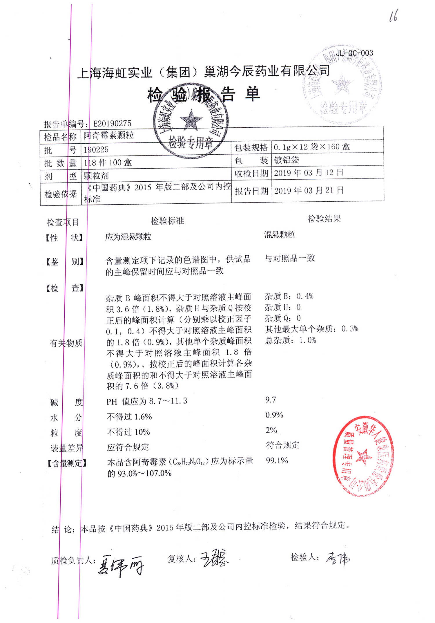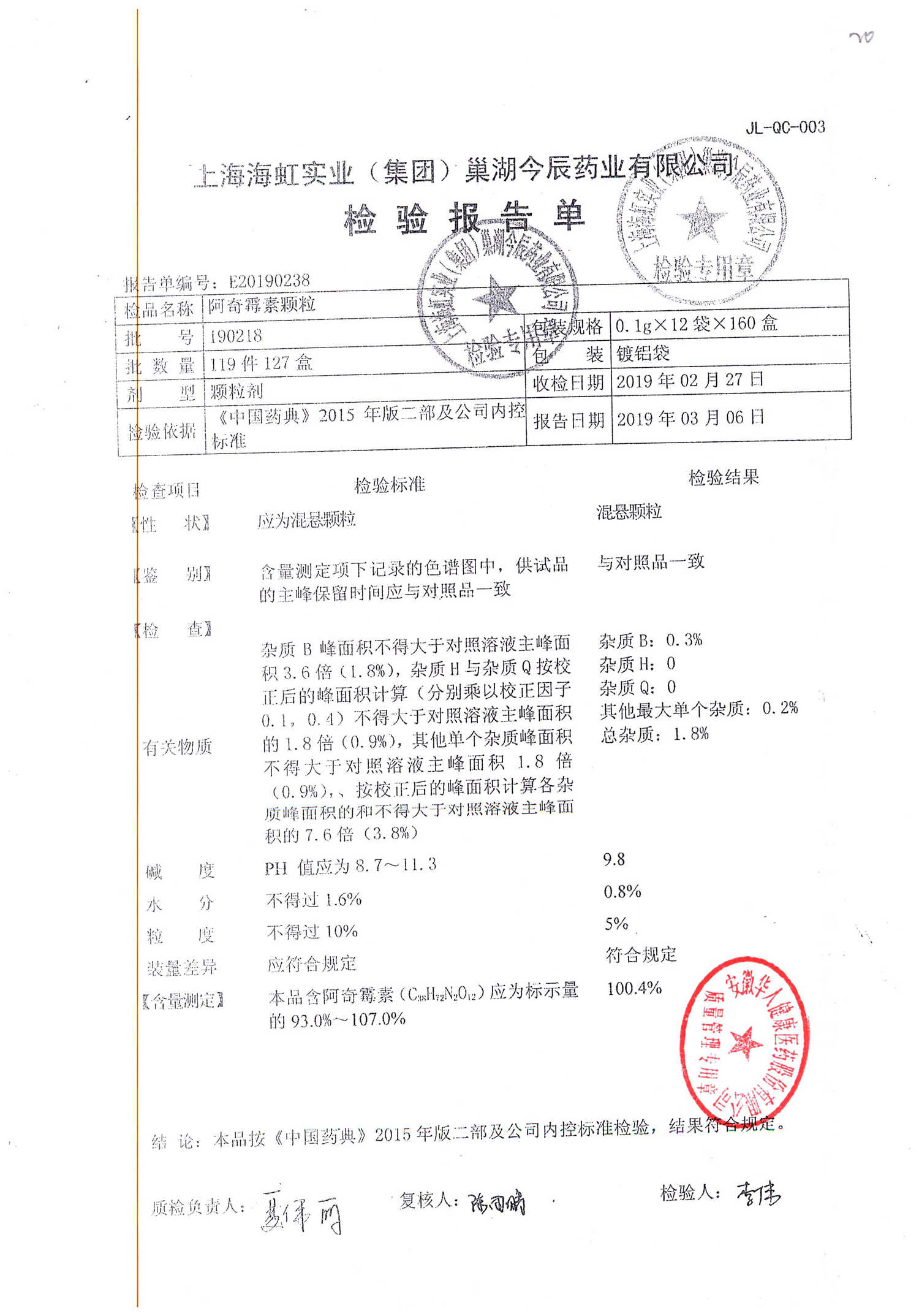 | 阿奇霉素顆粒 | 0.1g-12袋 | 190226 | 查看詳情 |
