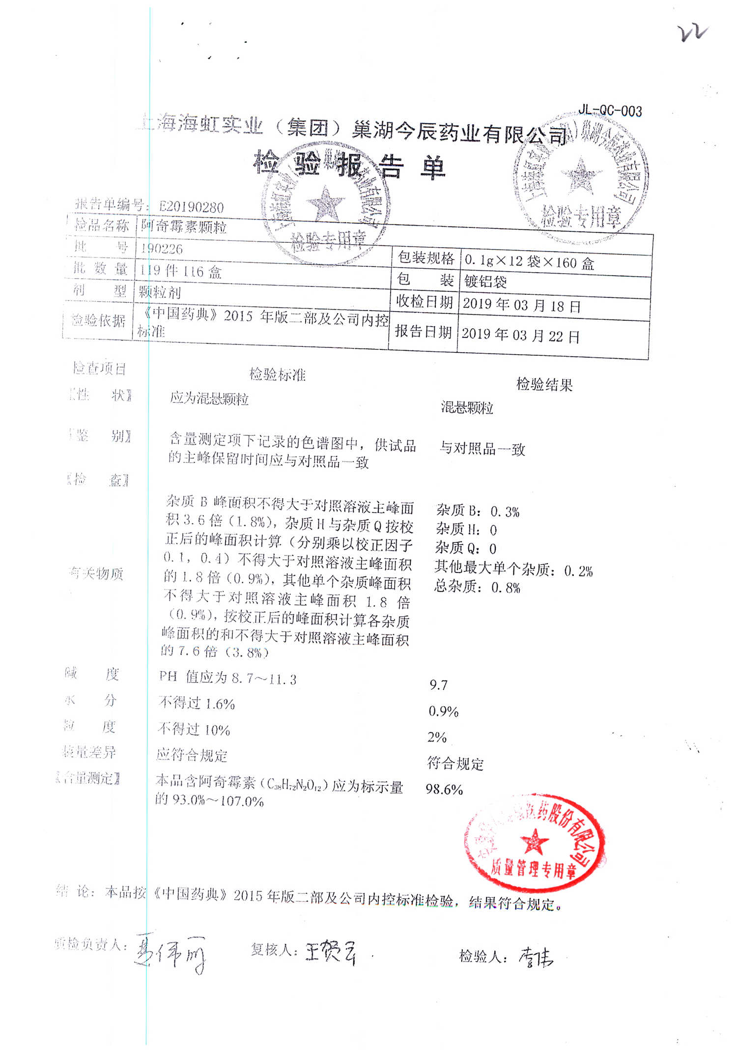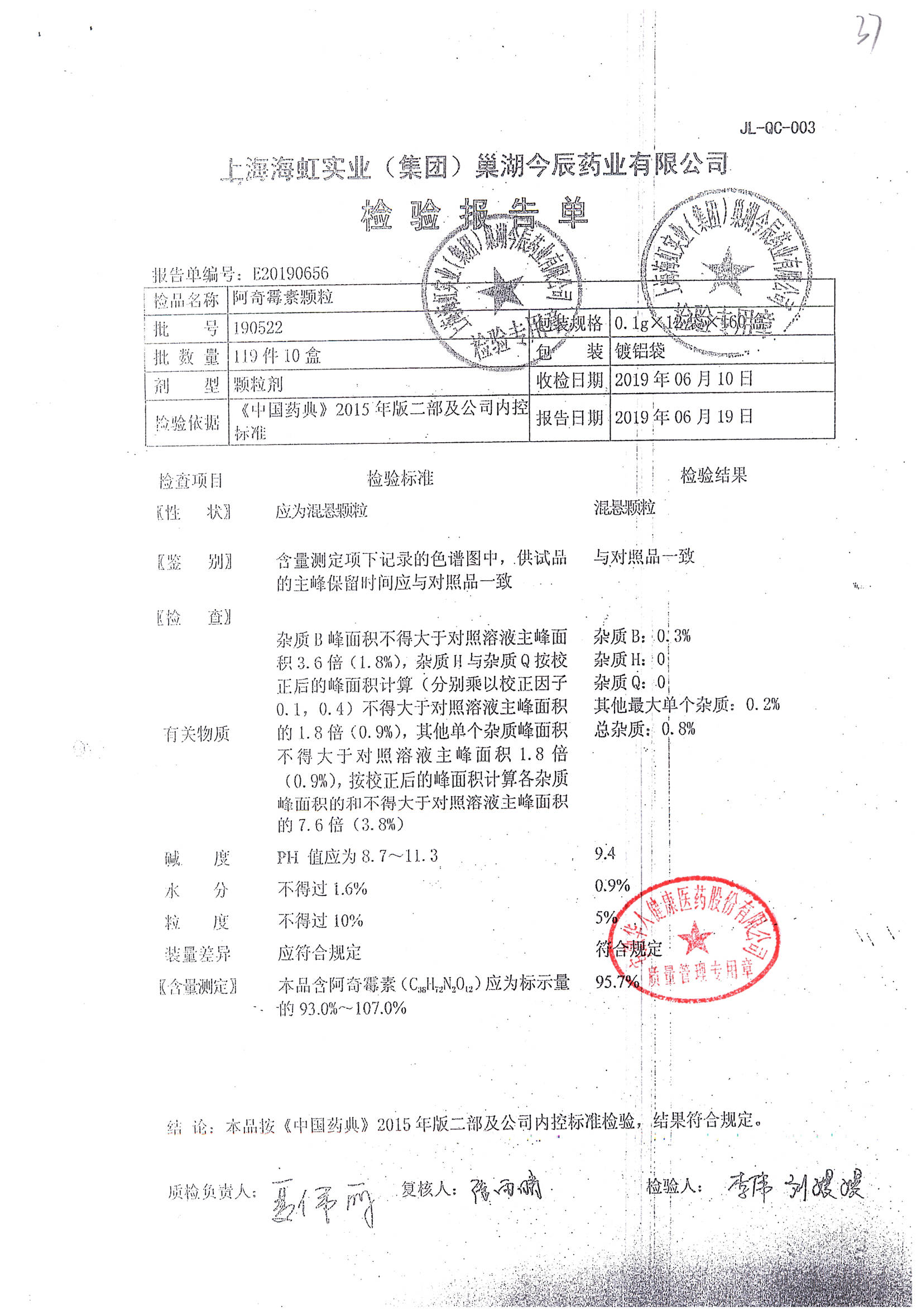 | 阿奇霉素顆粒 | 0.1g-12袋 | 190522 | 查看詳情 |