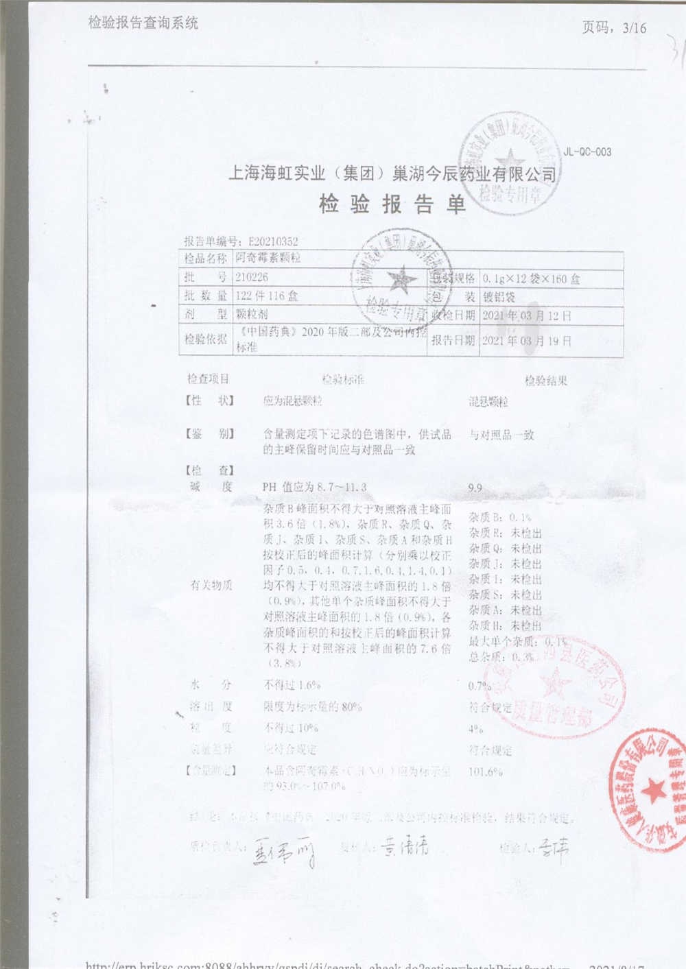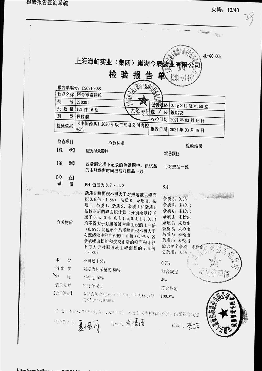| 阿奇霉素顆粒 | 0.1g-12袋 | 210226 | 查看詳情 |