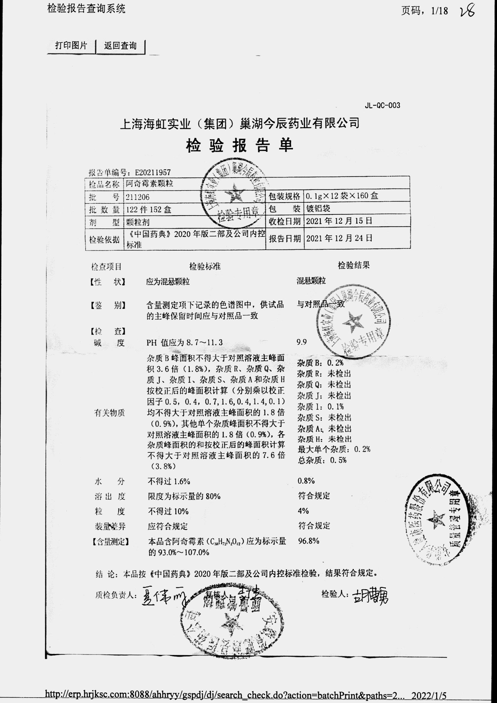 | 阿奇霉素顆粒 | 0.1g-12袋 | 211206 | 查看詳情 |