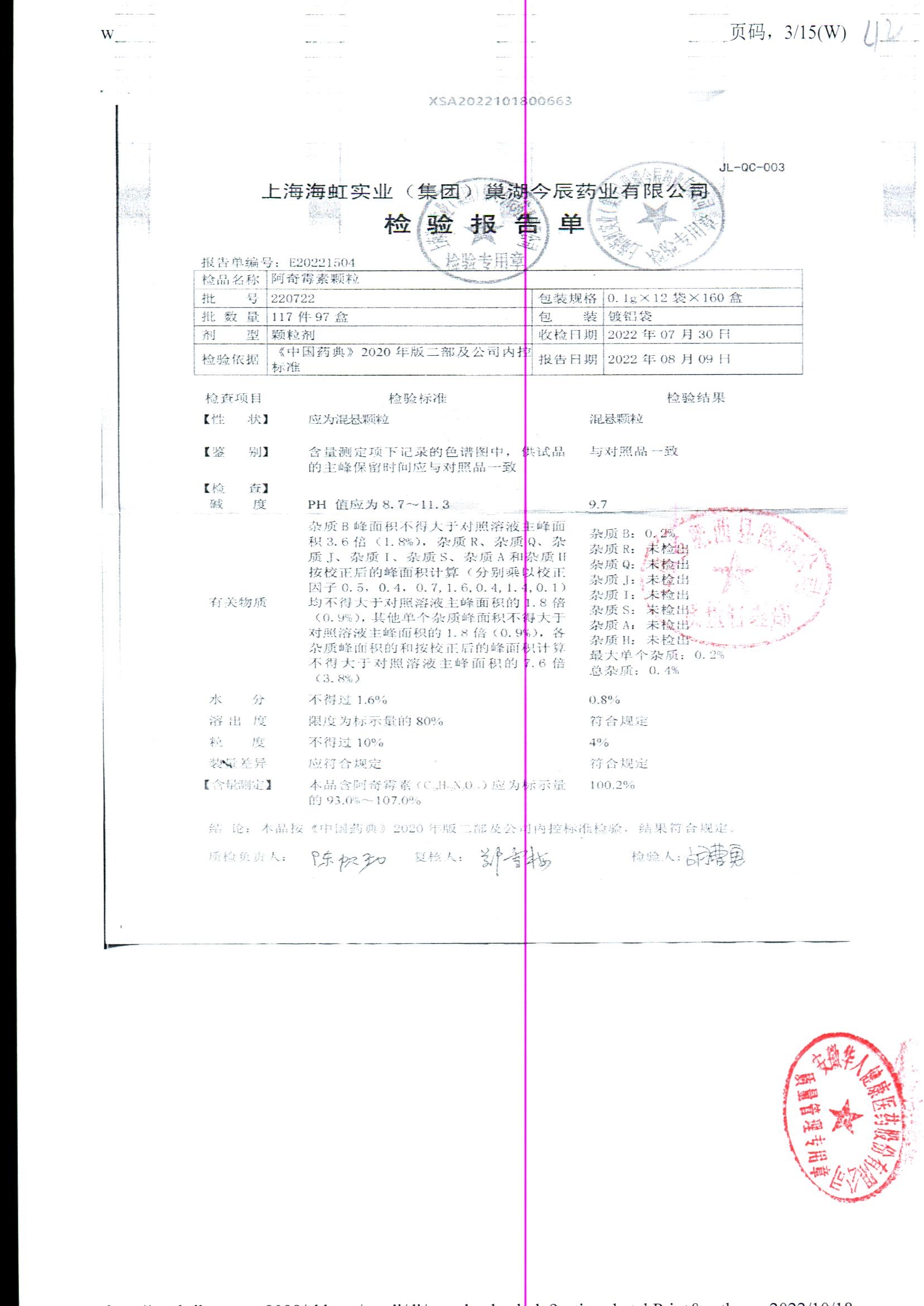 | 阿奇霉素顆粒 | 0.1g-12袋 | 220723 | 查看詳情 |