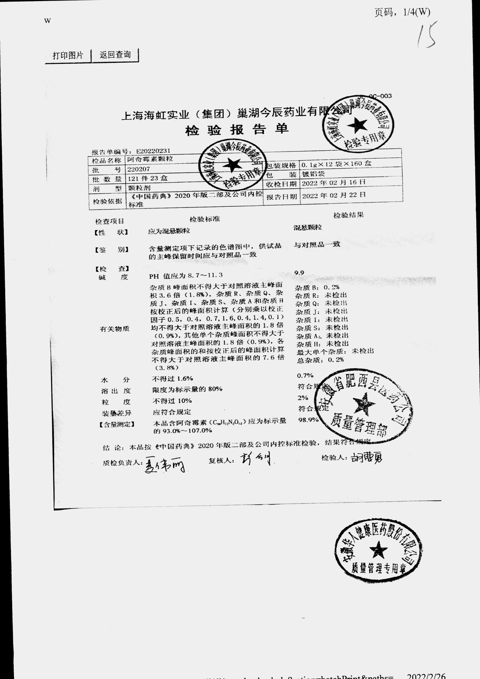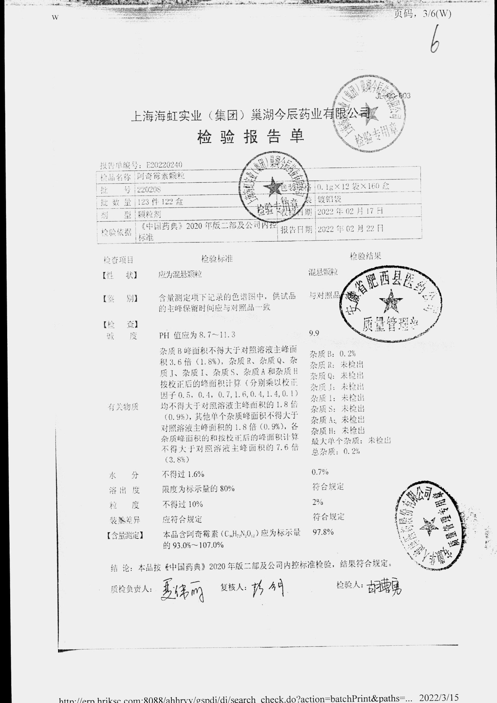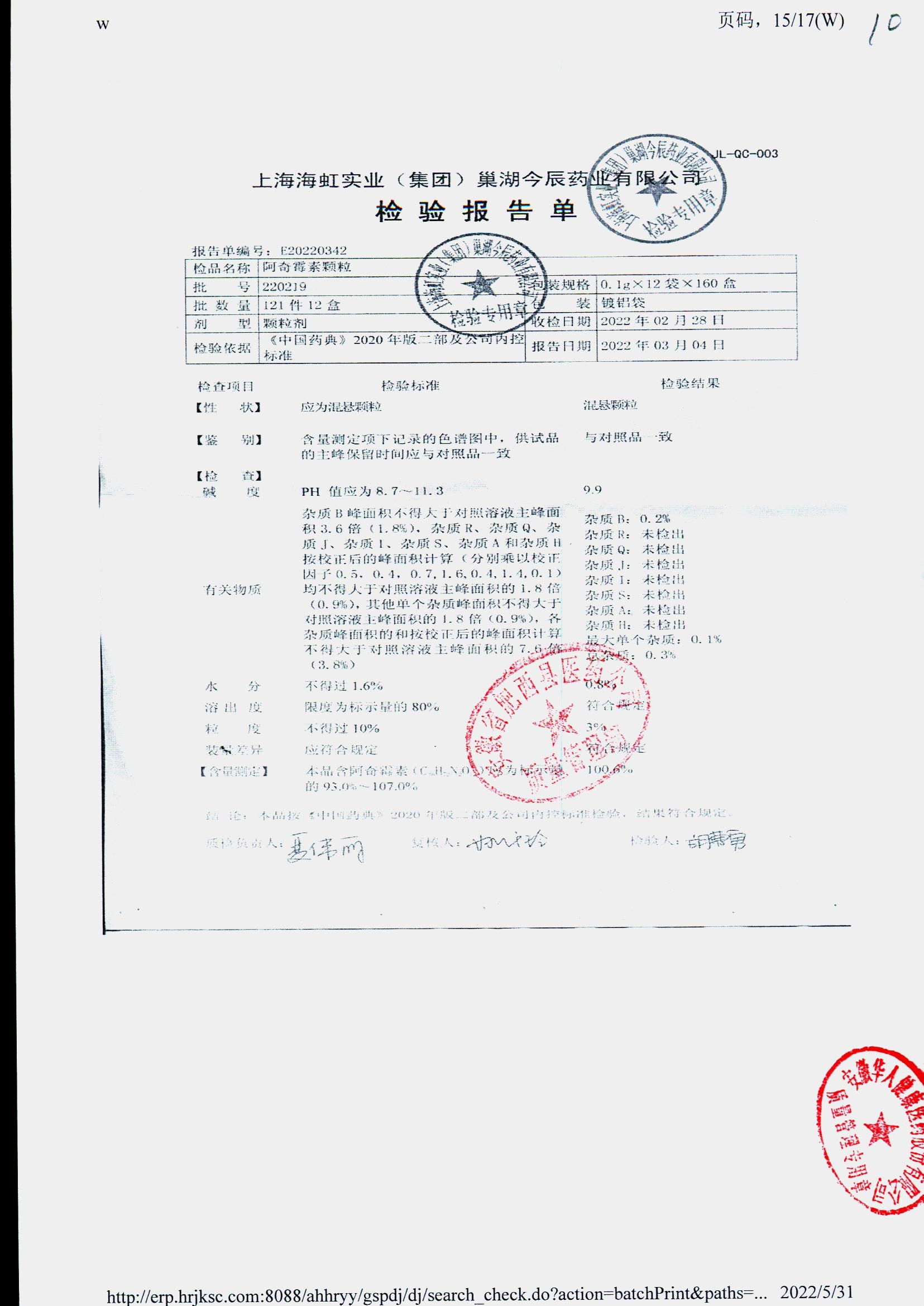 | 阿奇霉素顆粒 | 0.1g-12袋 | 220208 | 查看詳情 |