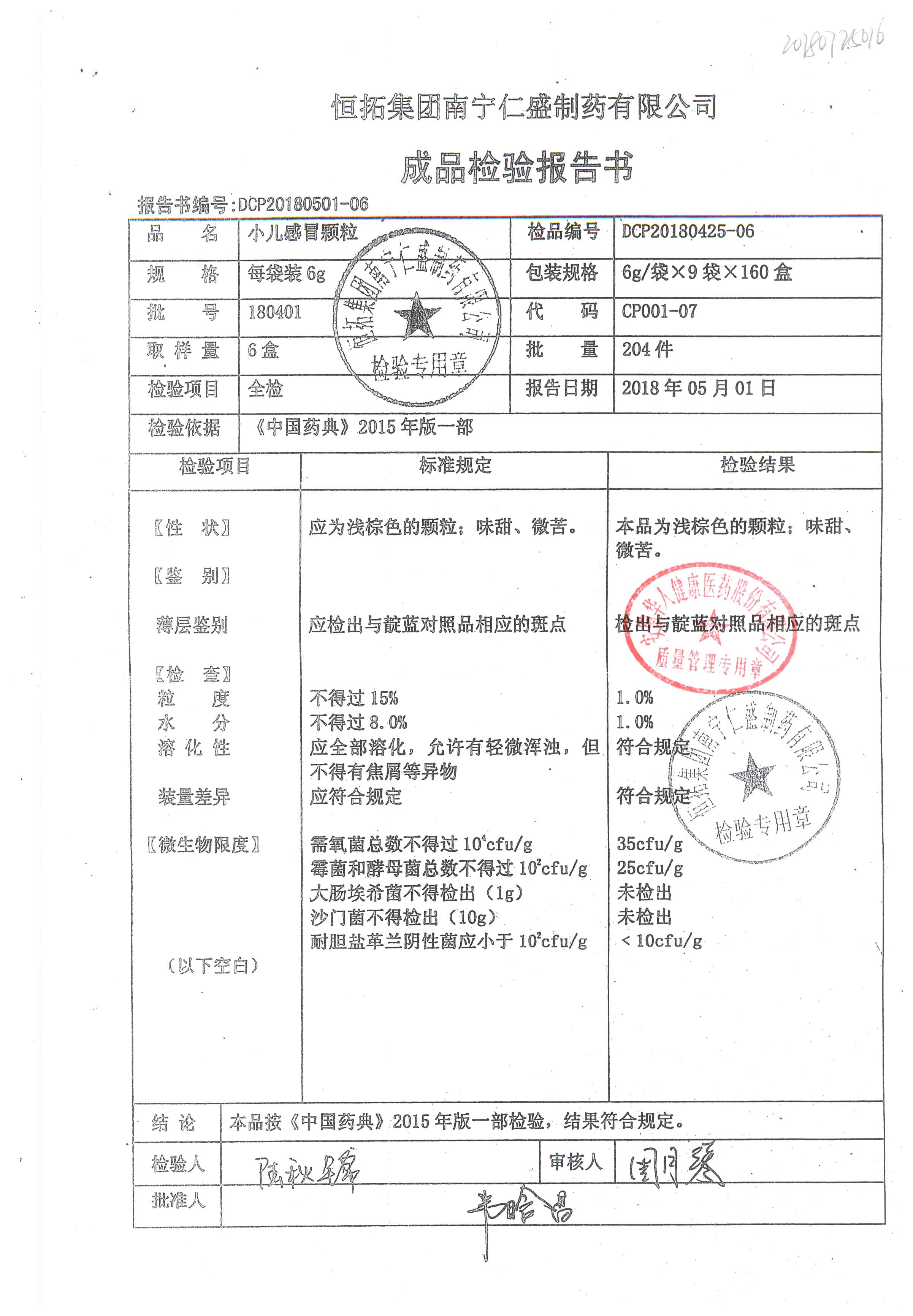 名稱 規(guī)格 批號 藥檢報告