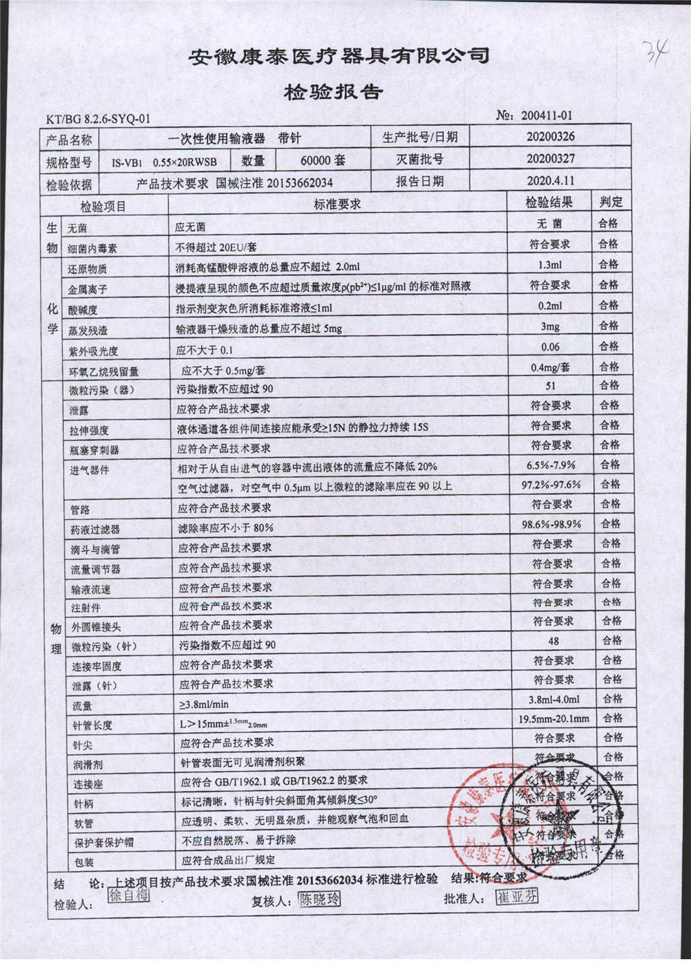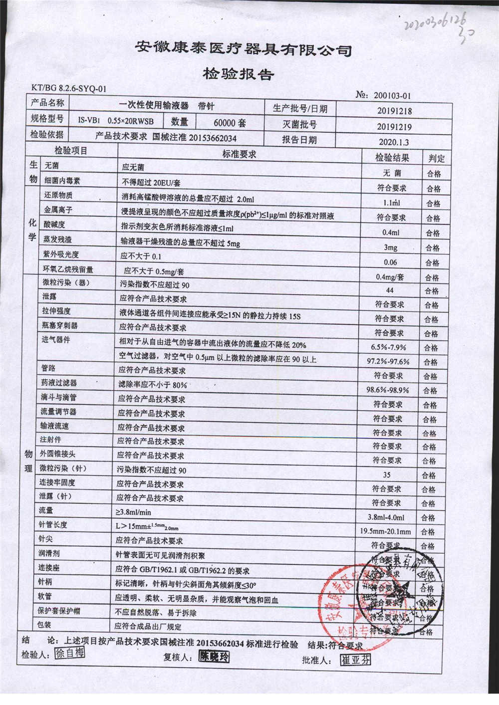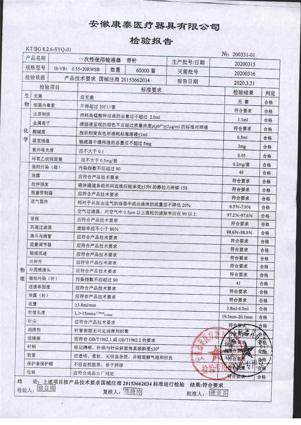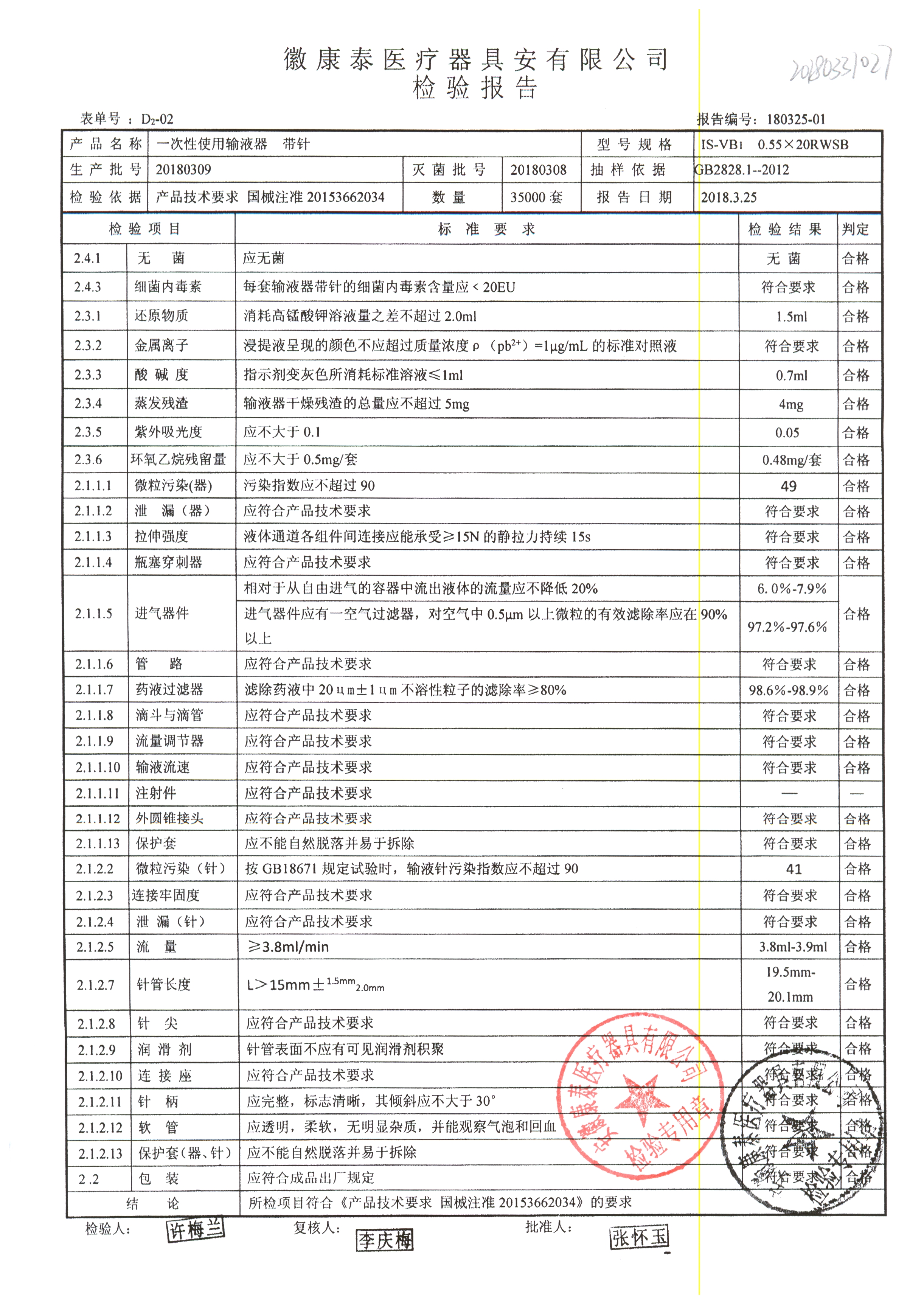 | 一次性使用輸液器 帶針 | 0.55*20RWSB | 20200315 | 查看詳情 |