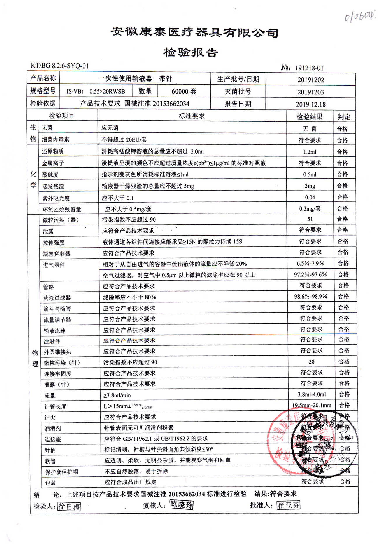 | 一次性使用輸液器 帶針 | 0.55*20RWSB | 20191202 | 查看詳情 |