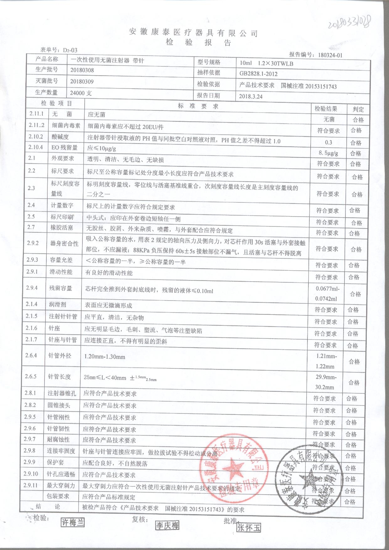 一次性使用輸液器 帶針 10ml 1.2*30TWLB 20180308 查看詳情