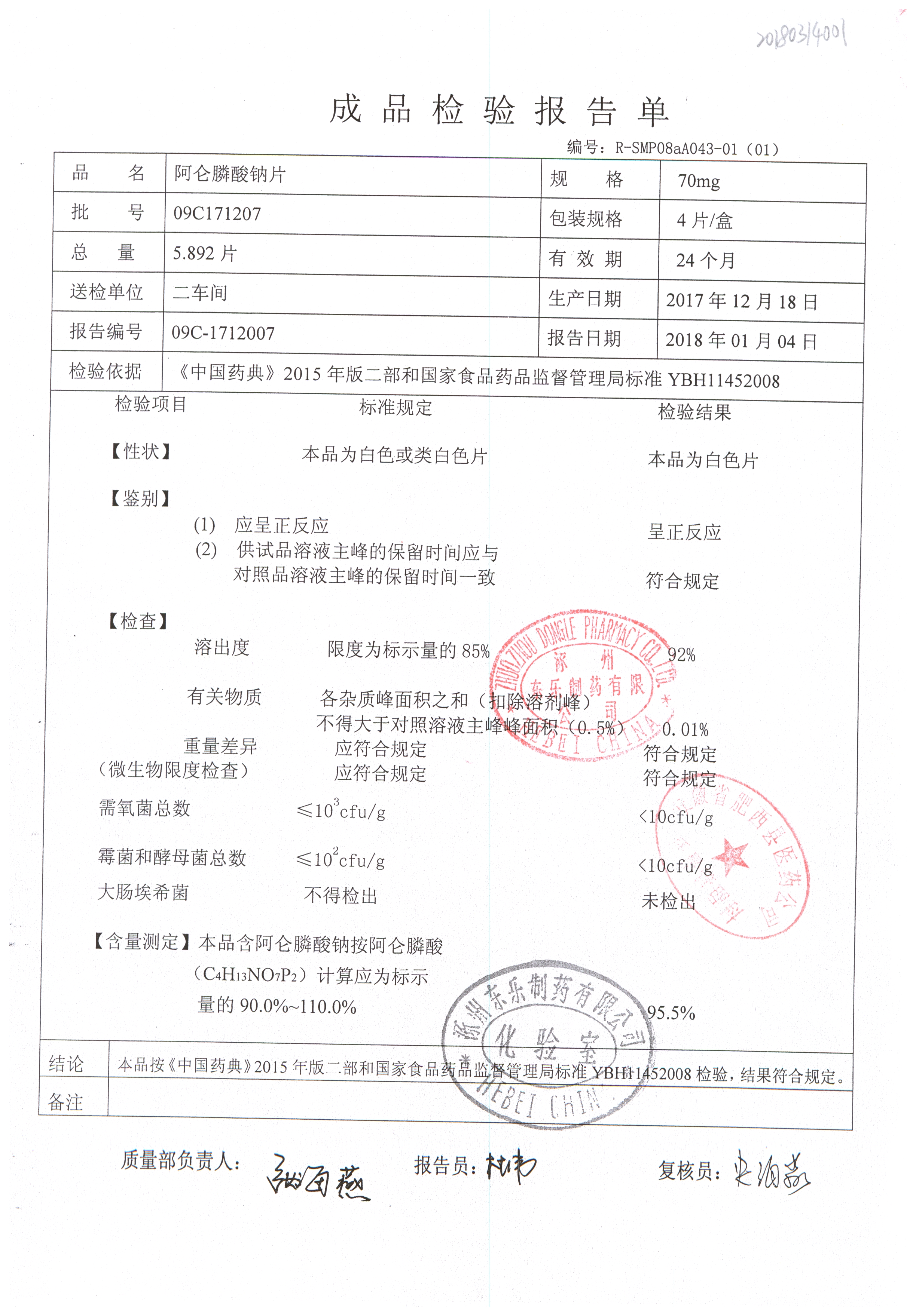 阿侖膦酸鈉片 70mg*4s 09C171207 查看詳情