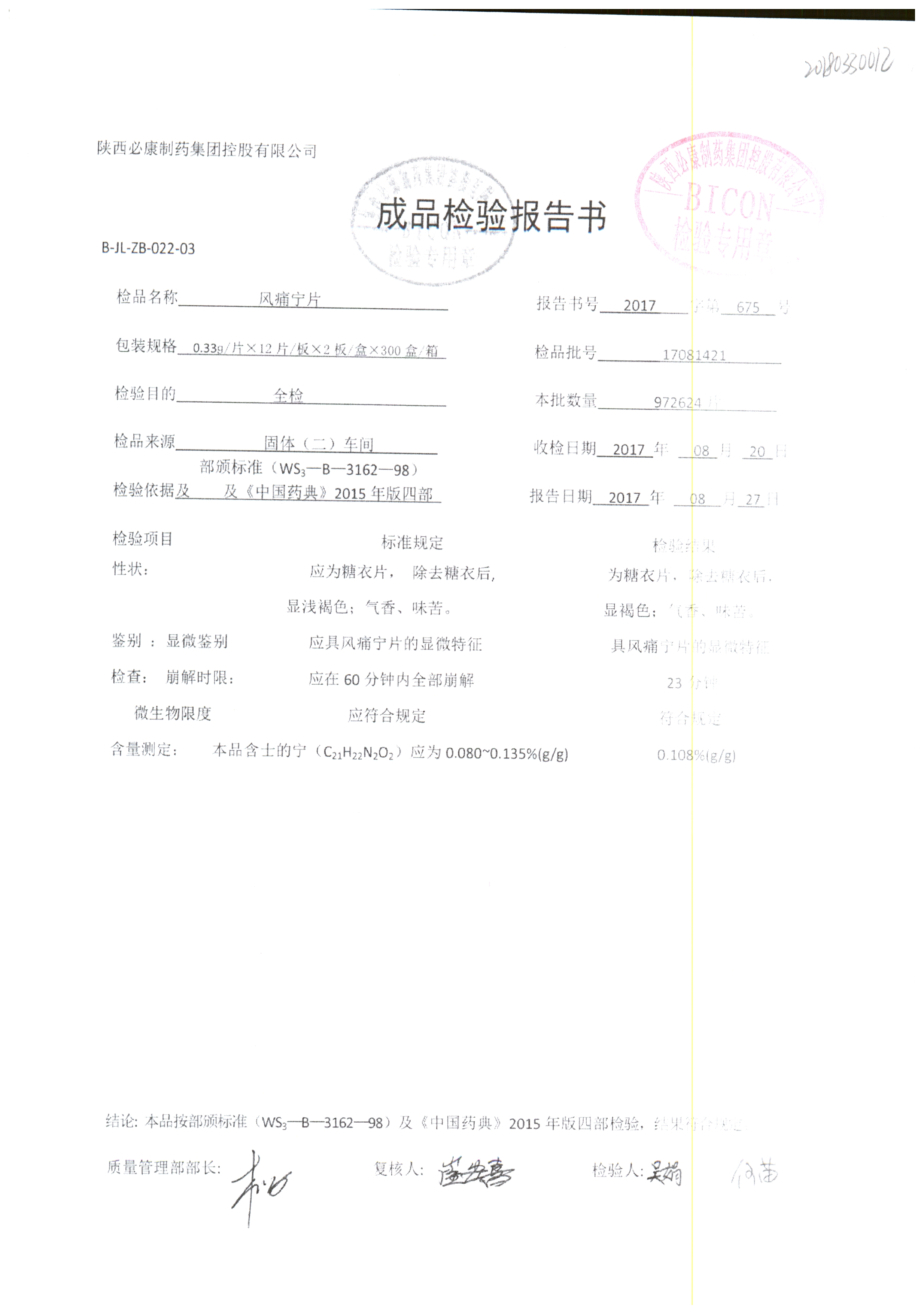 風痛寧片 0.33g*12s 17081421 查看詳情