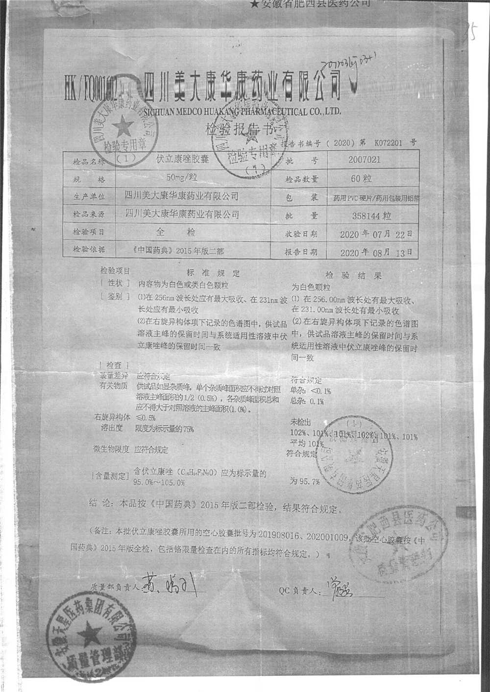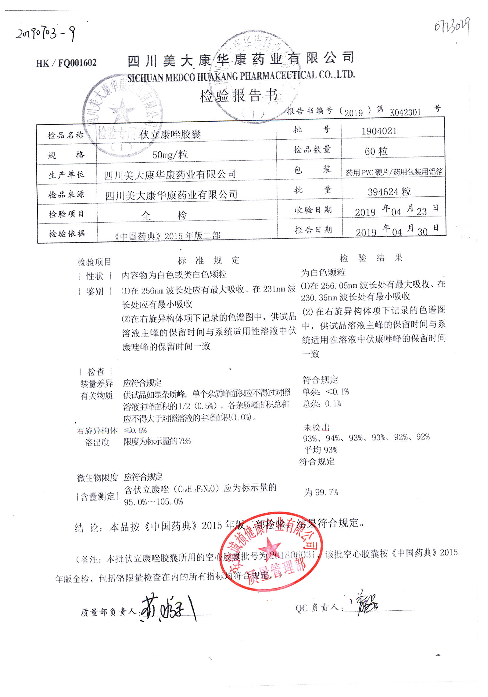 | 伏立康唑膠囊 | 50mg | 1907021 | 查看詳情 |
