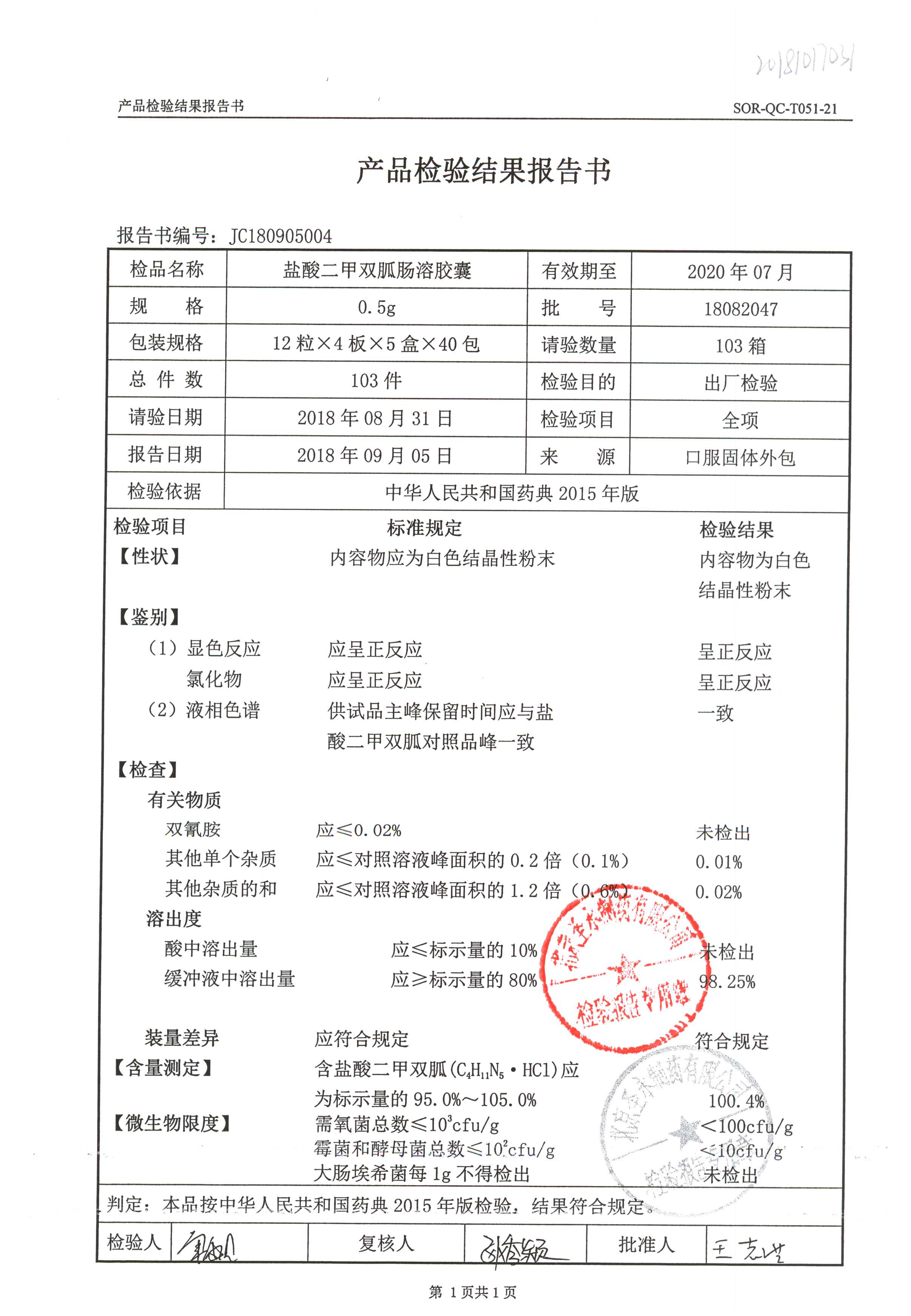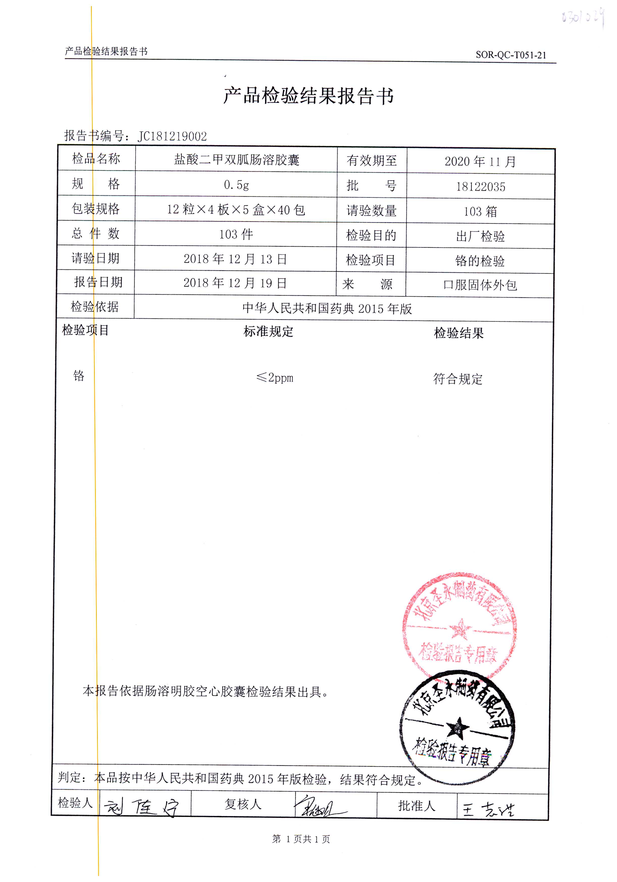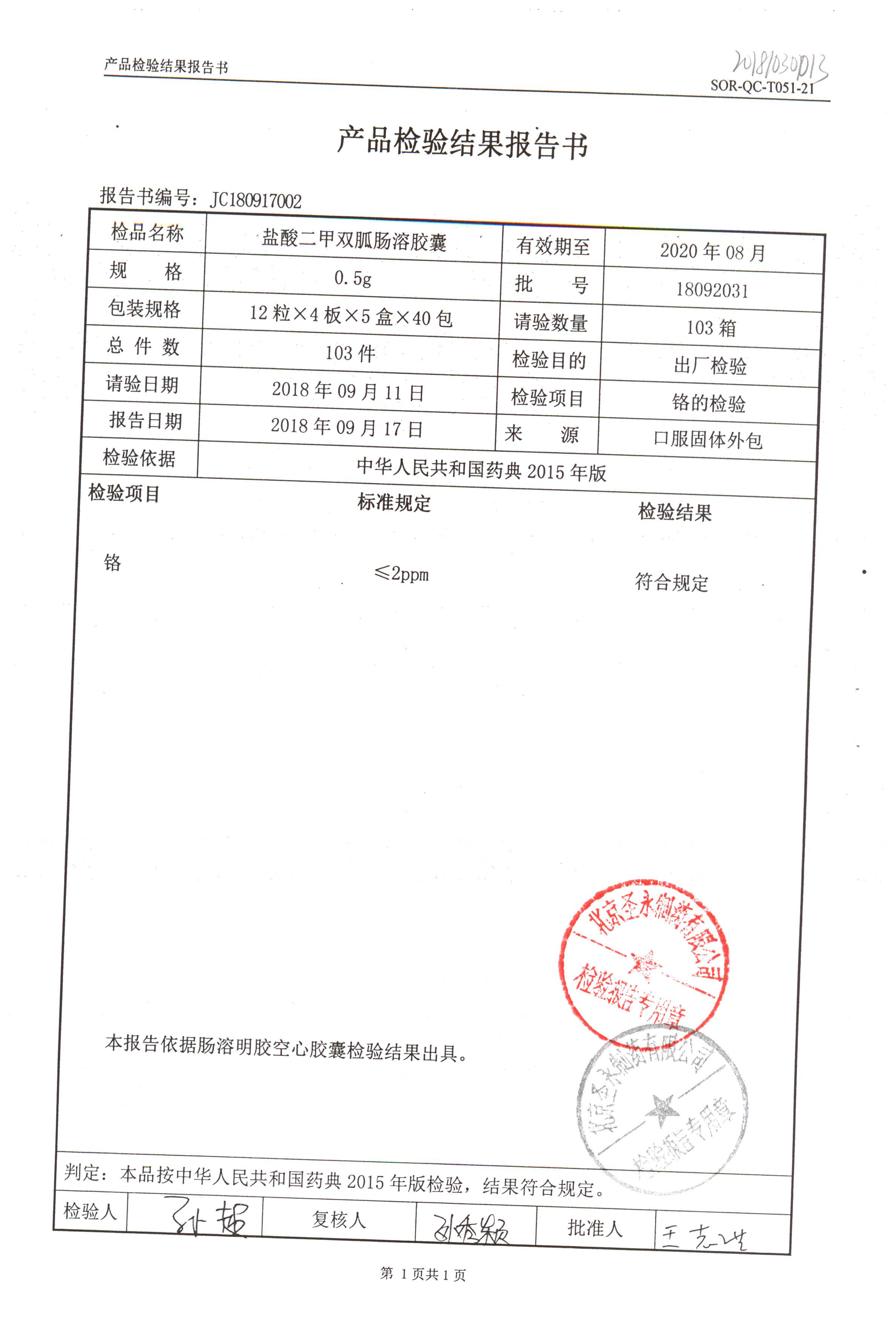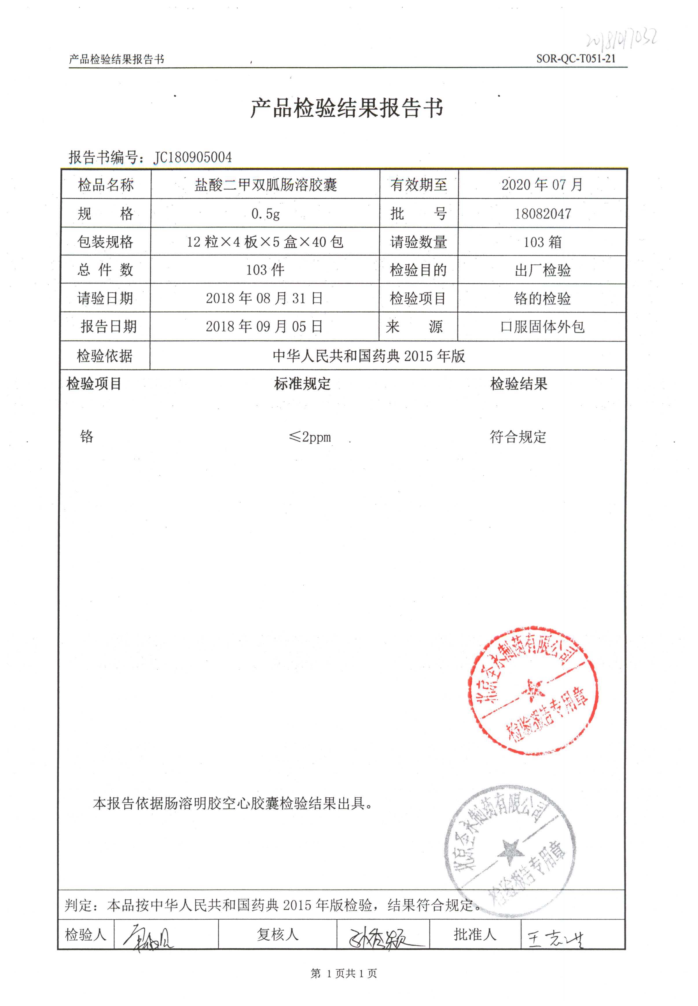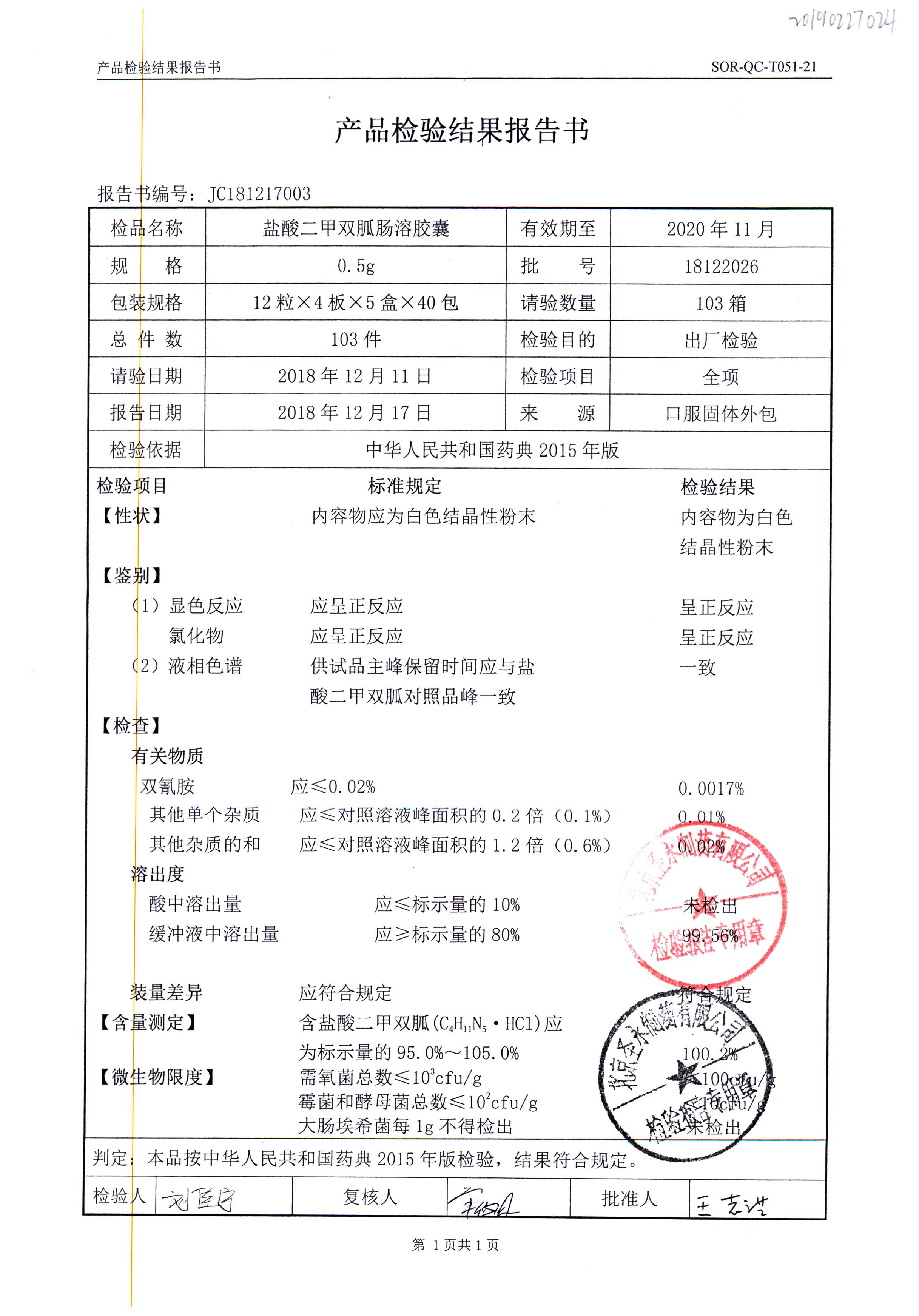 | 鹽酸二甲雙胍腸溶膠囊 | 0.5g*48s | 18092031(1/2) | 查看詳情 |