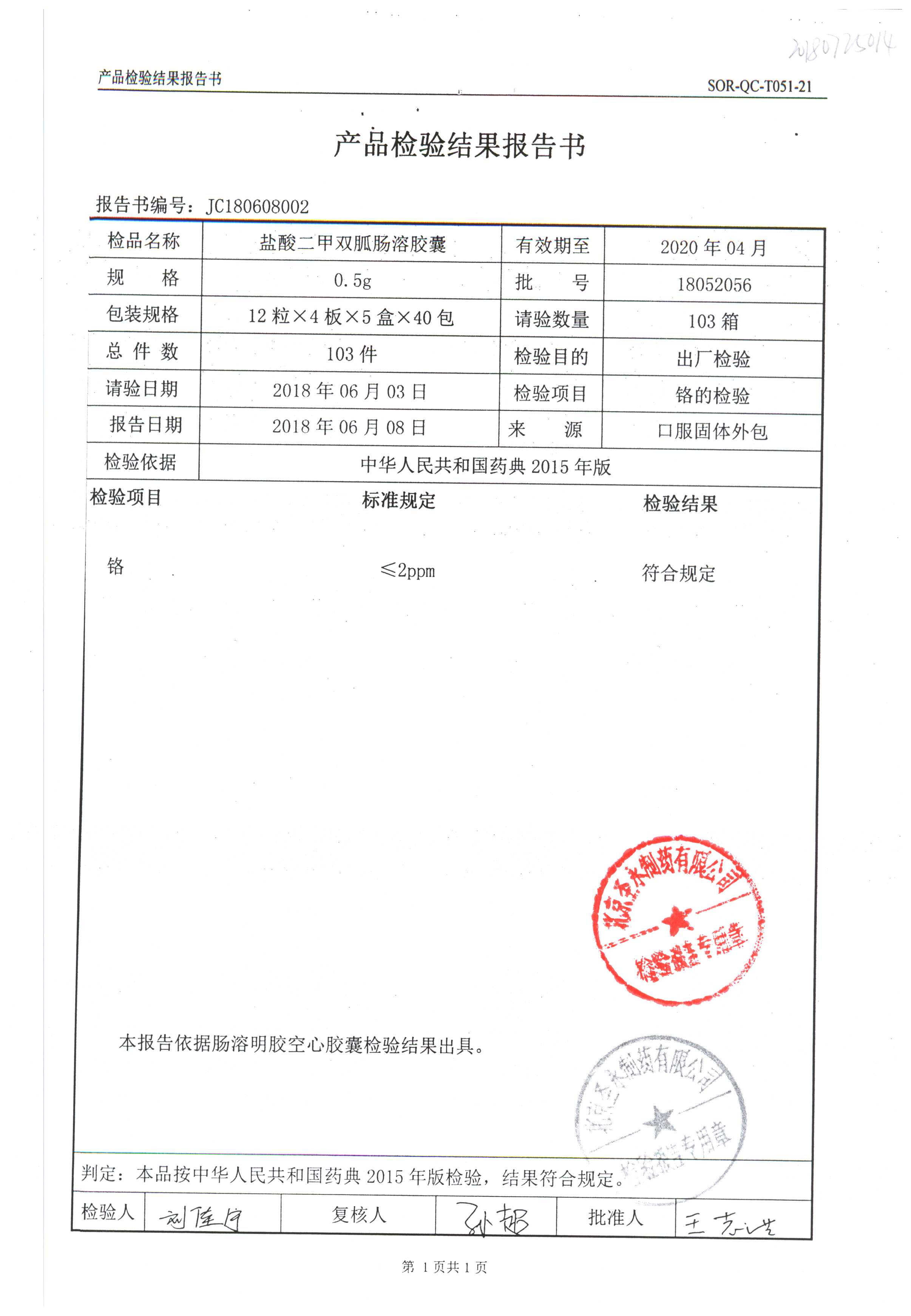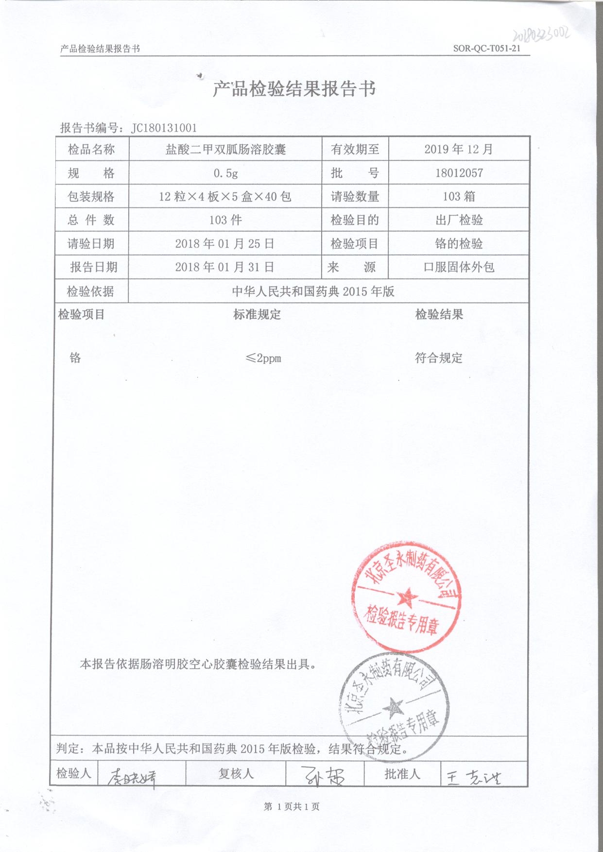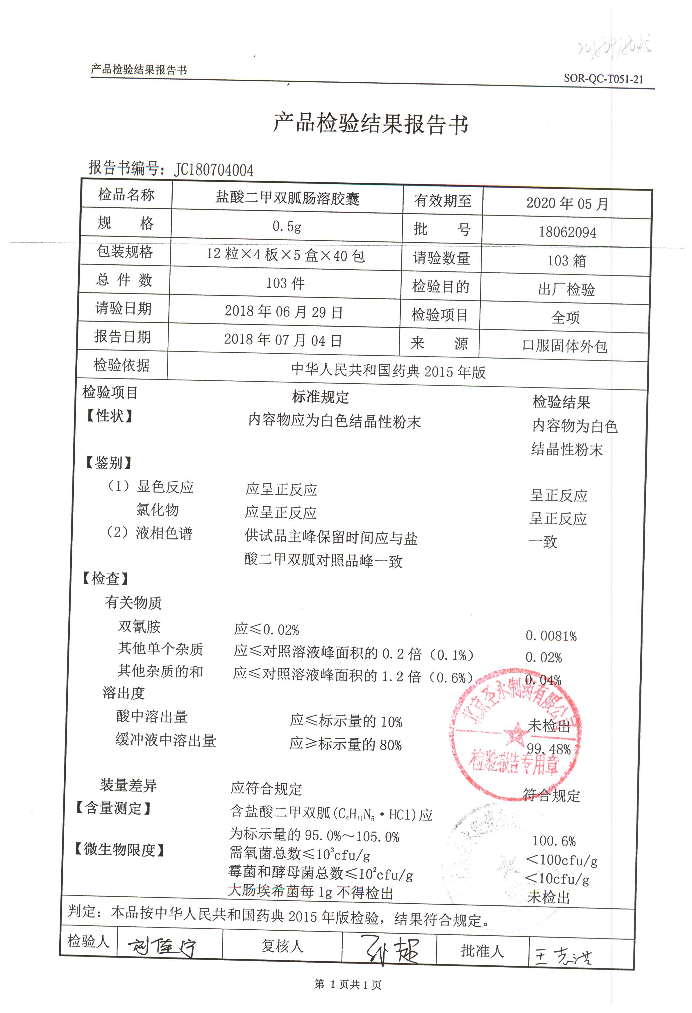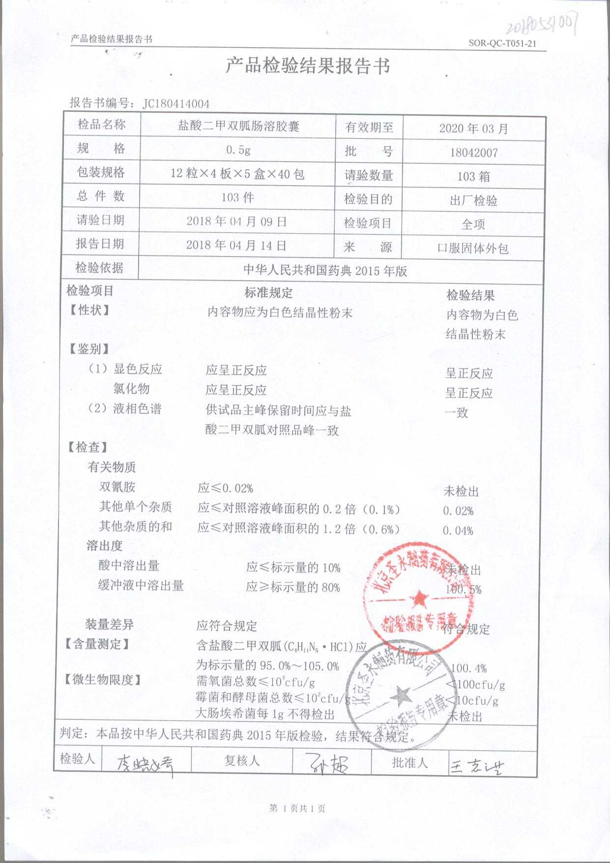 | 鹽酸二甲雙胍腸溶膠囊 | 0.5g*48s | 18042007(1/2) | 查看詳情 |