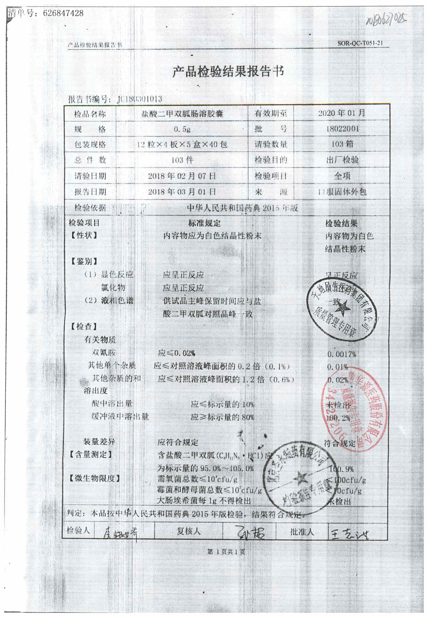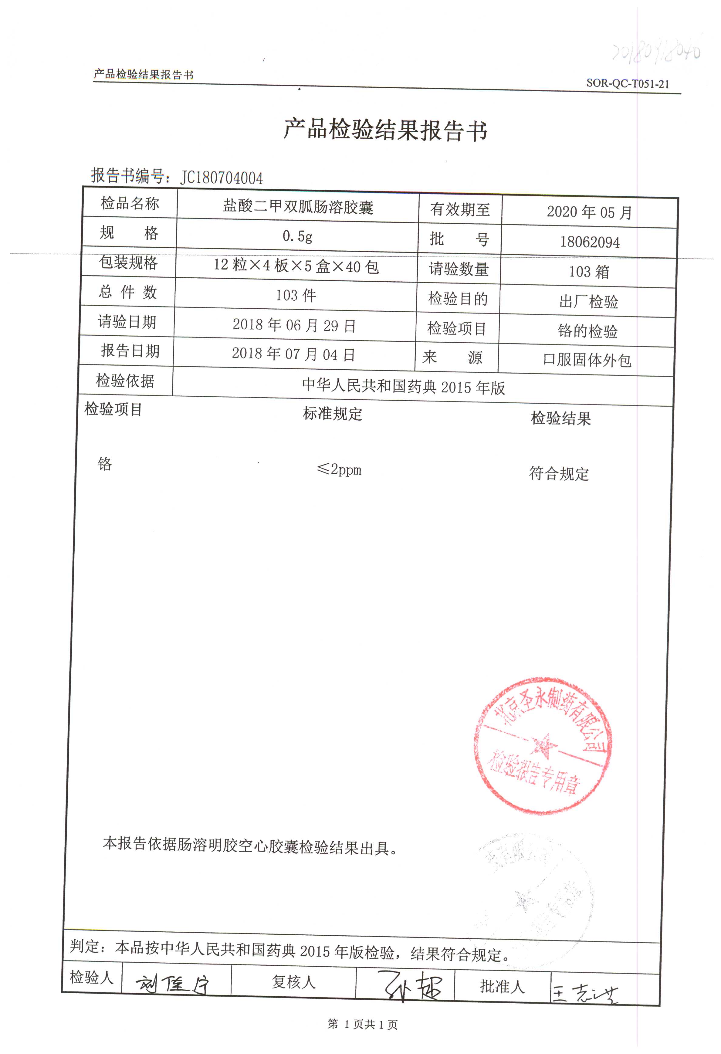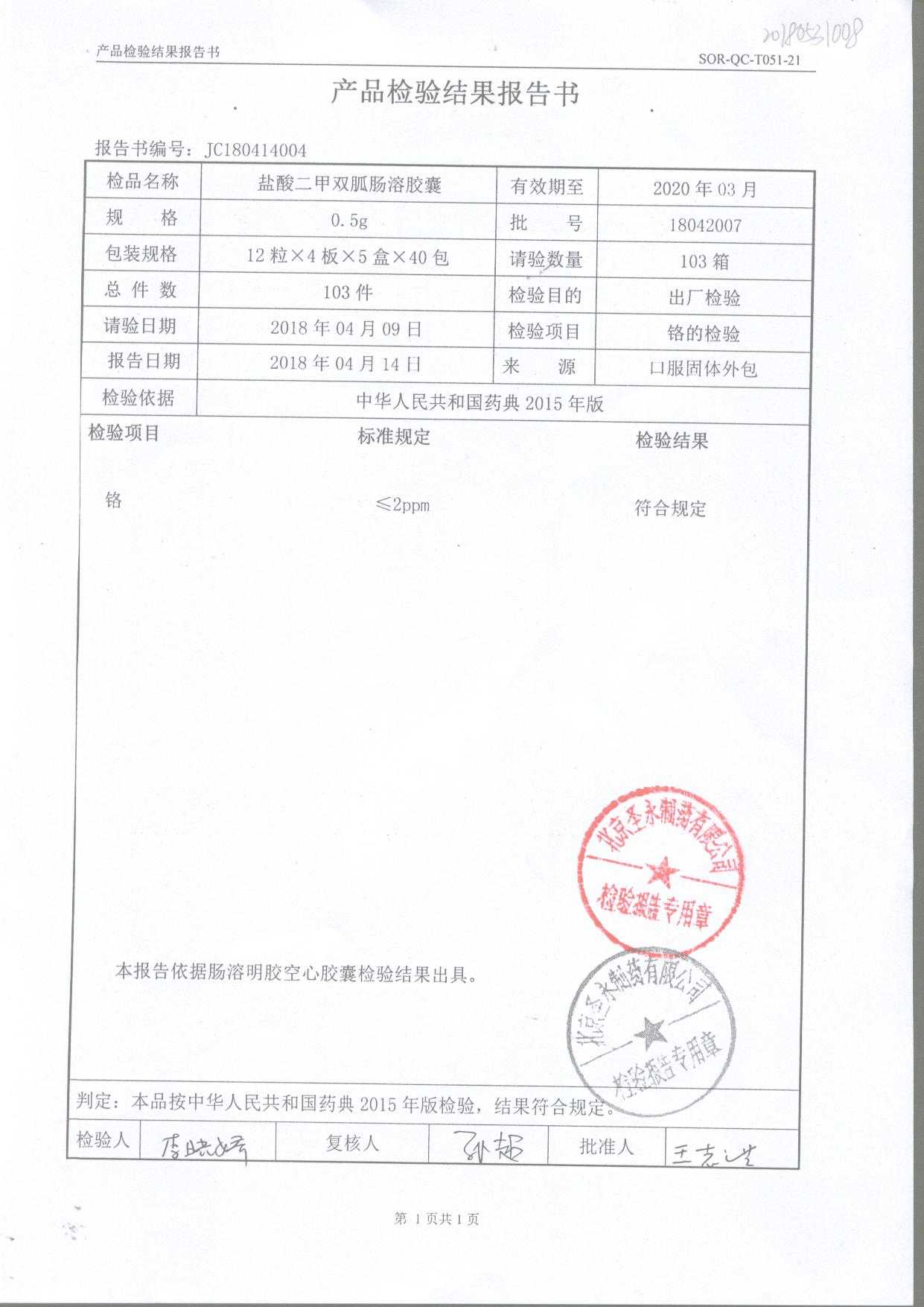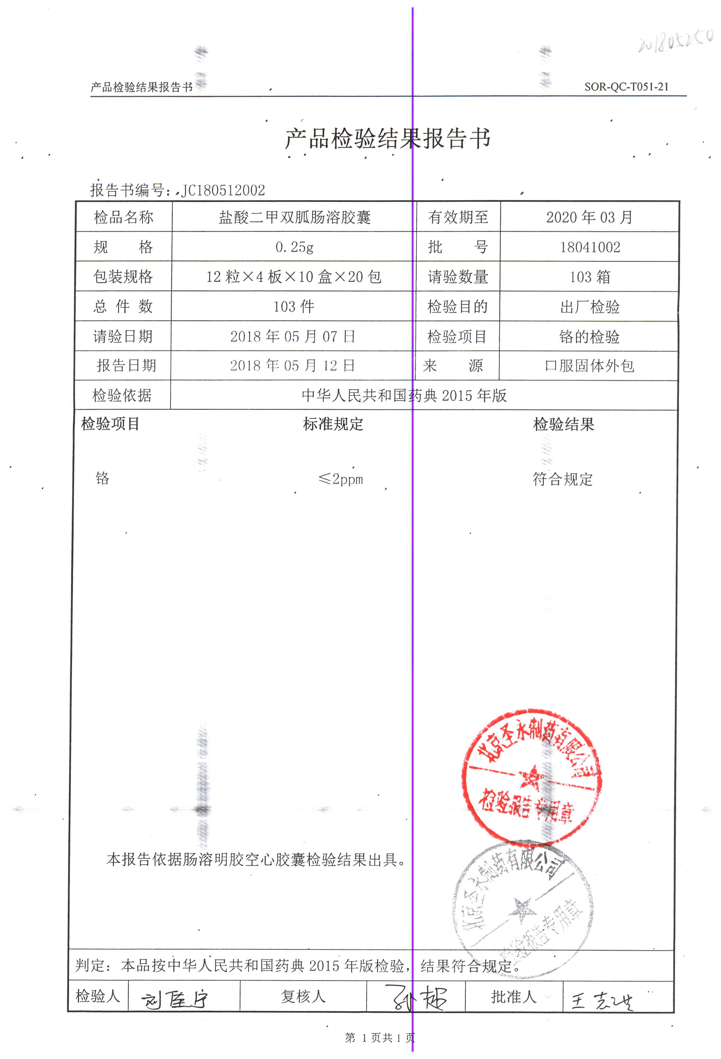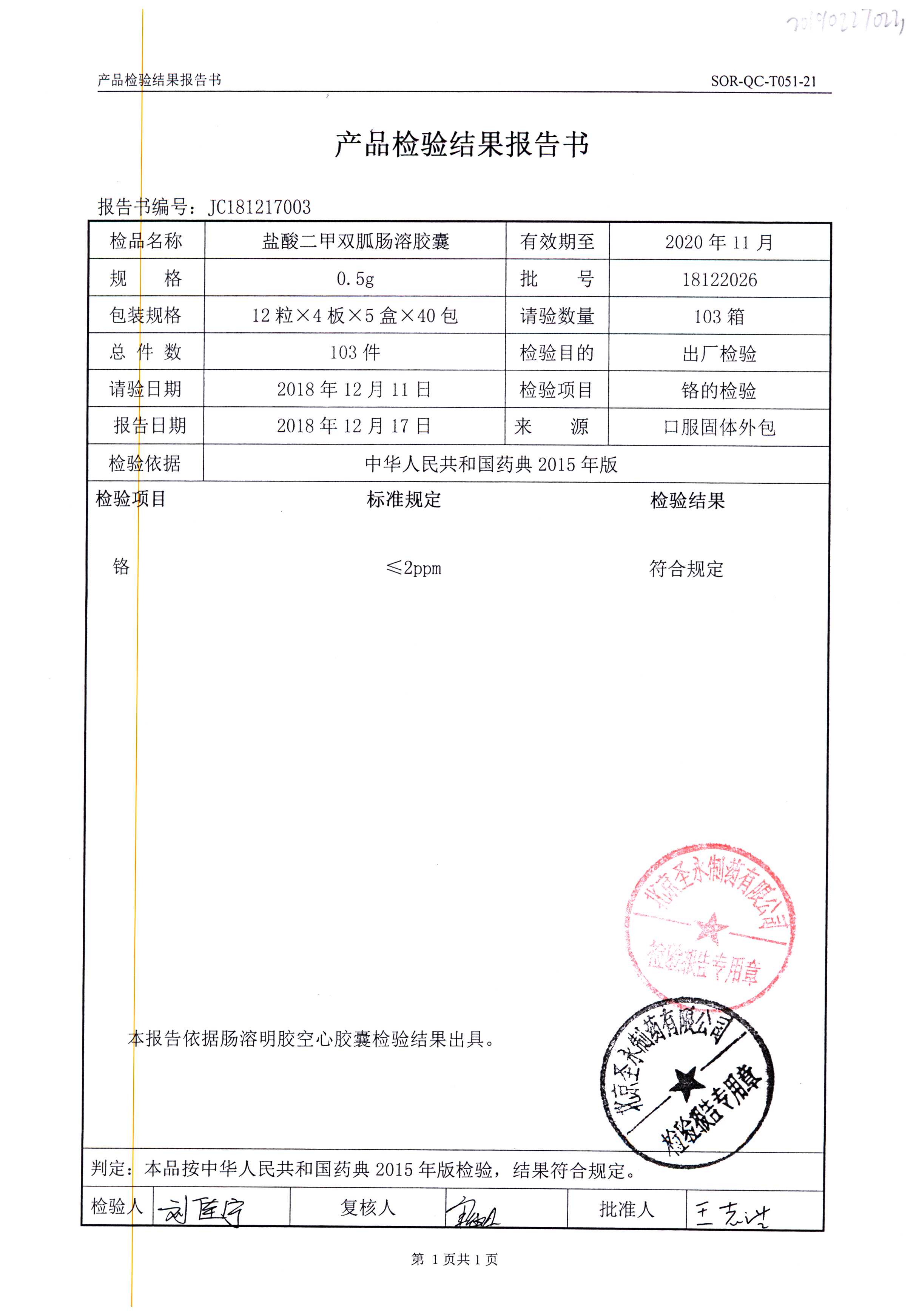 | 鹽酸二甲雙胍腸溶膠囊 | 0.5g*48s | 18042007(1/2) | 查看詳情 |