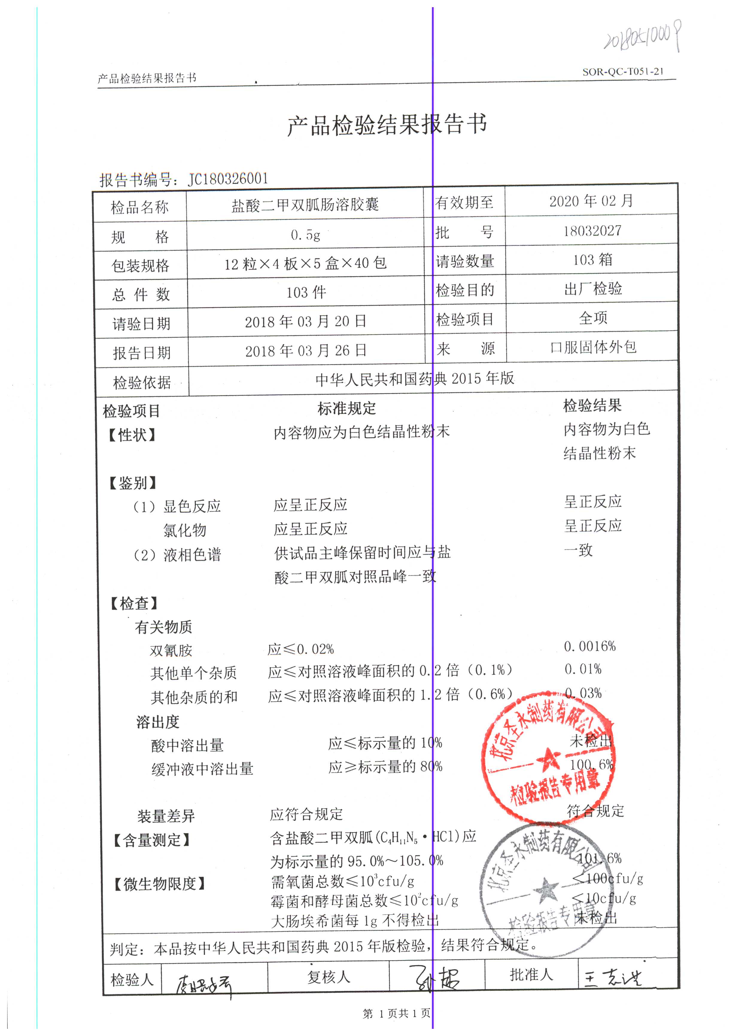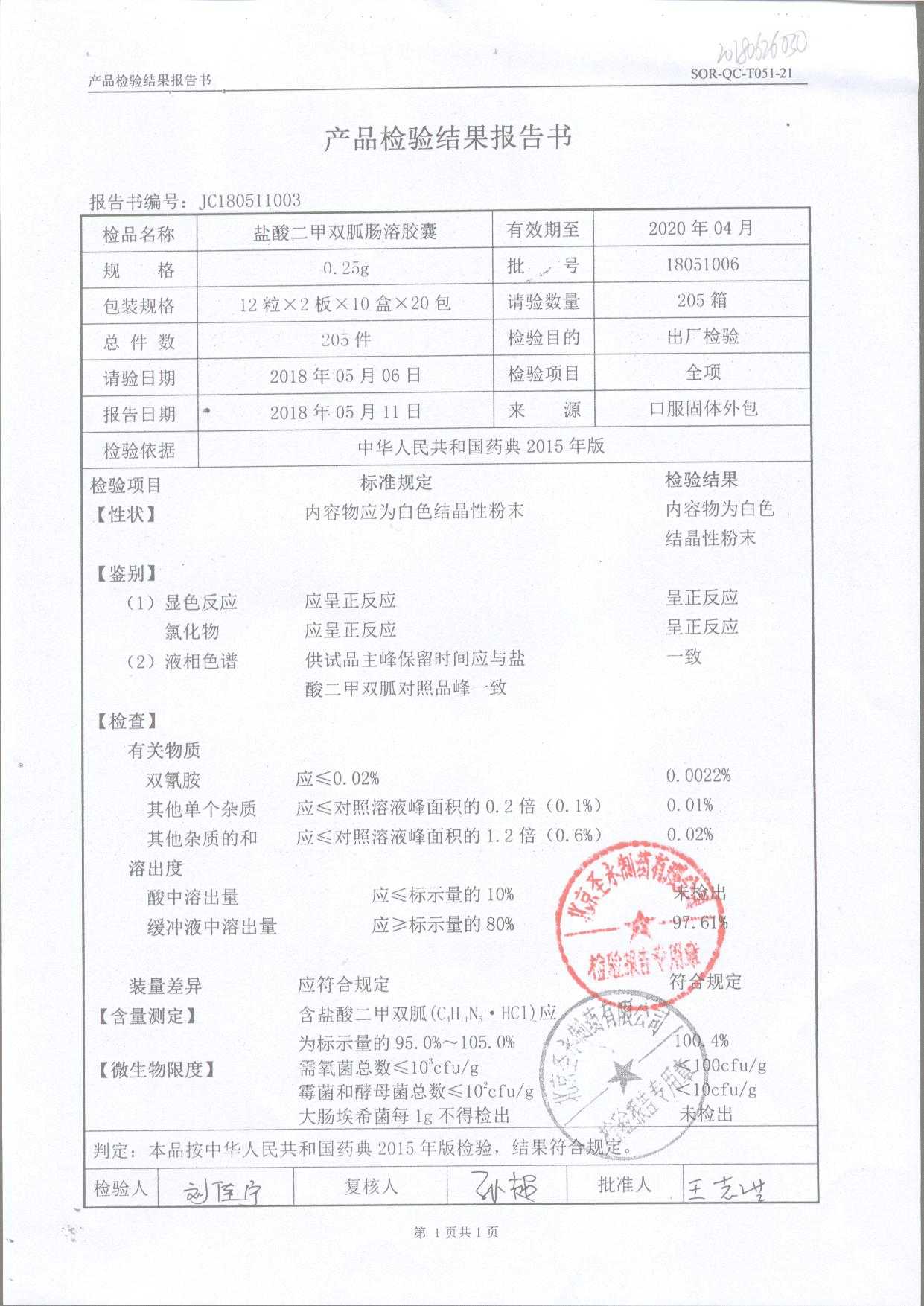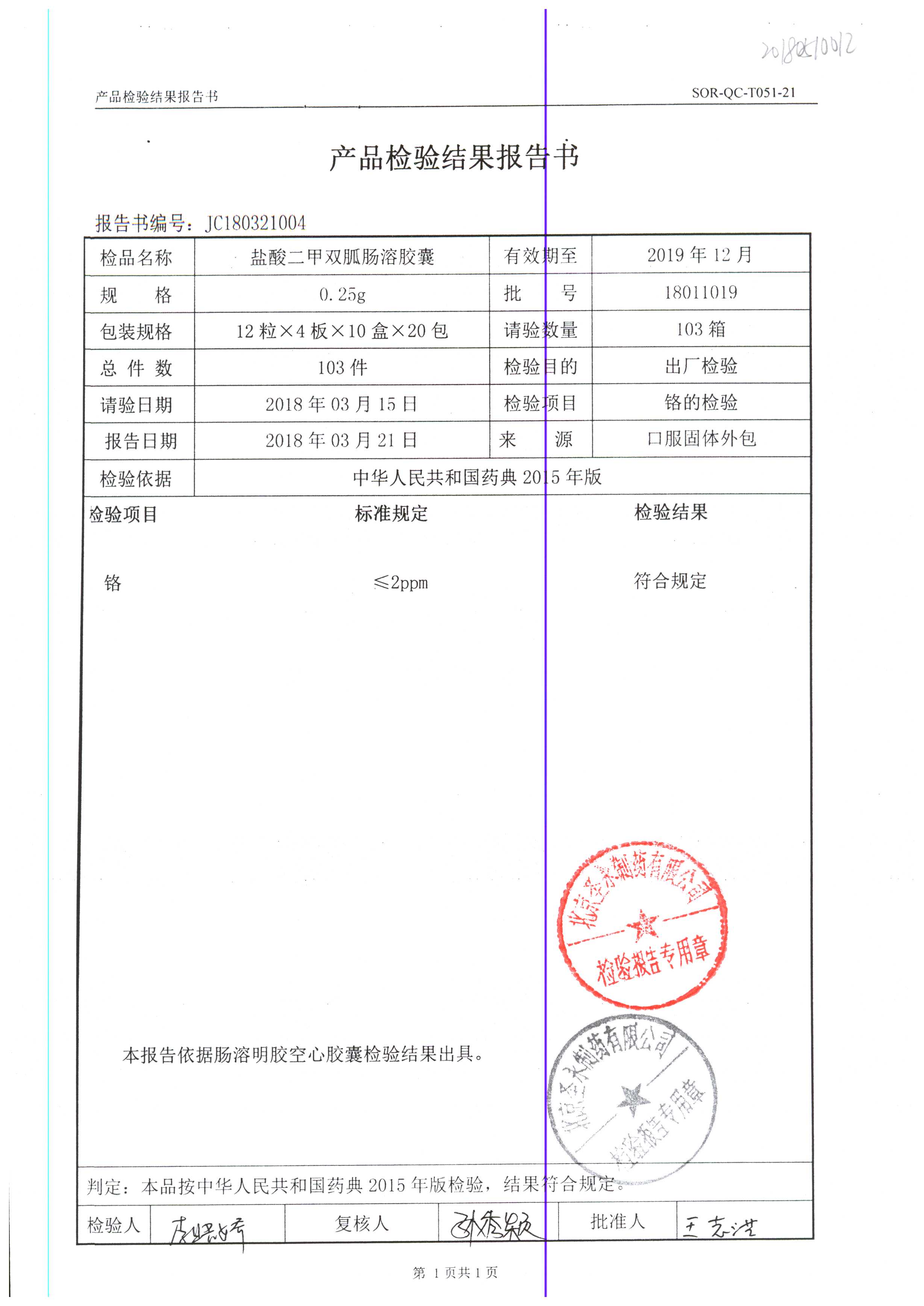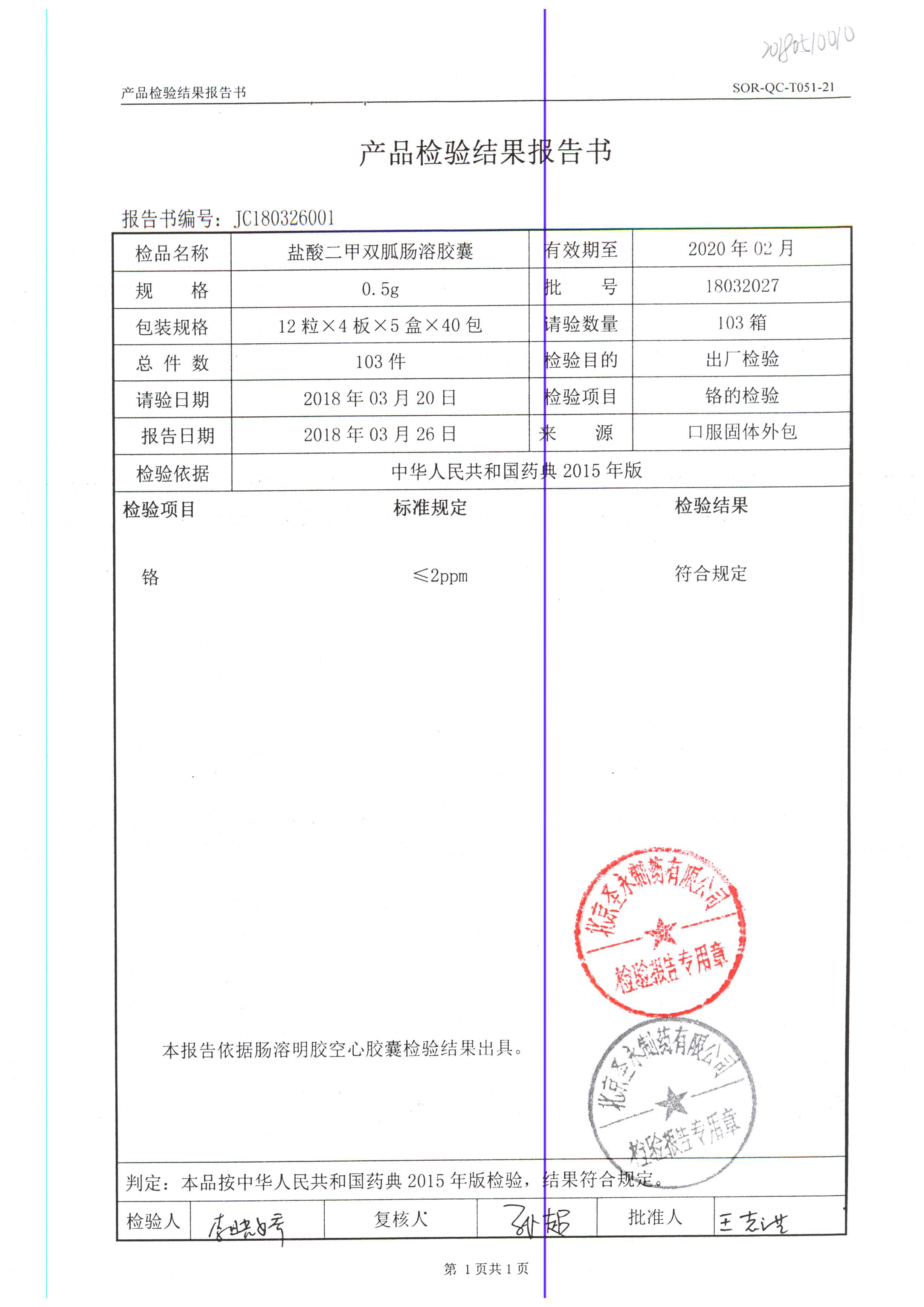| 鹽酸二甲雙胍腸溶膠囊 | 0.5g*48s | 18011019(2/2) | 查看詳情 |