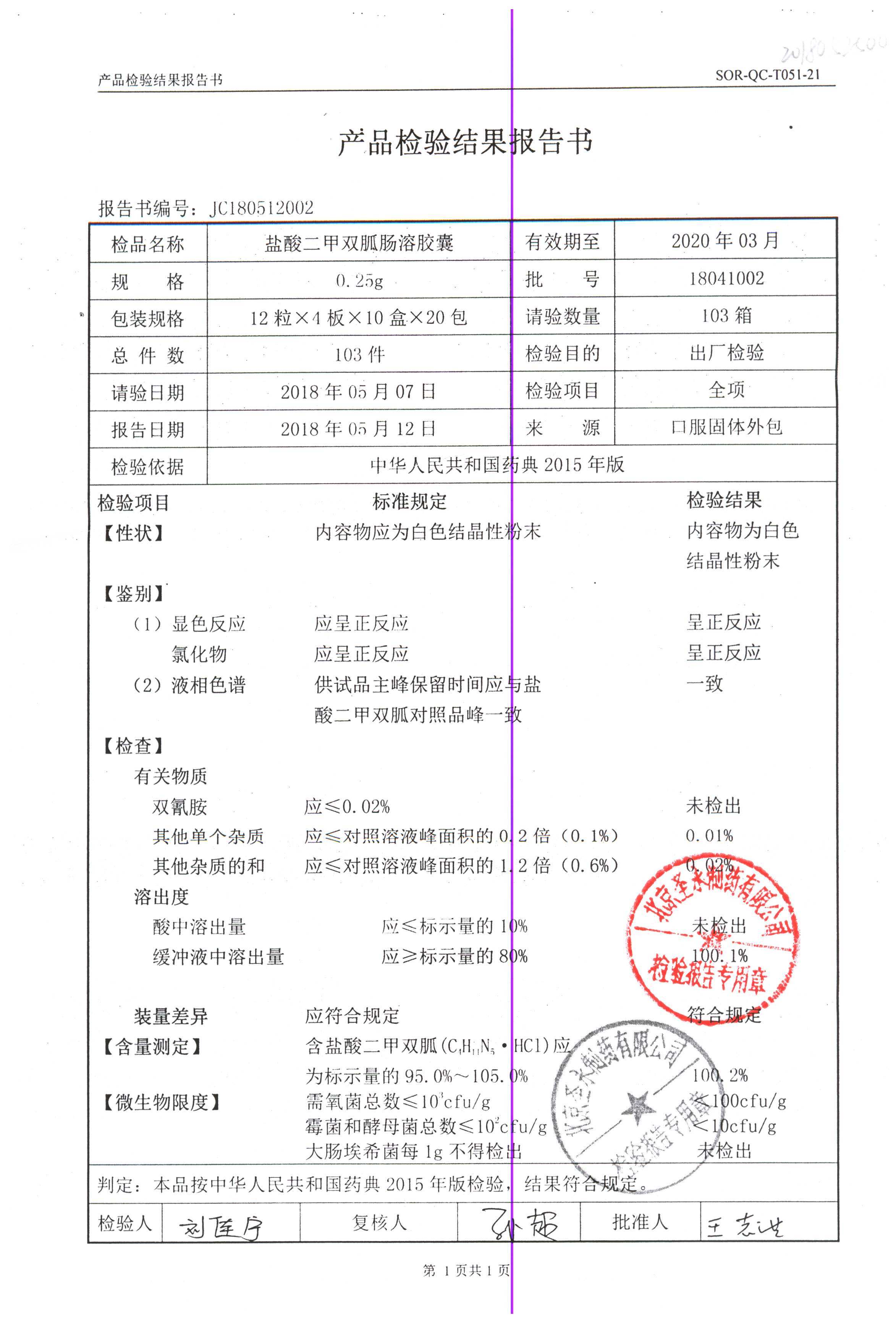 | 鹽酸二甲雙胍腸溶膠囊 | 0.5g*48s | 18041002(2/2) | 查看詳情 |