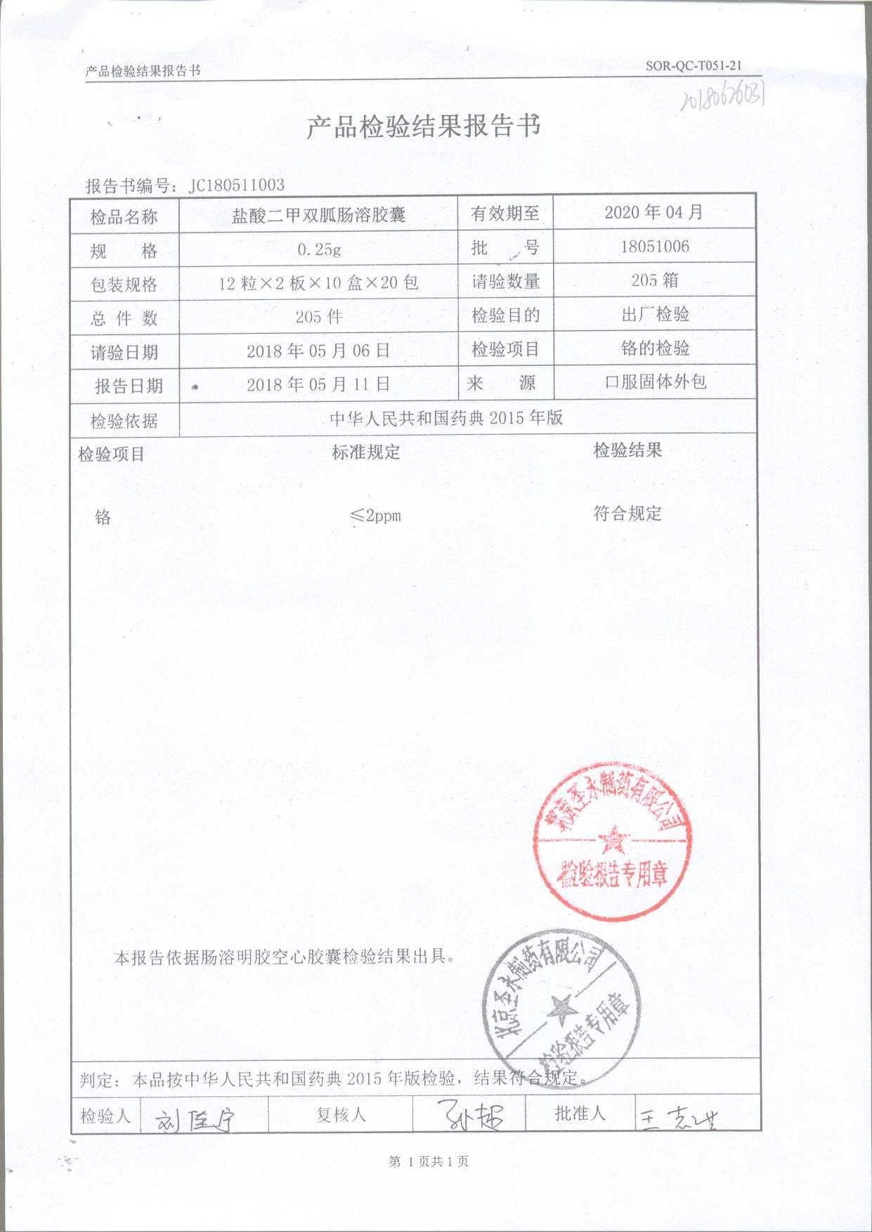 | 鹽酸二甲雙胍腸溶膠囊 | 0.5g*48s | 18051006(1/2) | 查看詳情 |