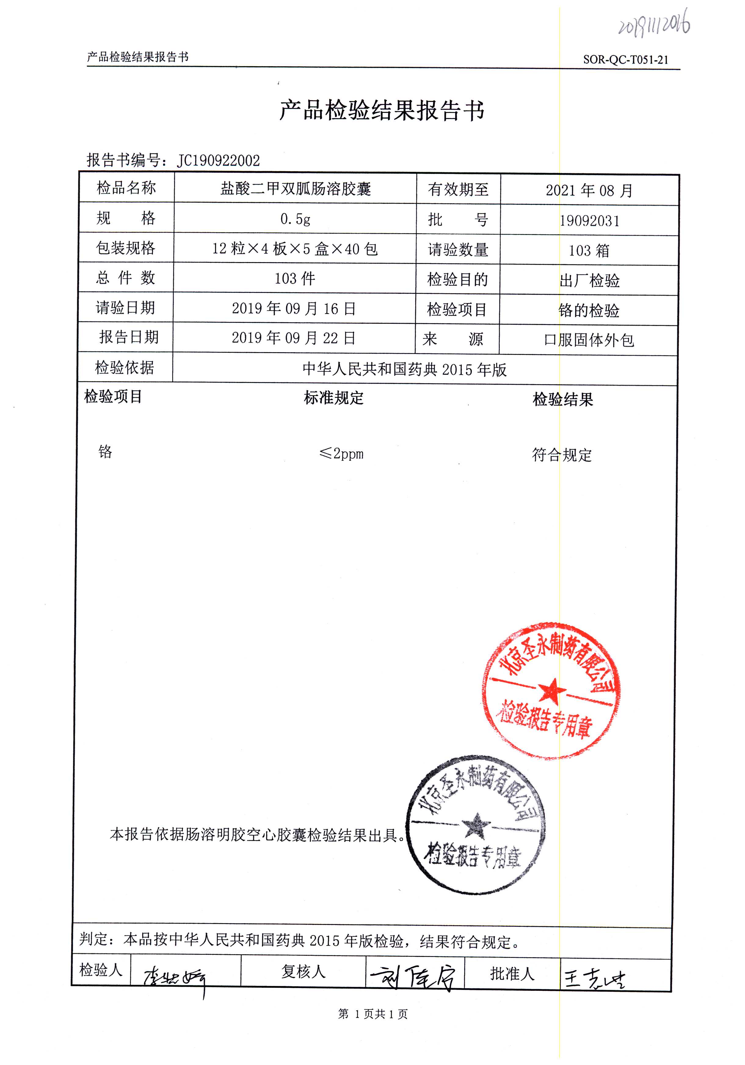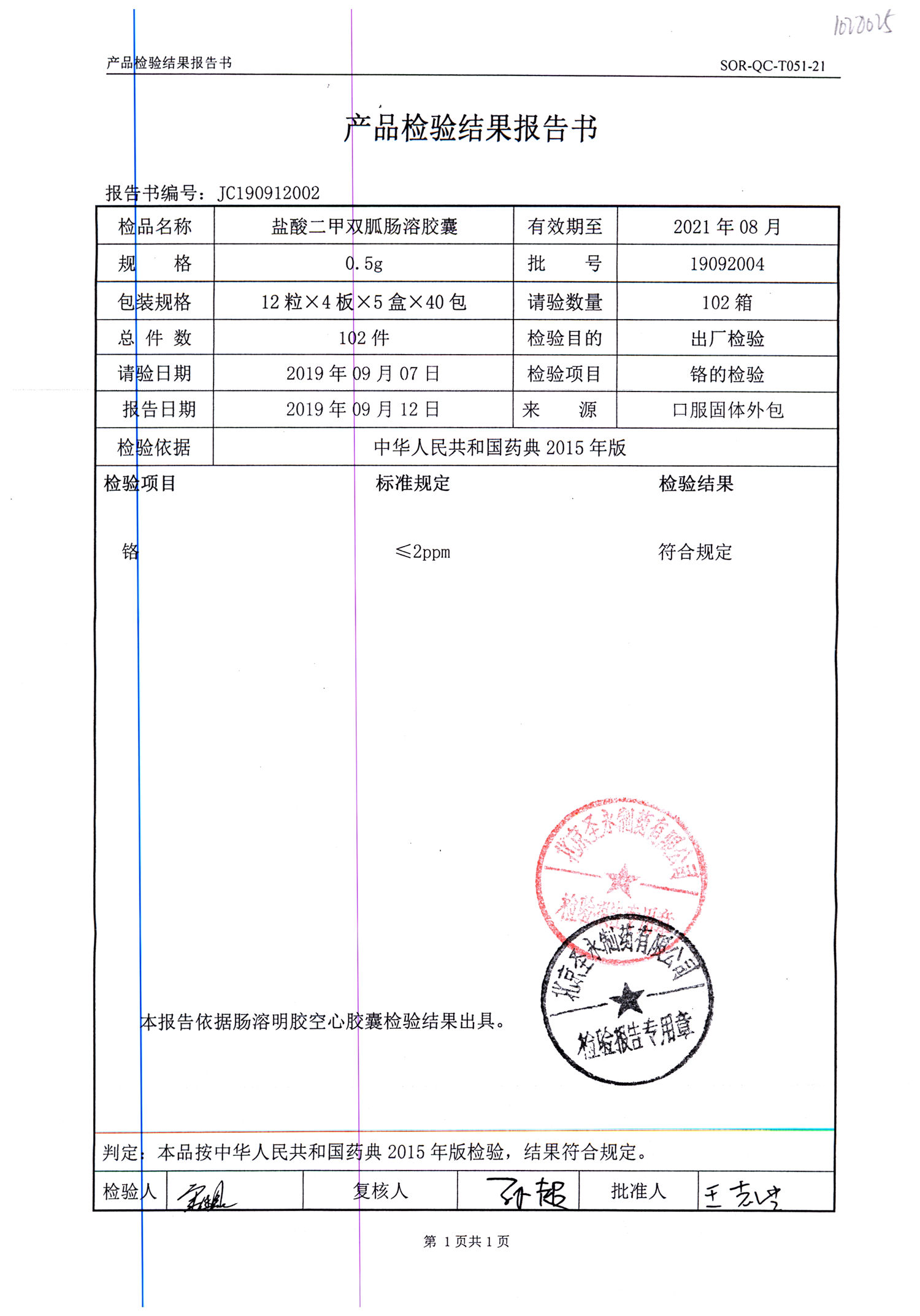 | 鹽酸二甲雙胍腸溶膠囊 | 0.5g*48s | 19092031(1/2) | 查看詳情 |