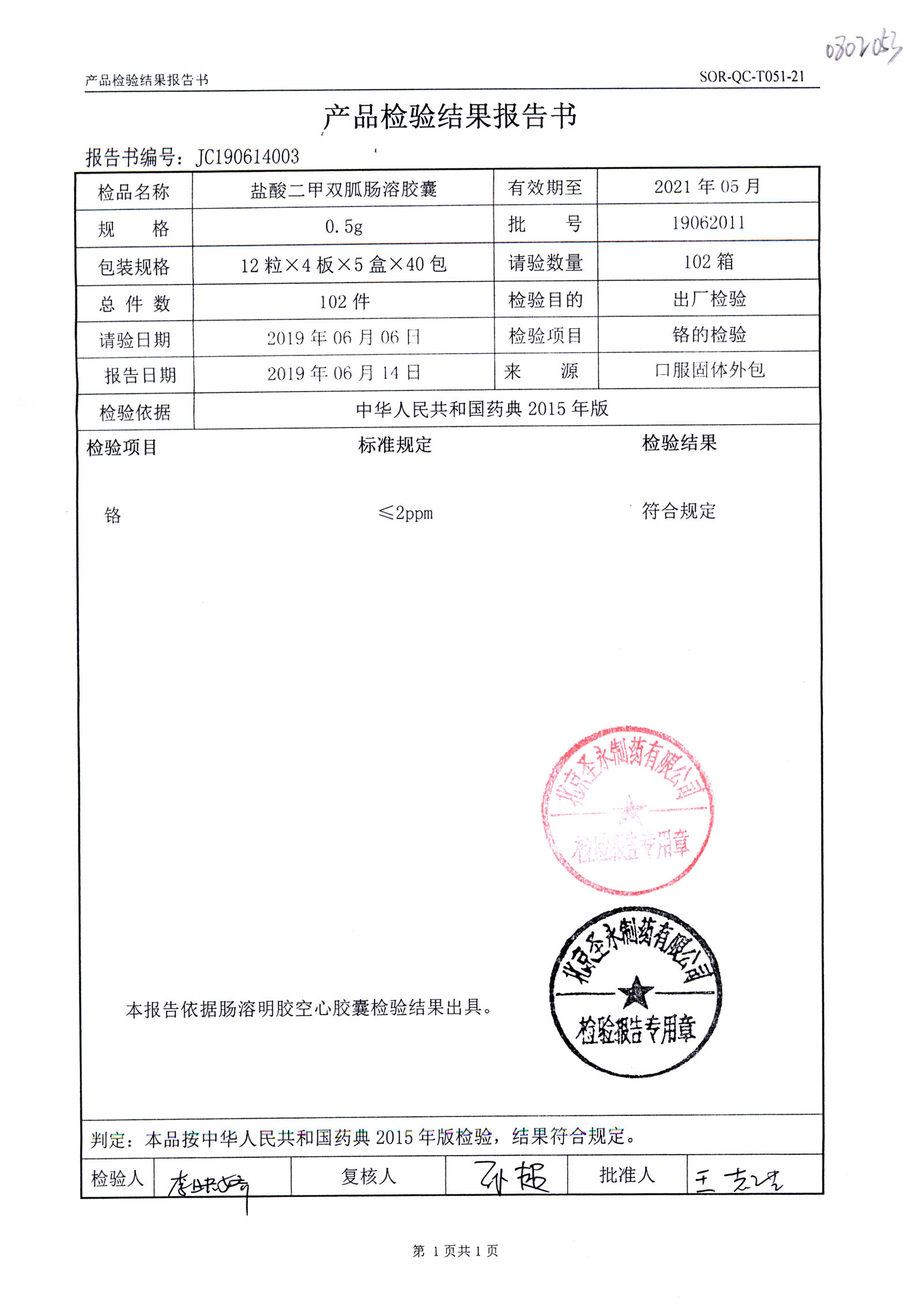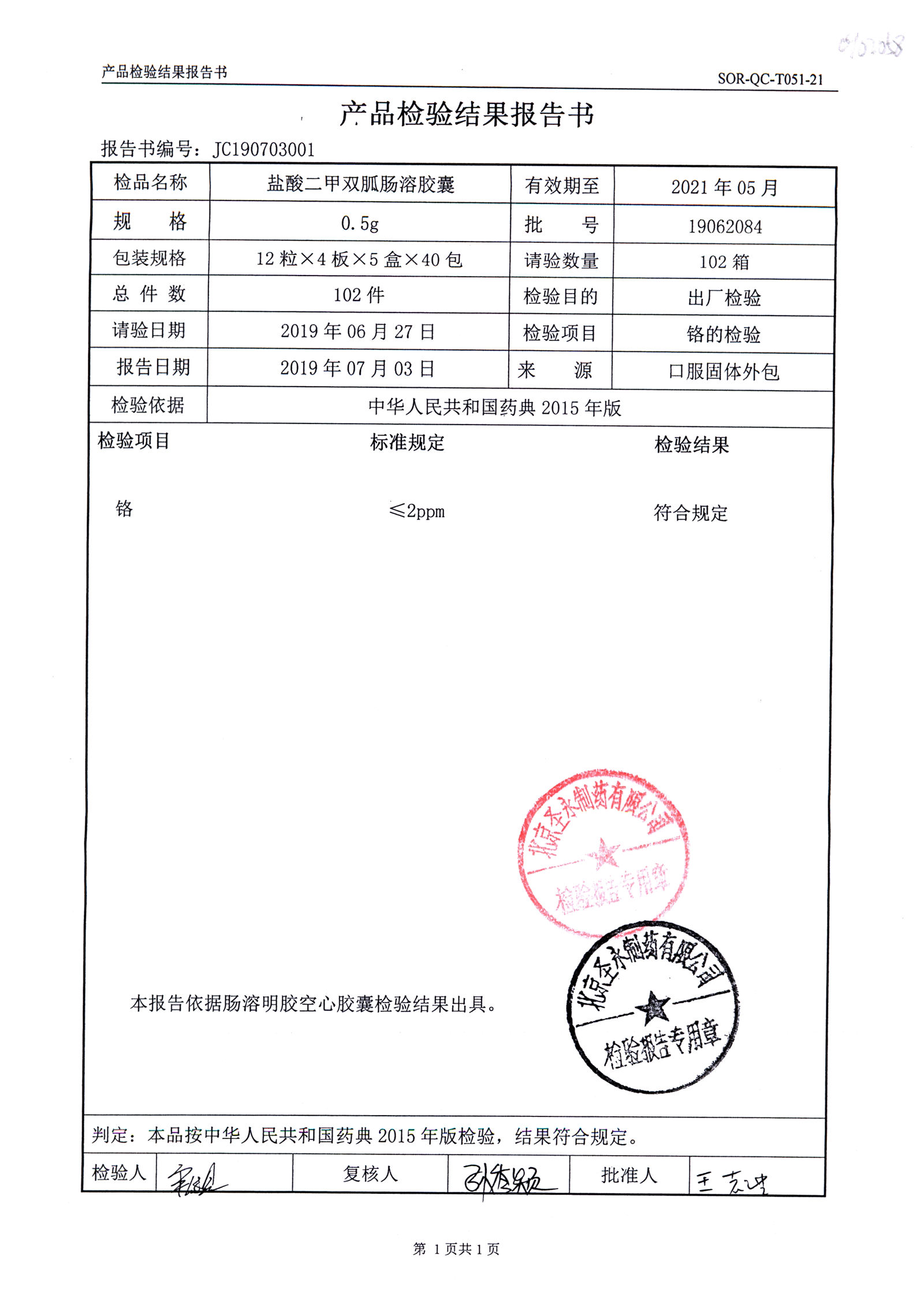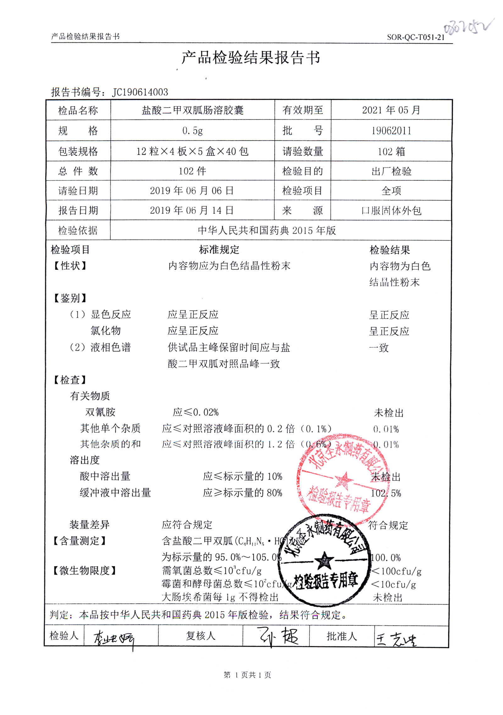 | 鹽酸二甲雙胍腸溶膠囊 | 0.5g*48s | 19062011(1/2) | 查看詳情 |