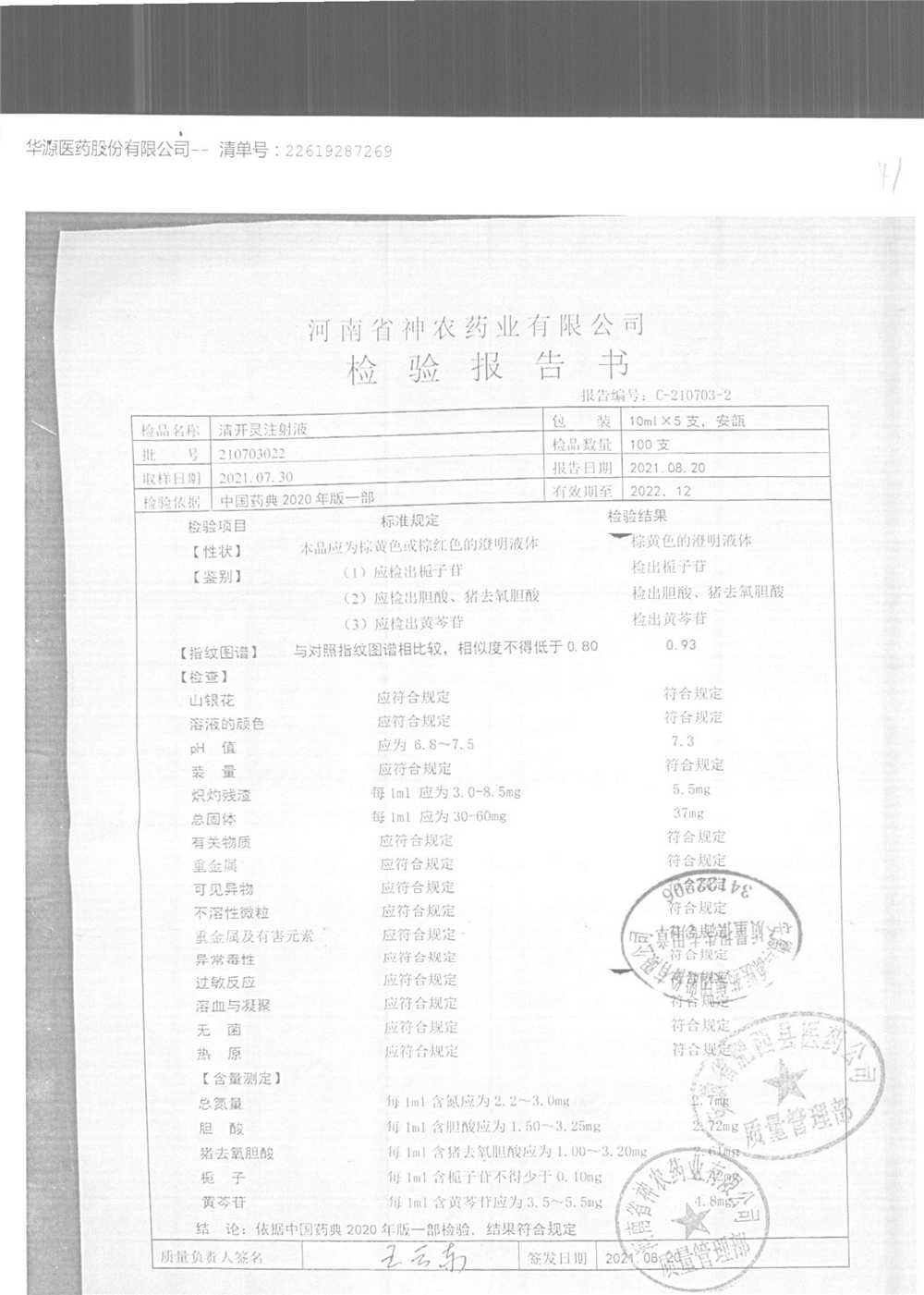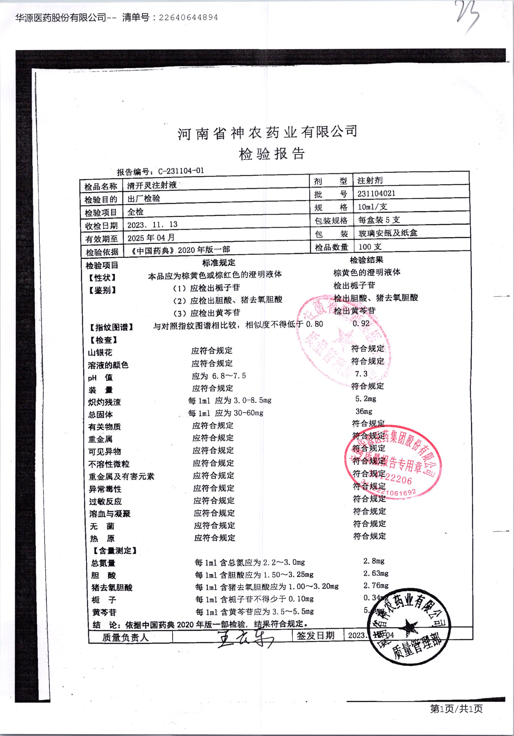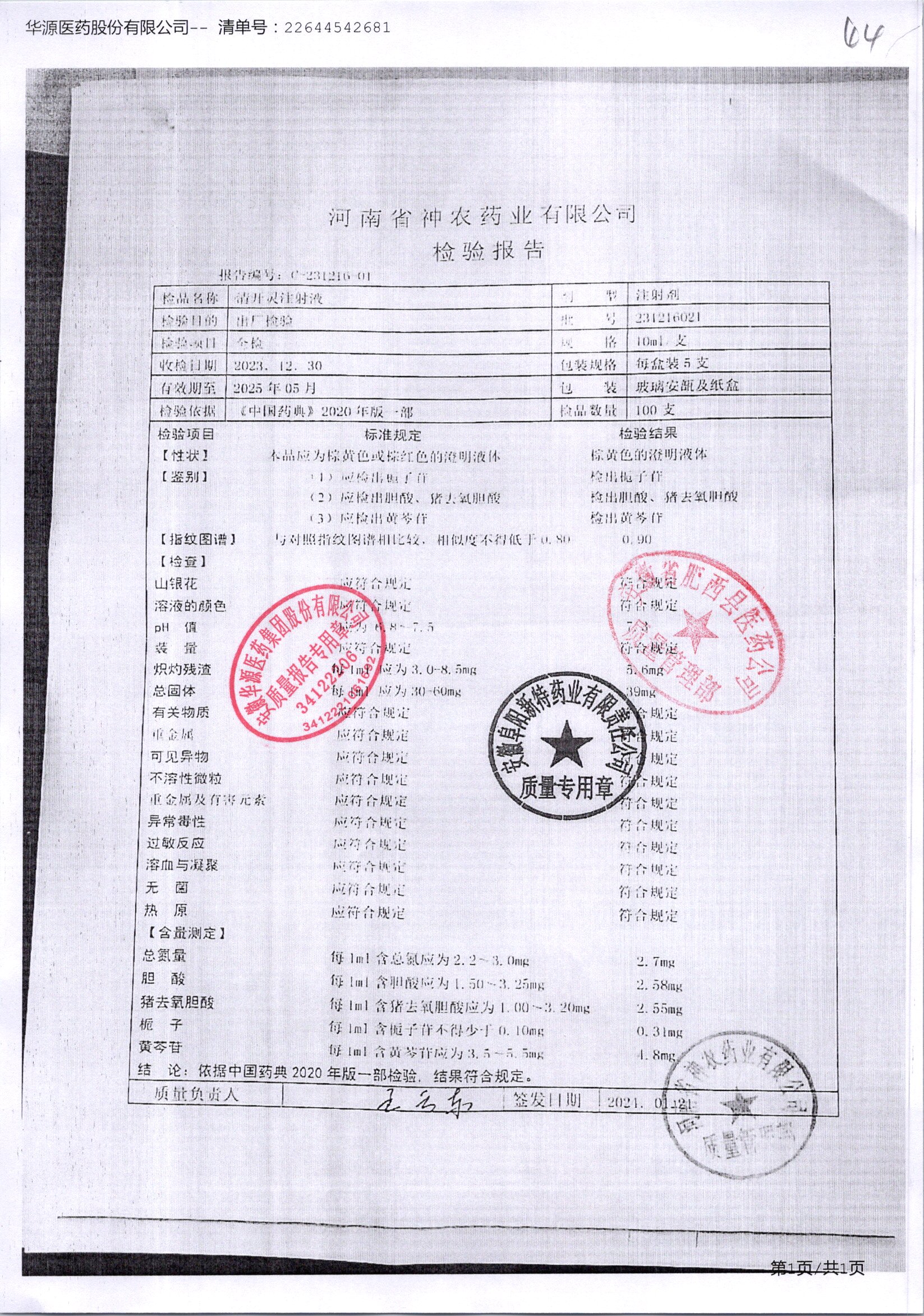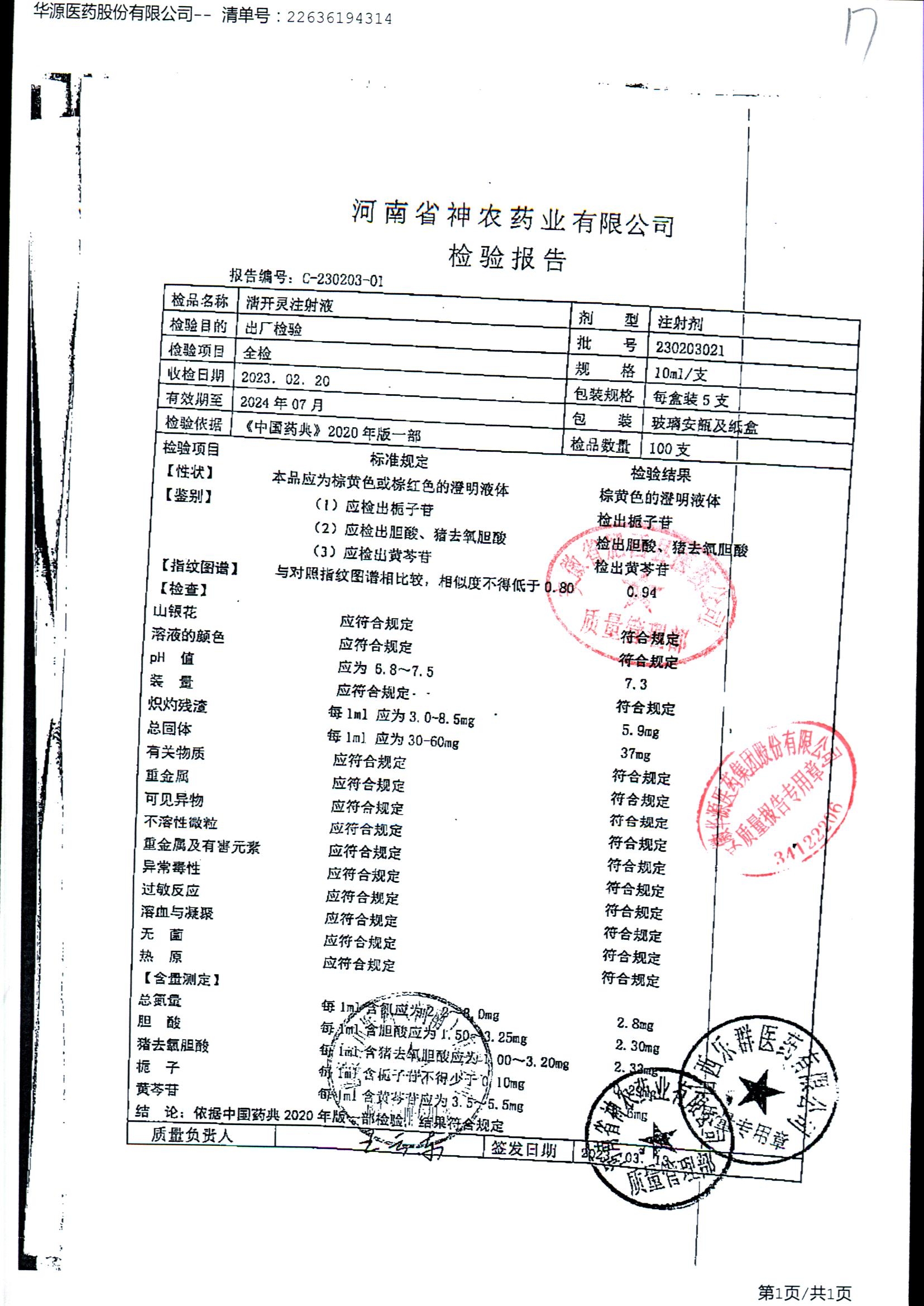 | 清開靈注射液 | 10ml*5支 | 231212021 | 查看詳情 |