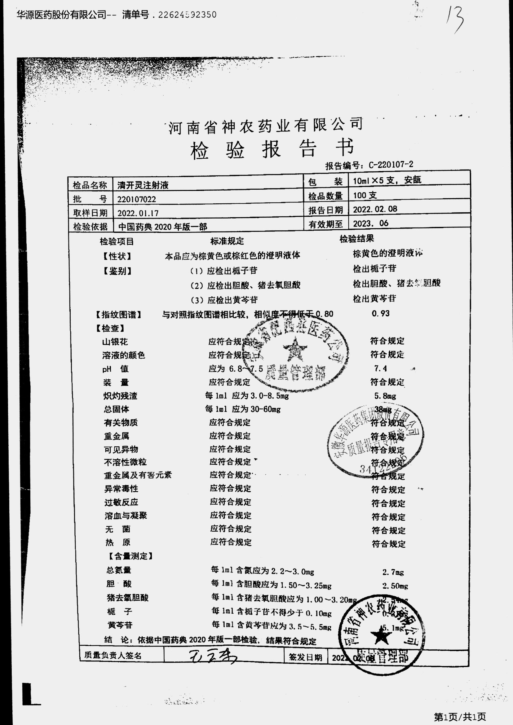 | 清開靈注射液 | 10ml*5支 | 220107022 | 查看詳情 |