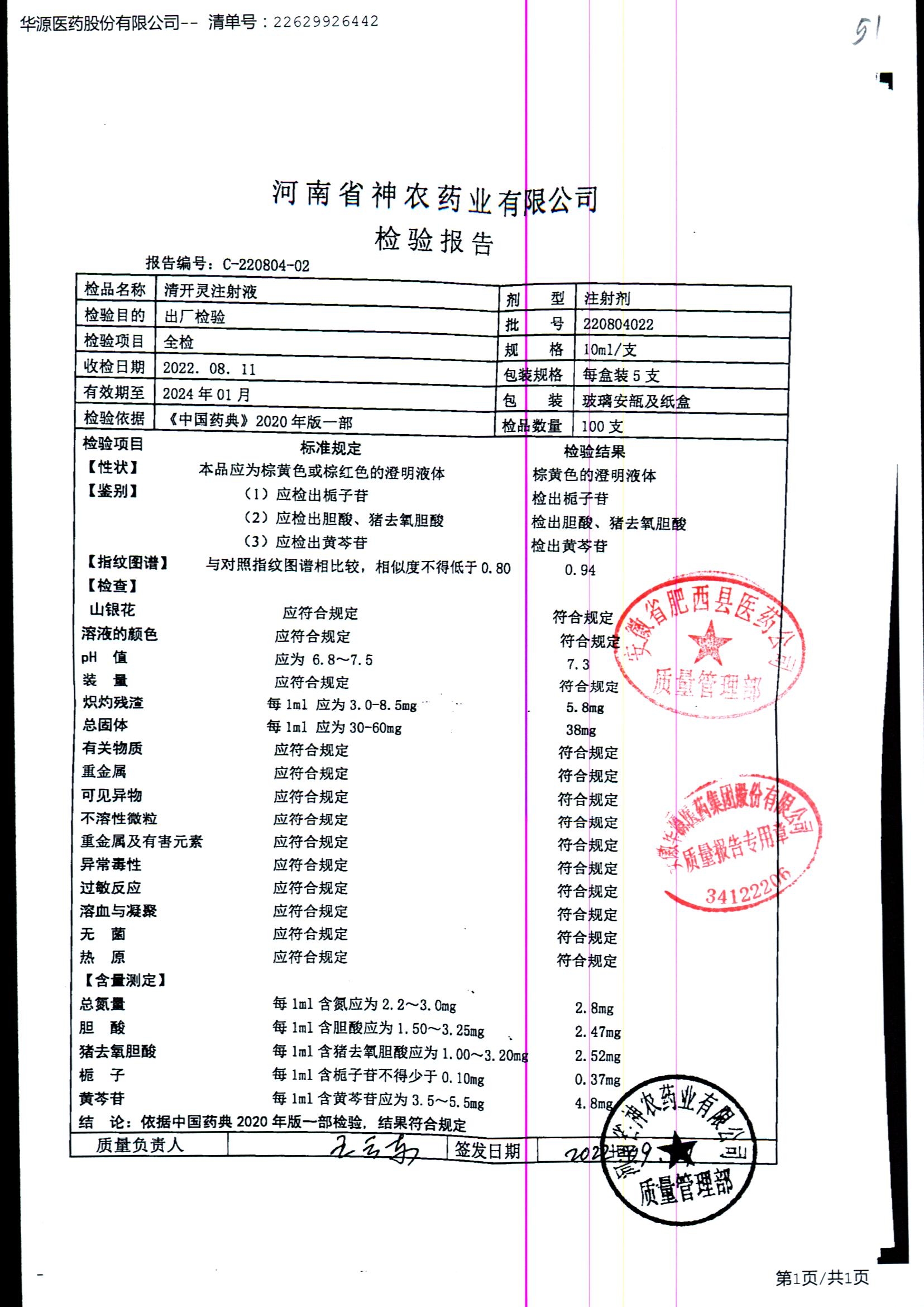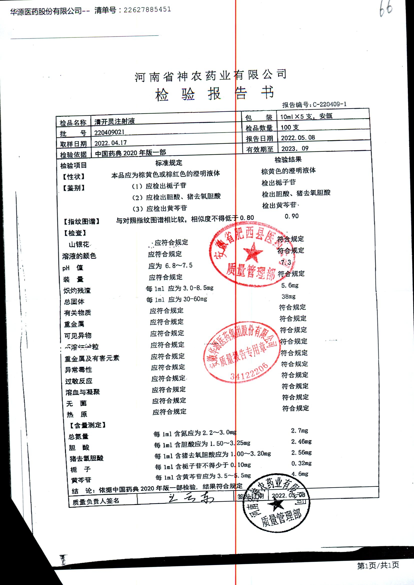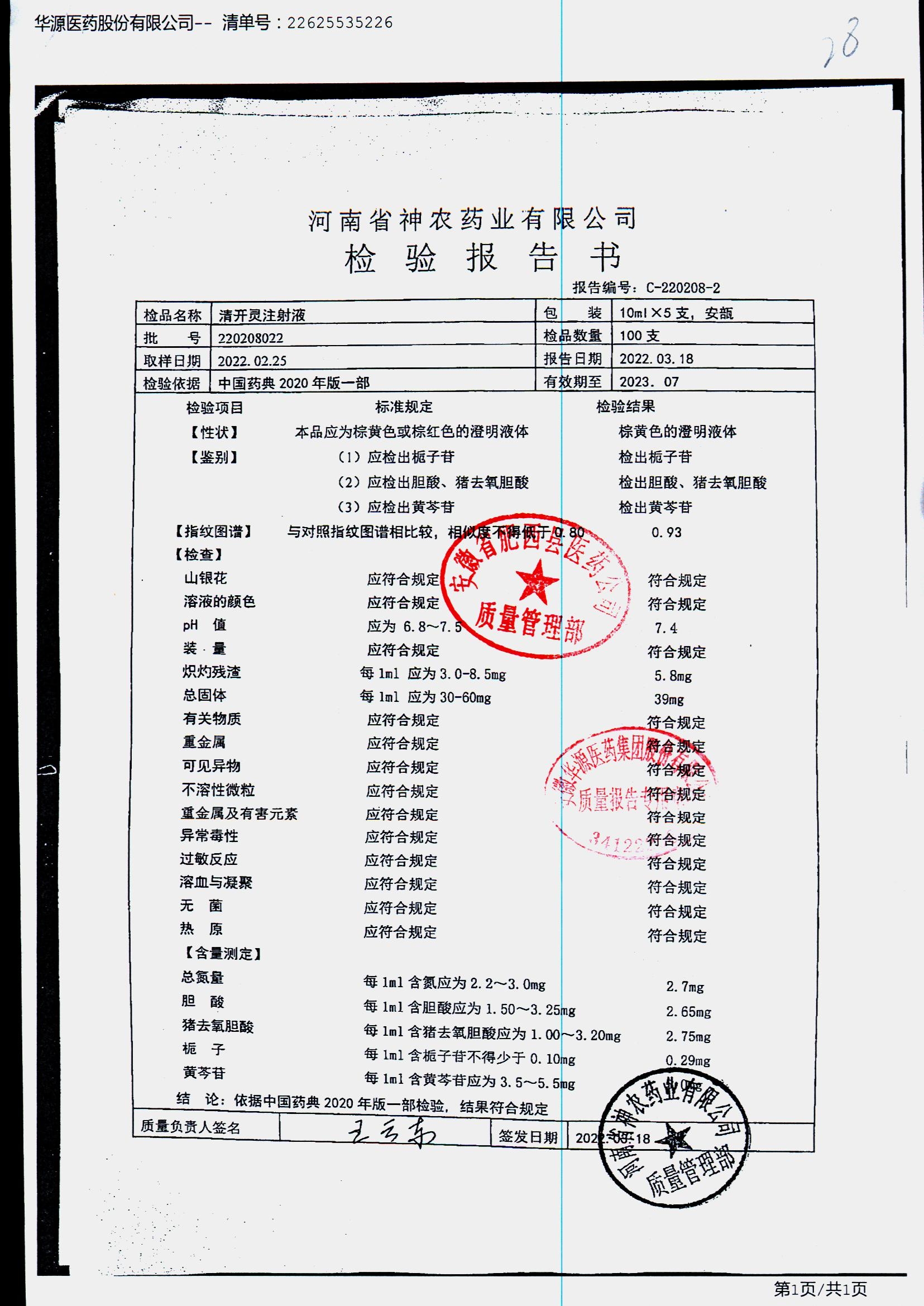 | 清開靈注射液 | 10ml*5支 | 220409021 | 查看詳情 |
