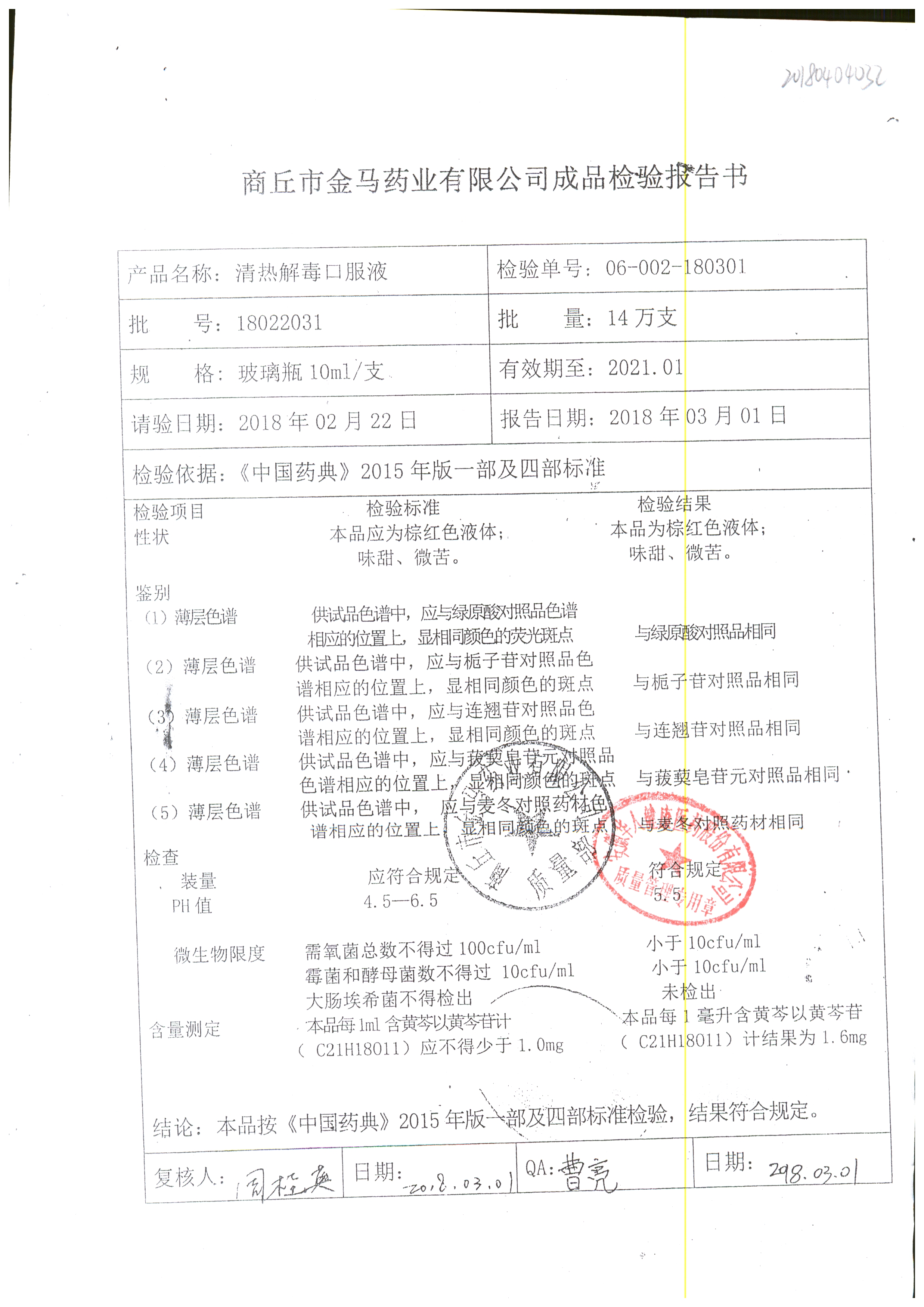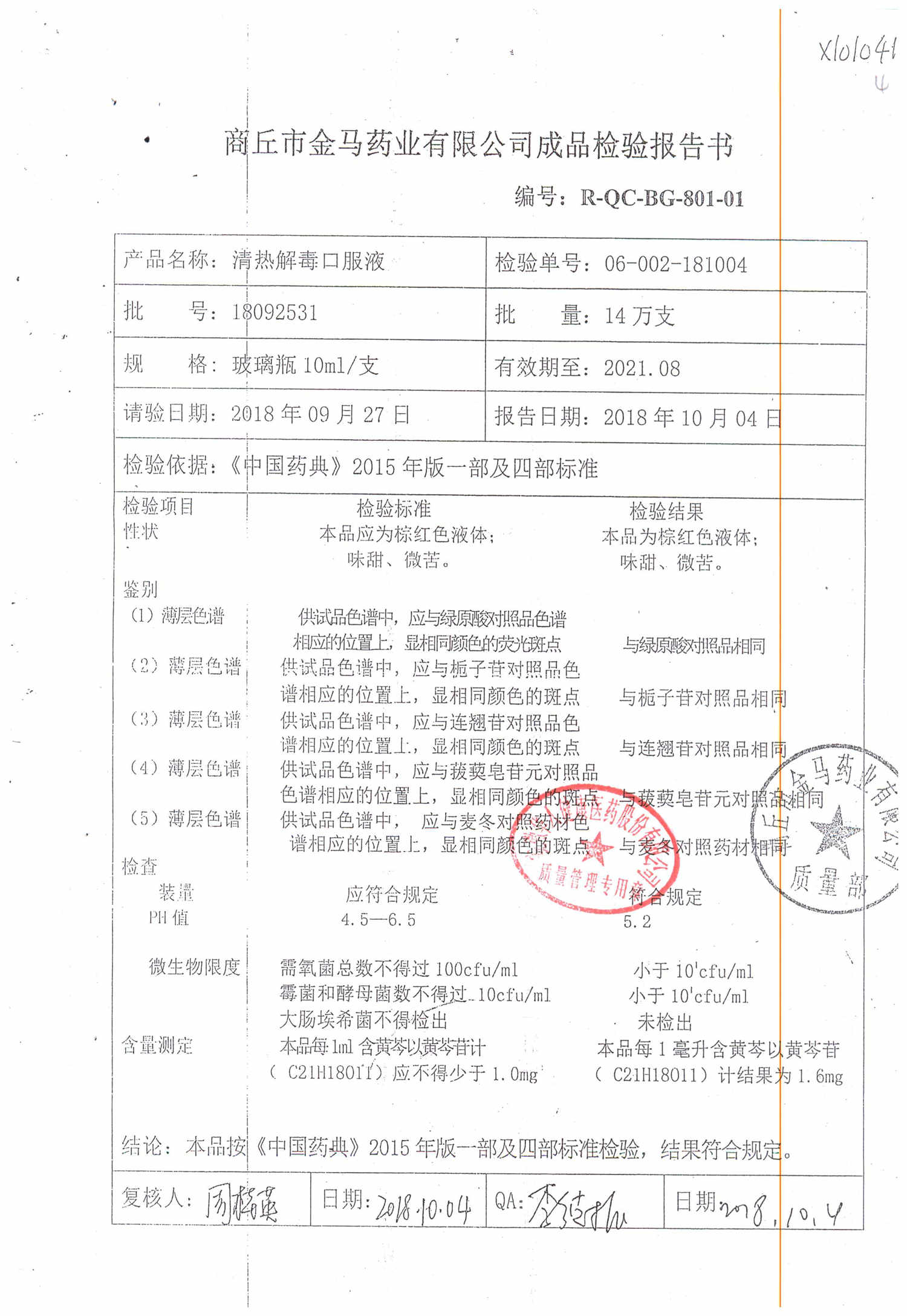 | 清熱解毒口服液 | 10ml | 18051031 | 查看詳情 |