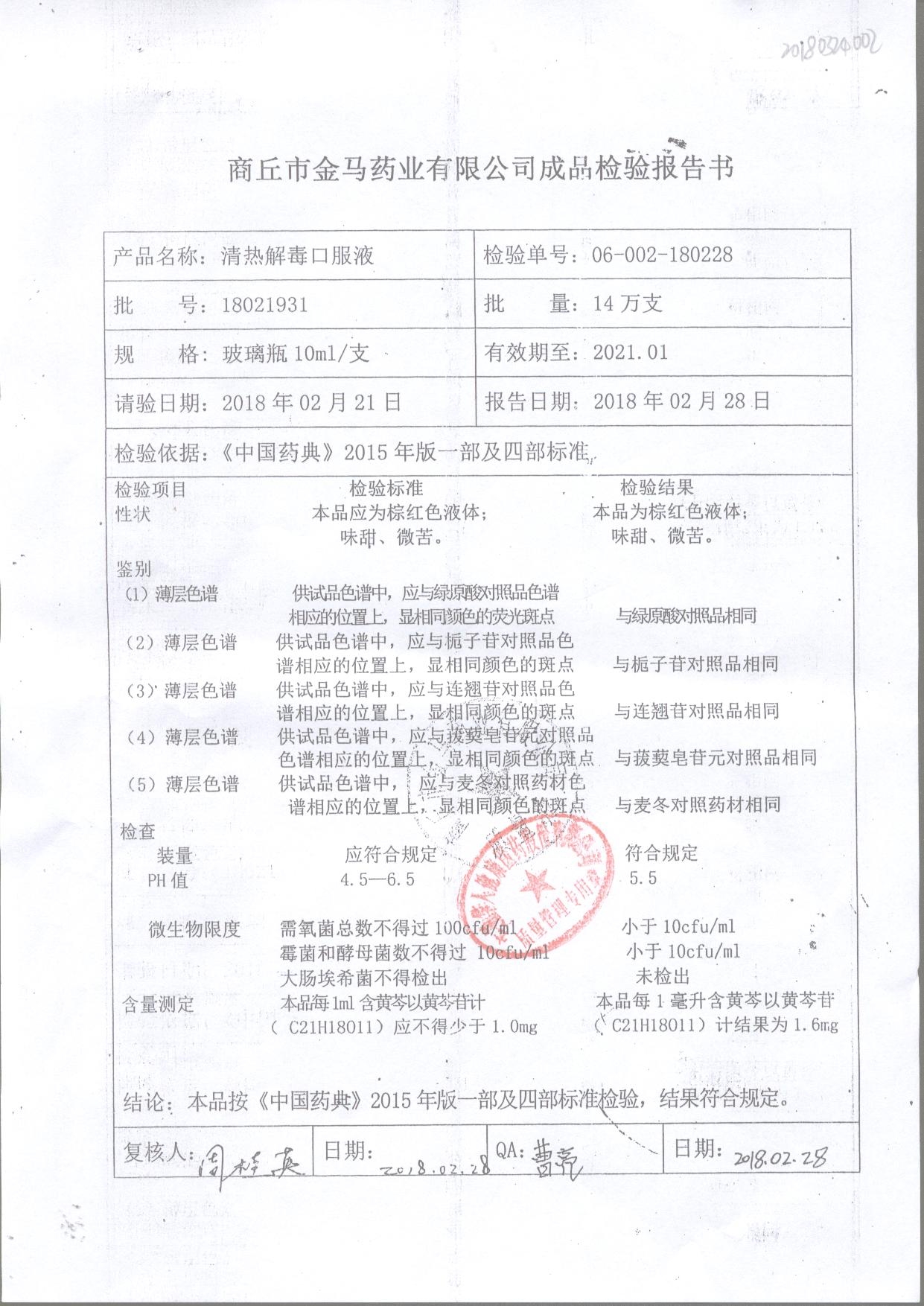 | 清熱解毒口服液 | 10ml | 19021231 | 查看詳情 |