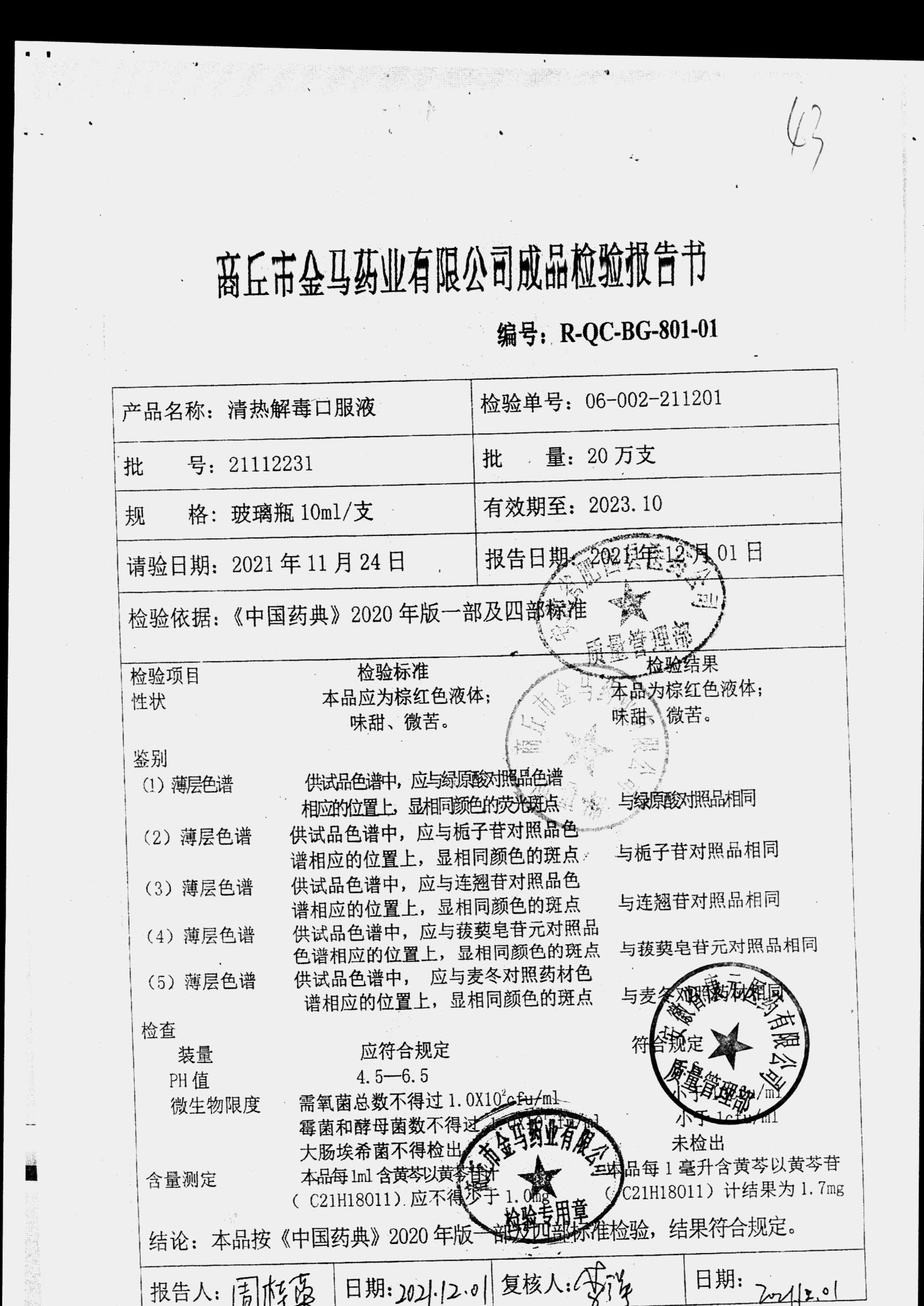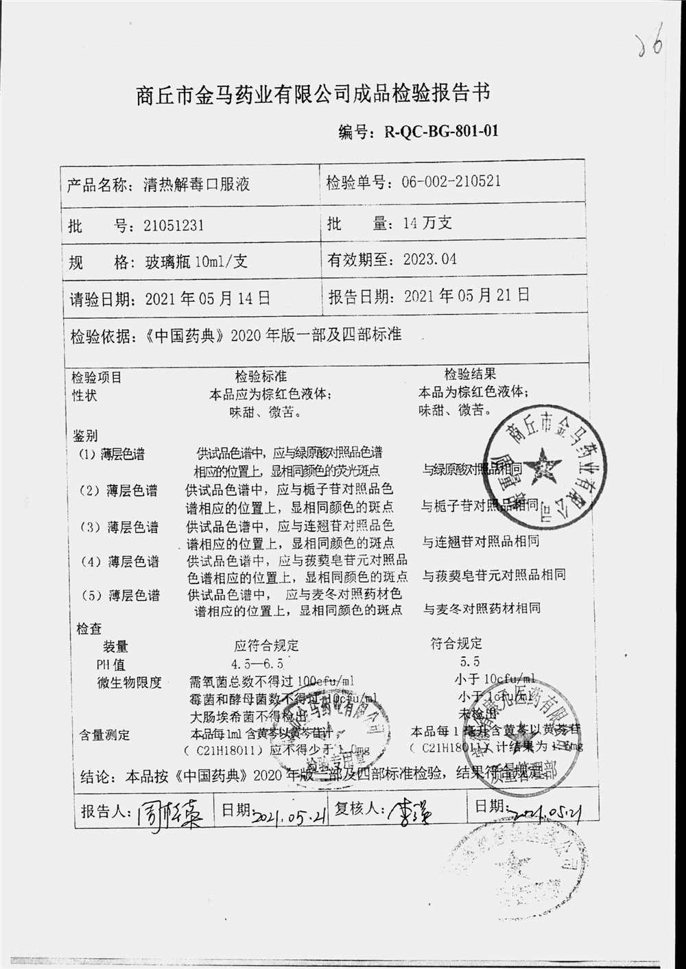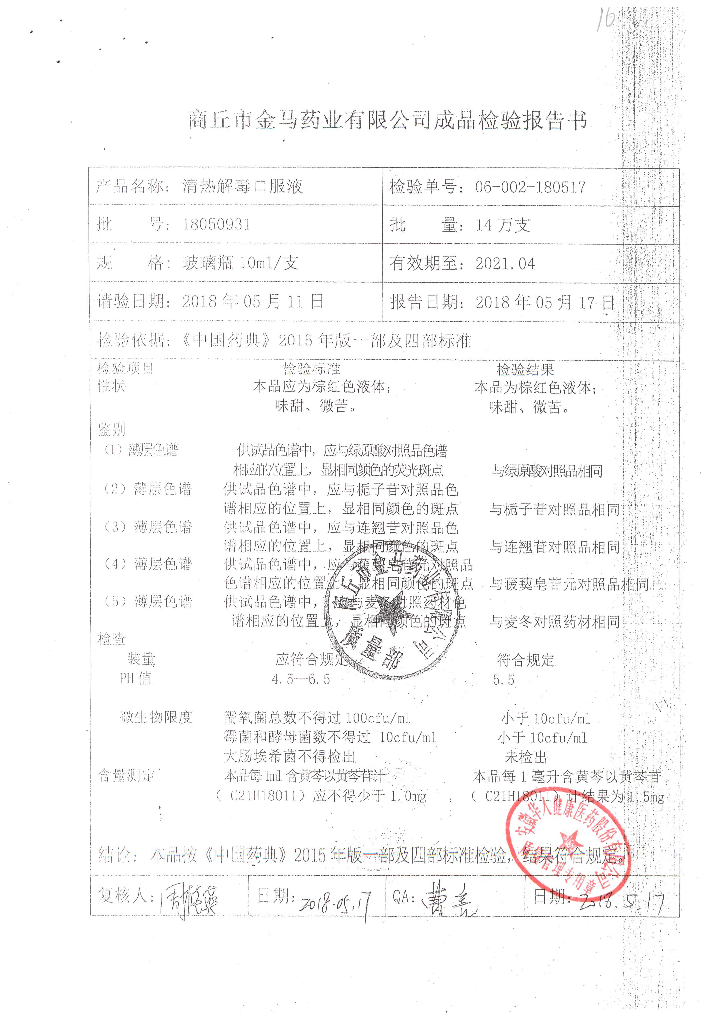 | 清熱解毒口服液 | 10ml | 21051231 | 查看詳情 |