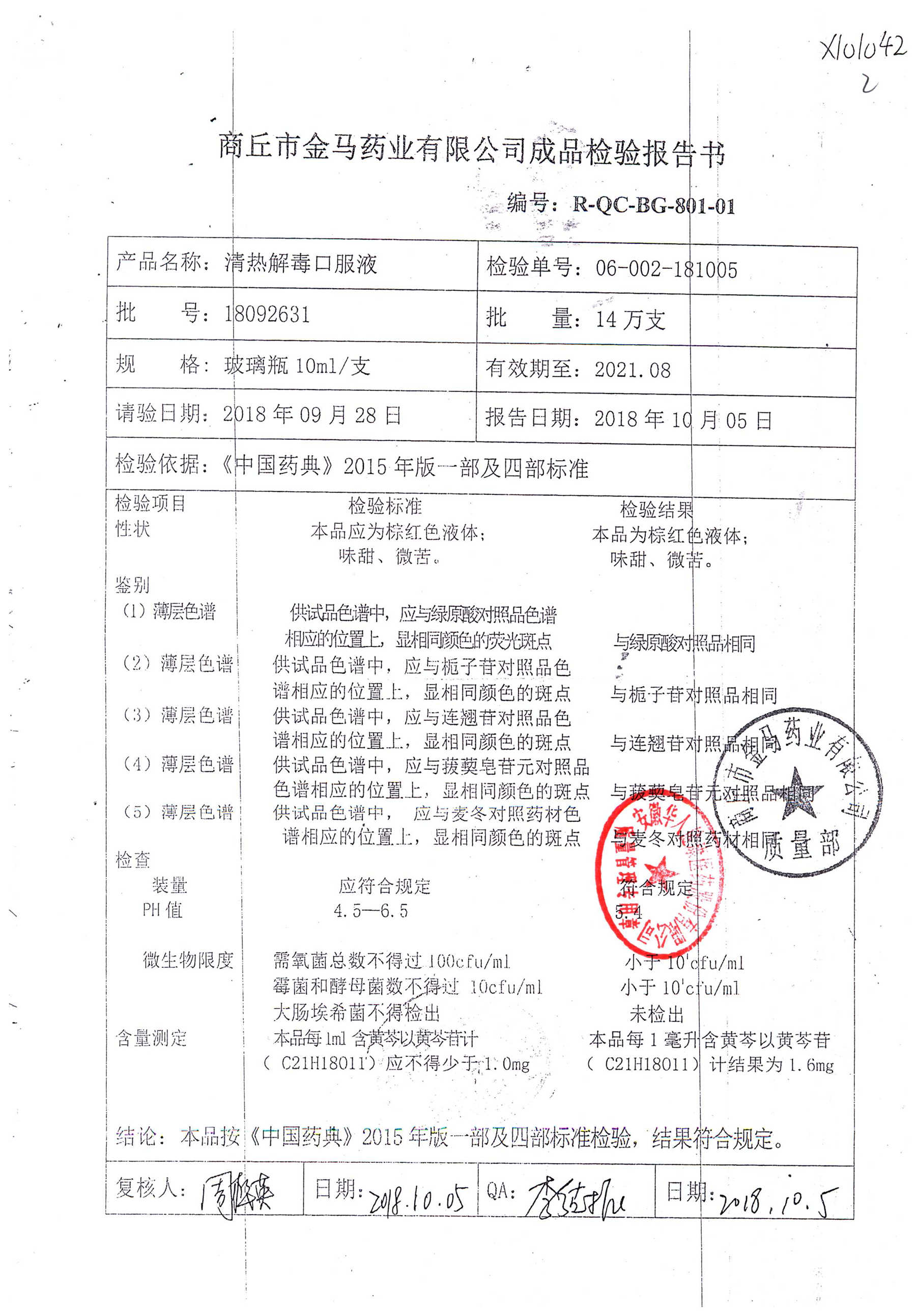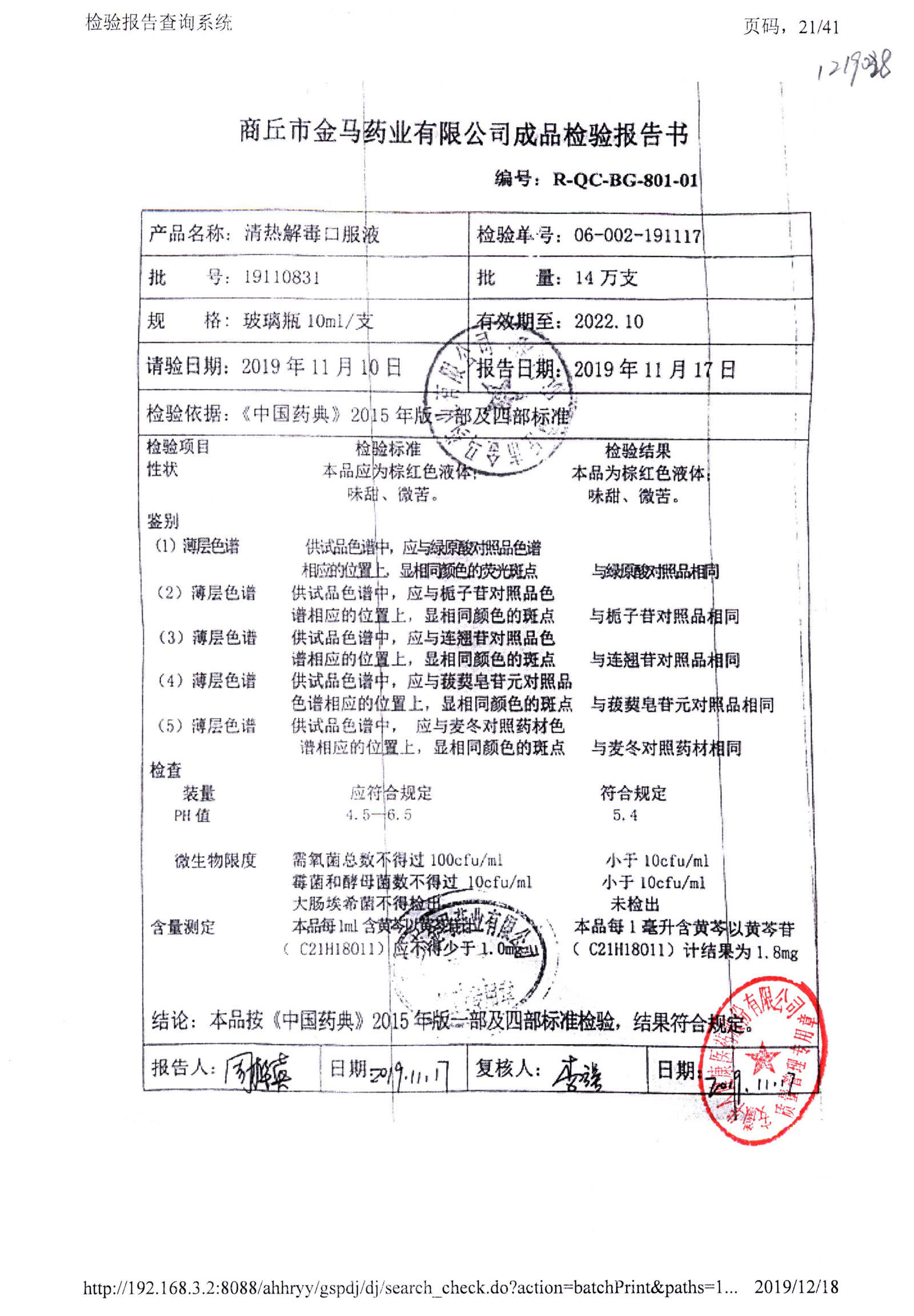 | 清熱解毒口服液 | 10ml | 19110831 | 查看詳情 |