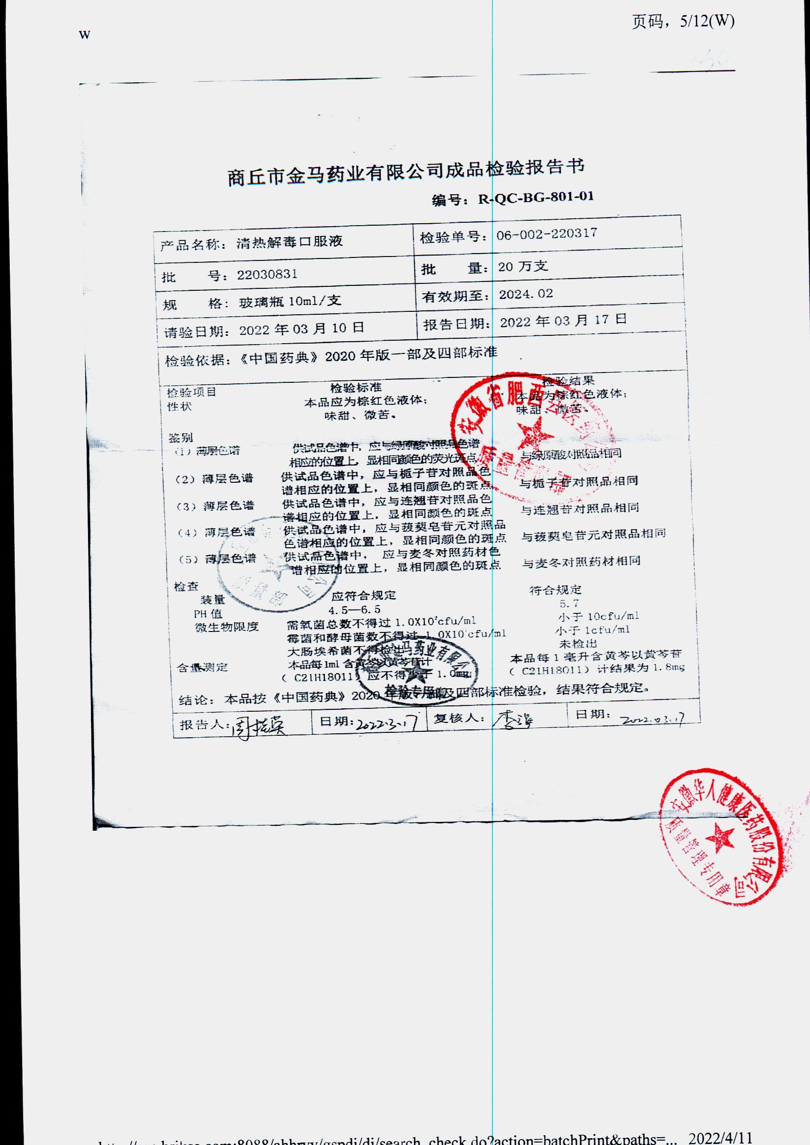 | 清熱解毒口服液 | 10ml | 22030831 | 查看詳情 |