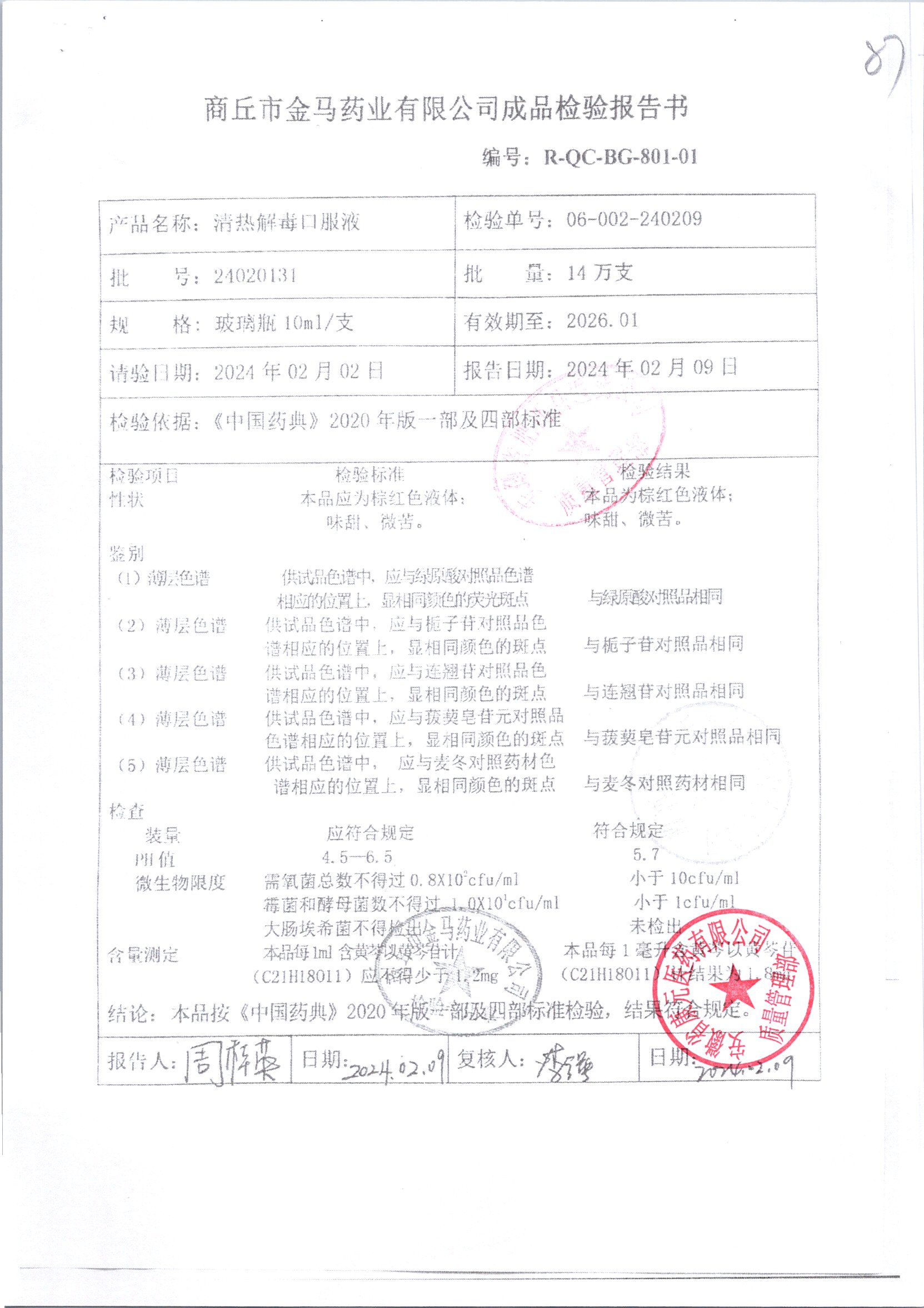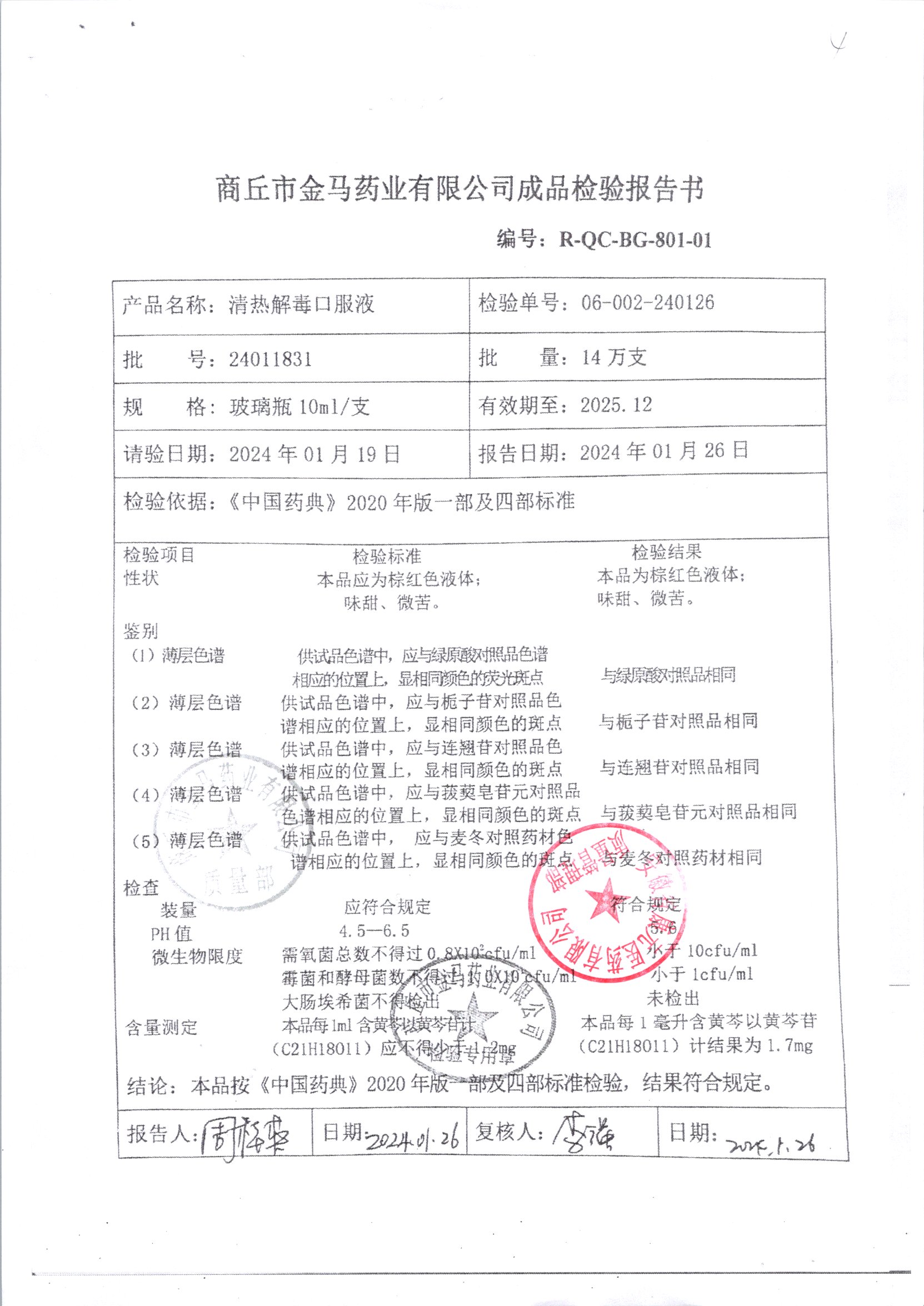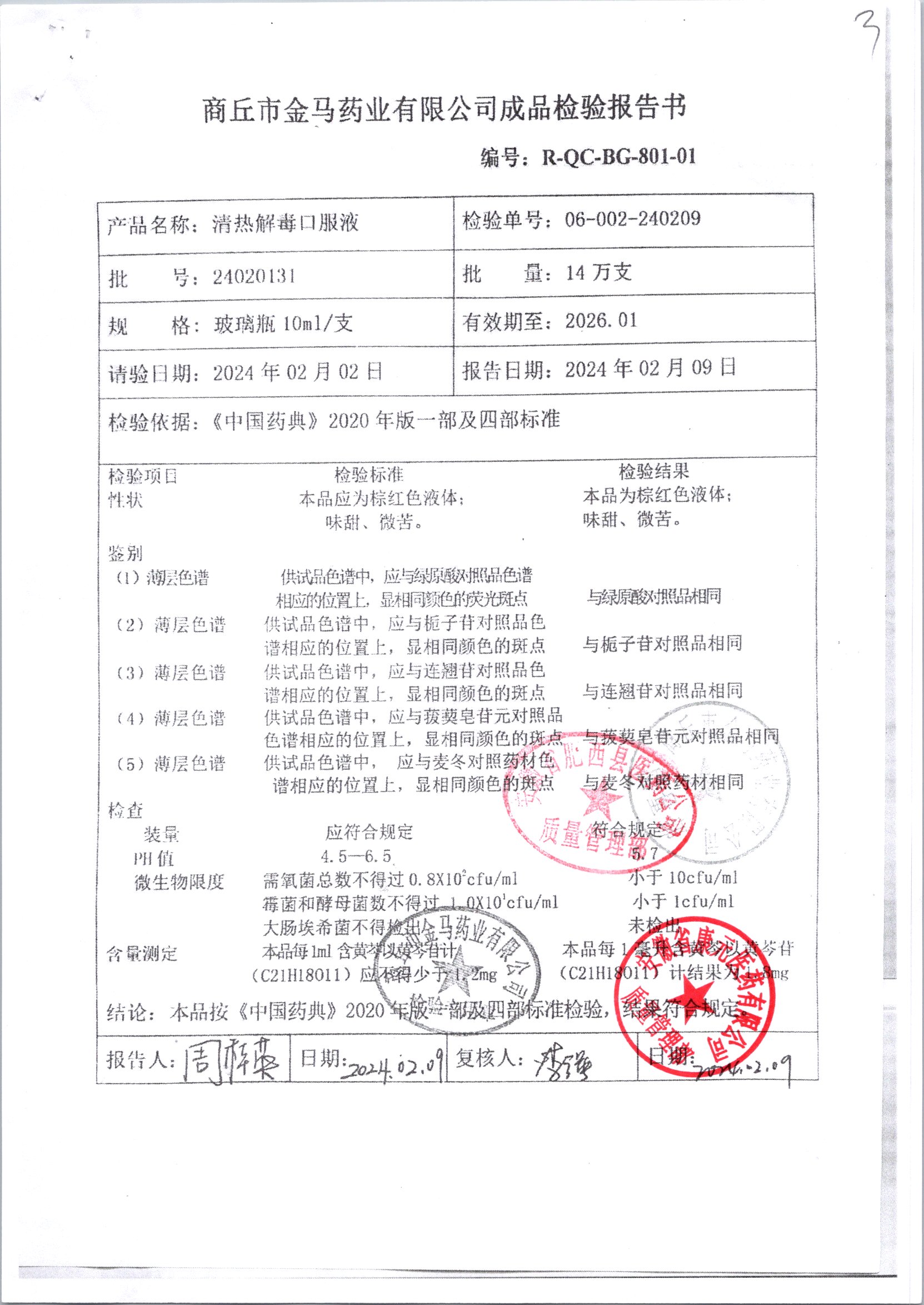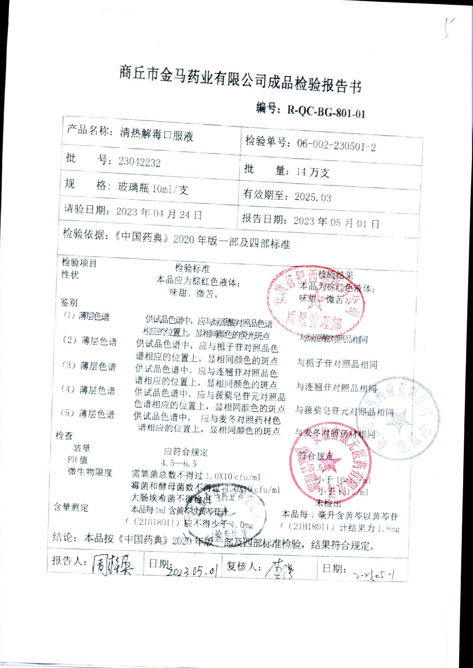 | 清熱解毒口服液 | 10ml | 24020131 | 查看詳情 |