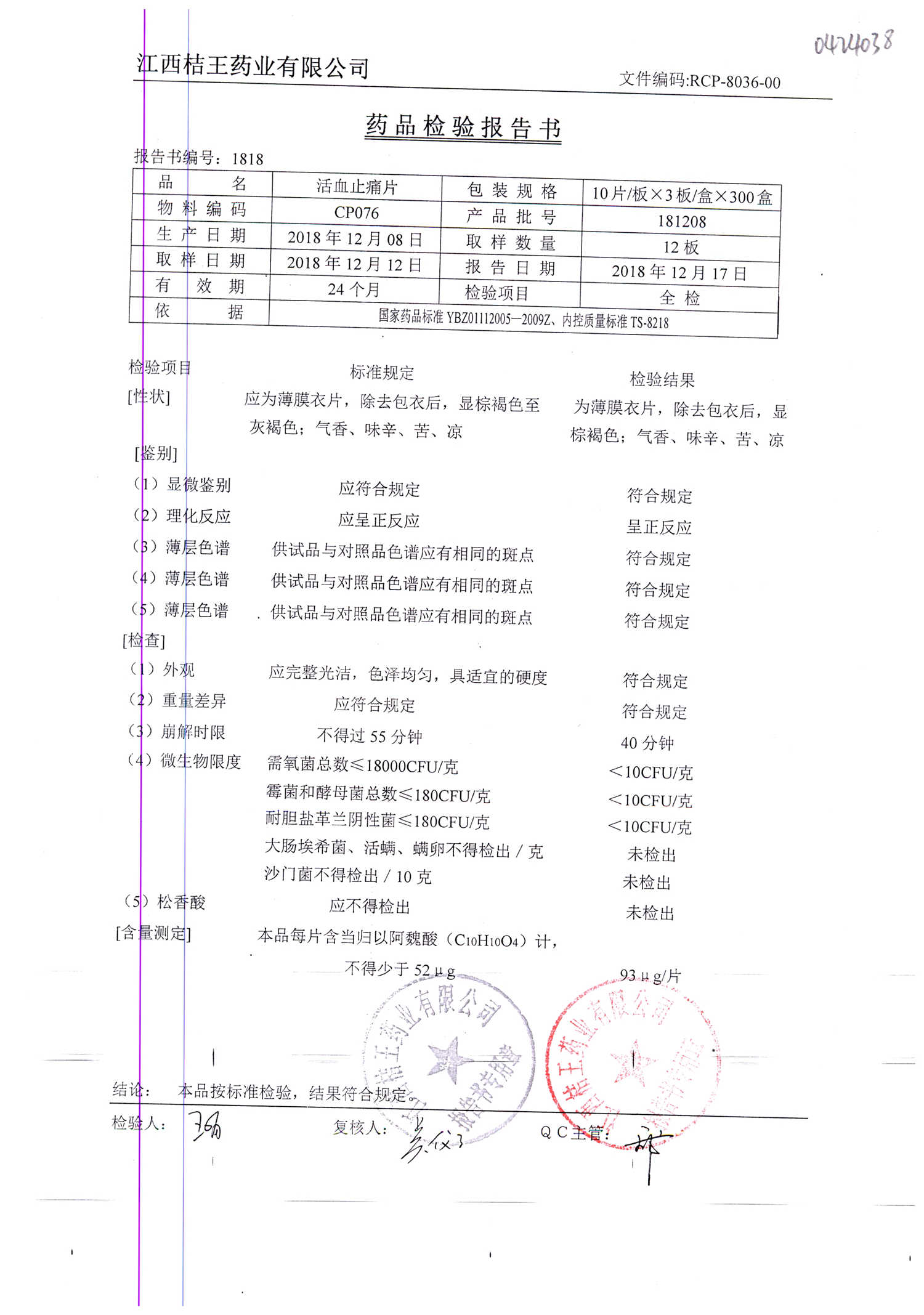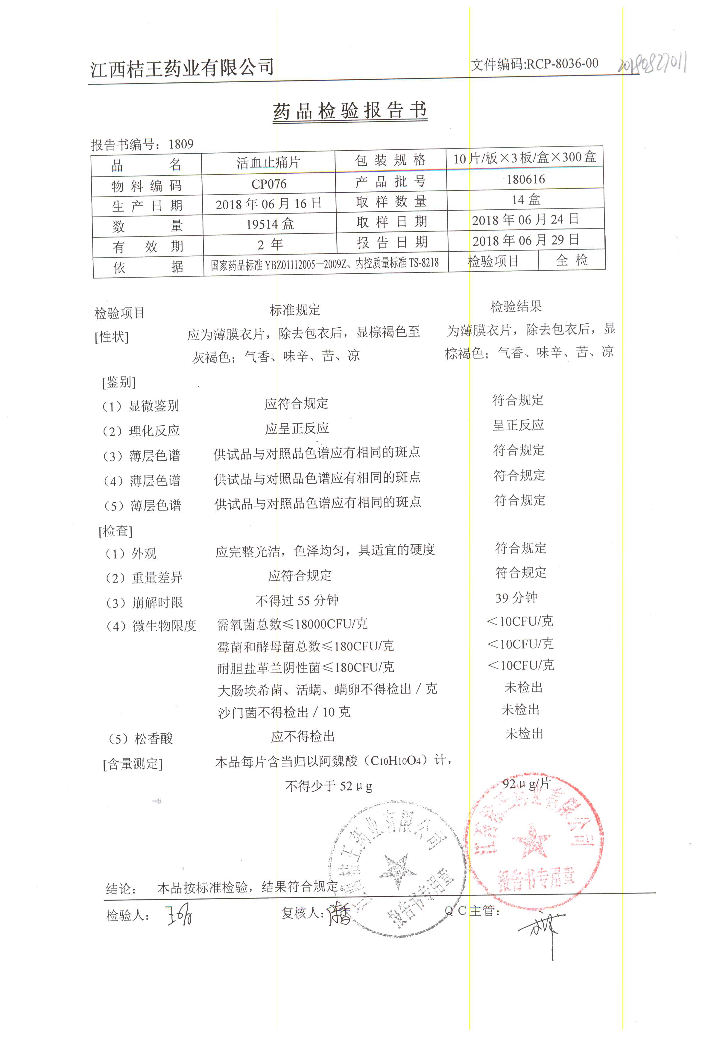 | 名稱 | 規(guī)格 | 批號(hào) | 藥檢報(bào)告 |
