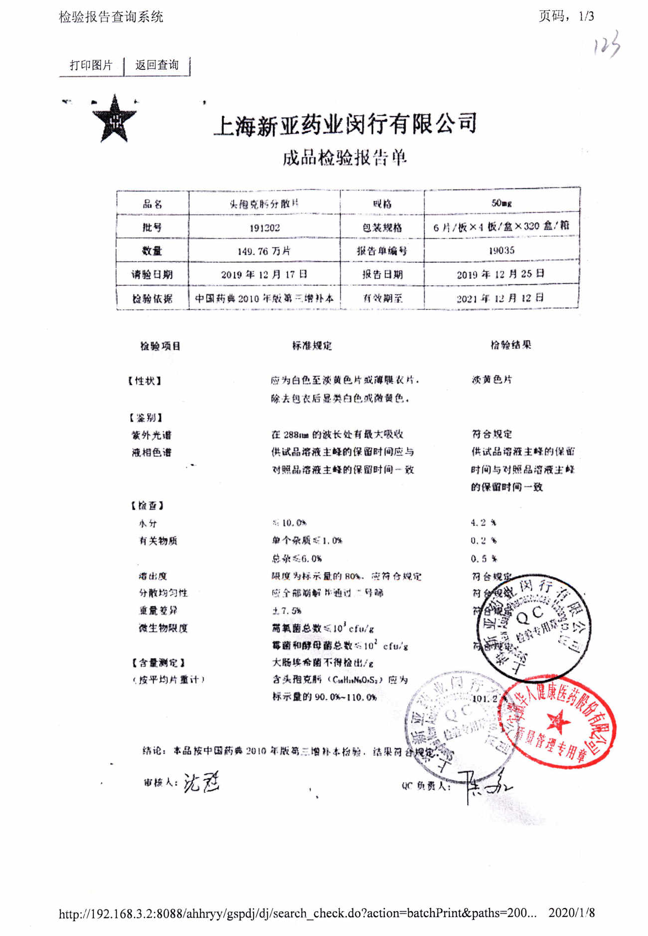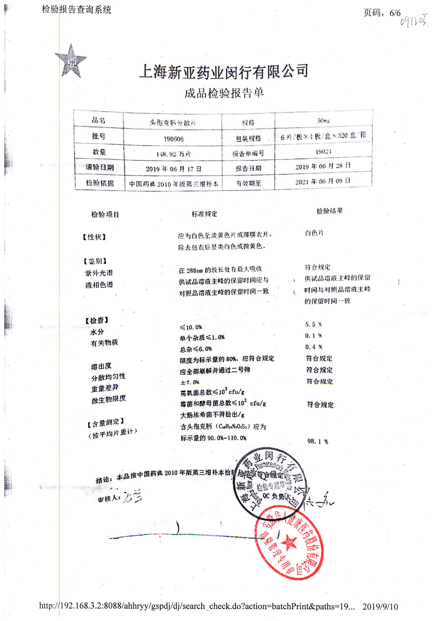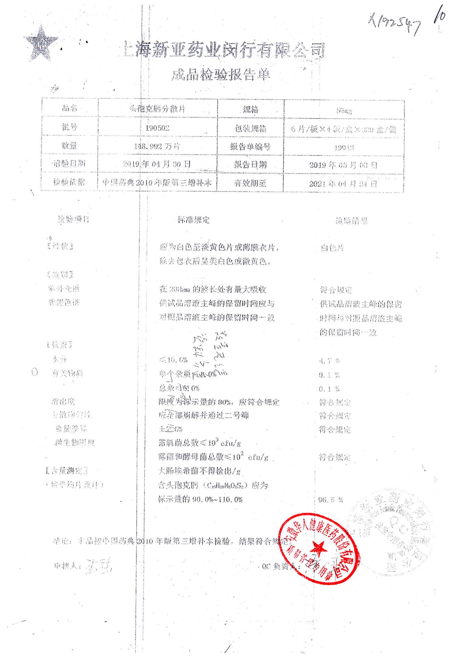 | 頭孢克肟分散片 | 50mg*24s | 190702 | 查看詳情 |