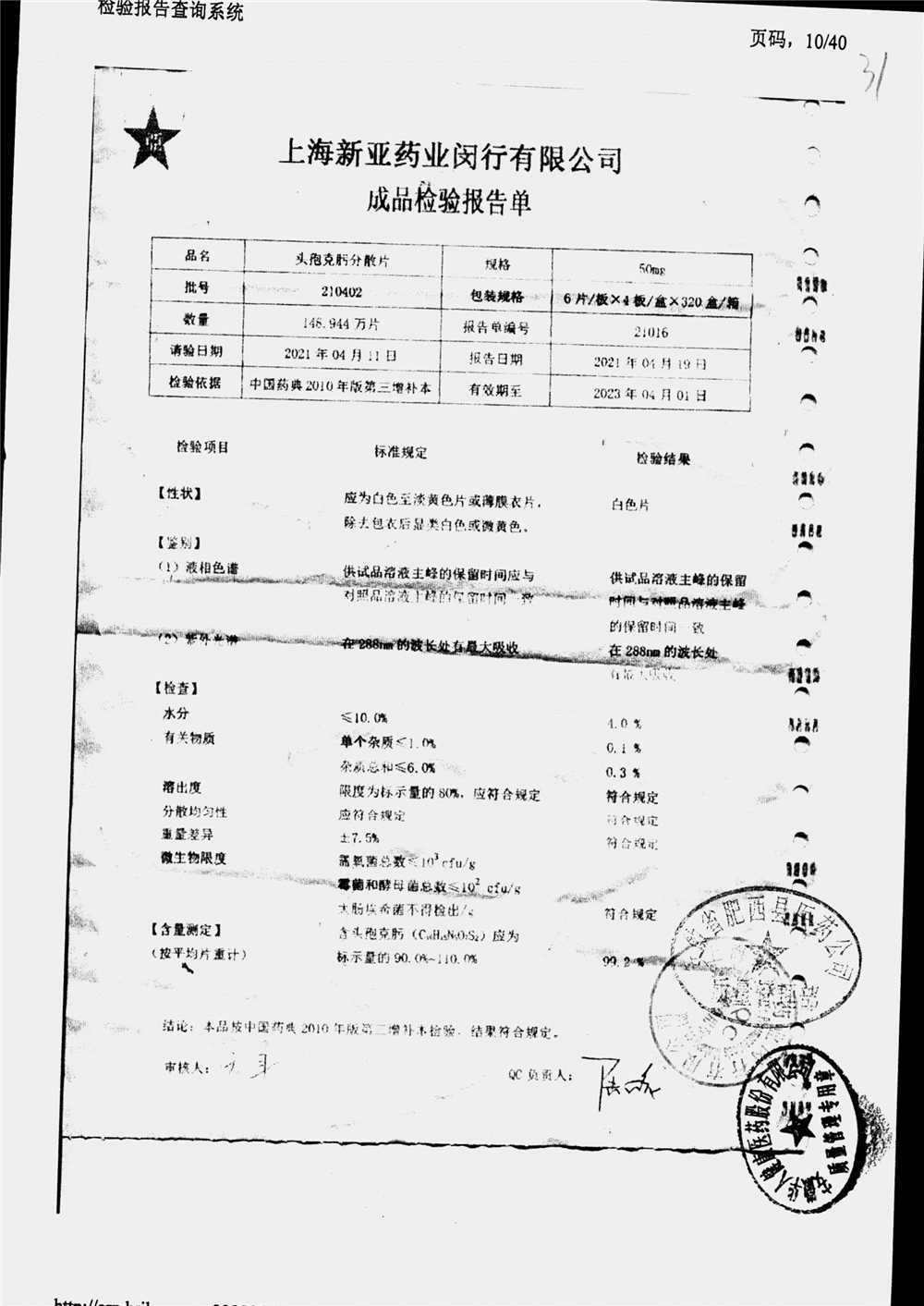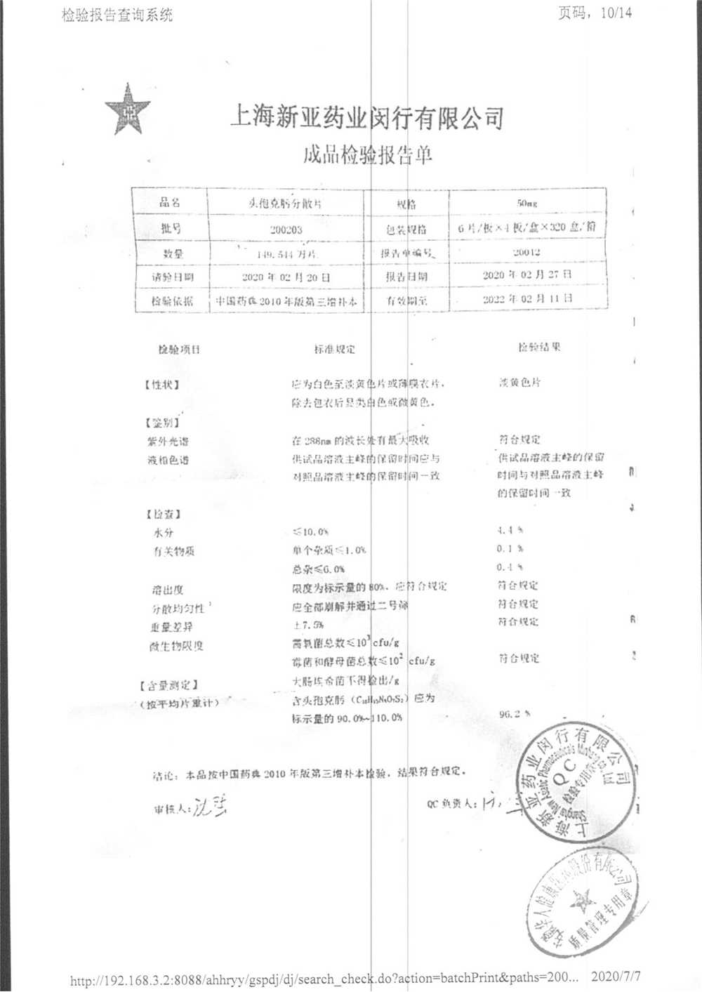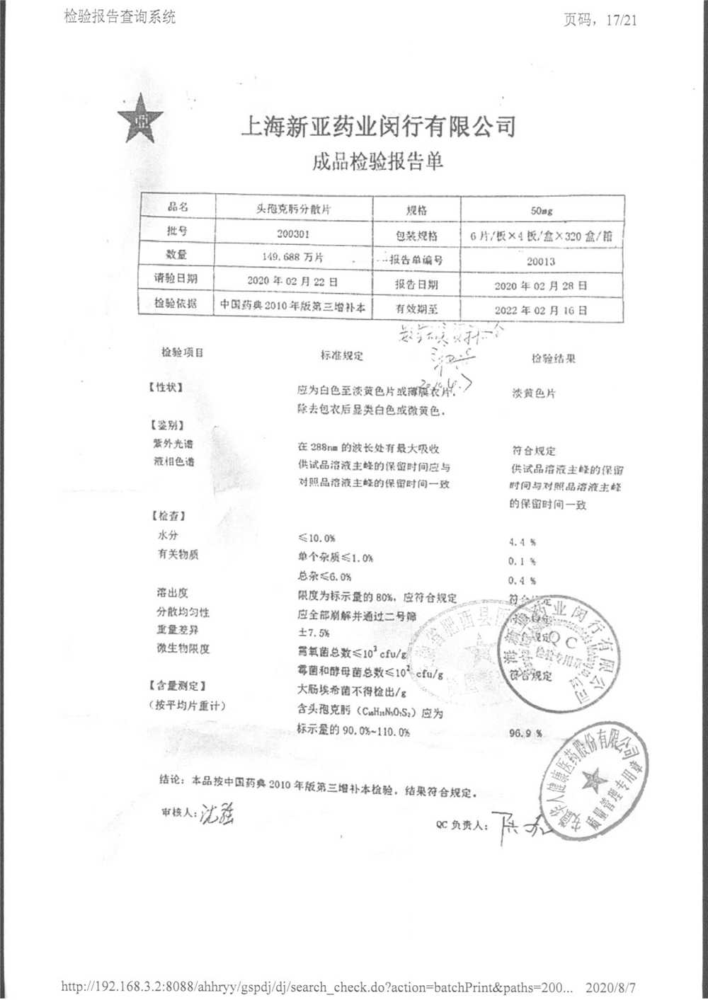 | 頭孢克肟分散片 | 50mg*24s | 210302 | 查看詳情 |