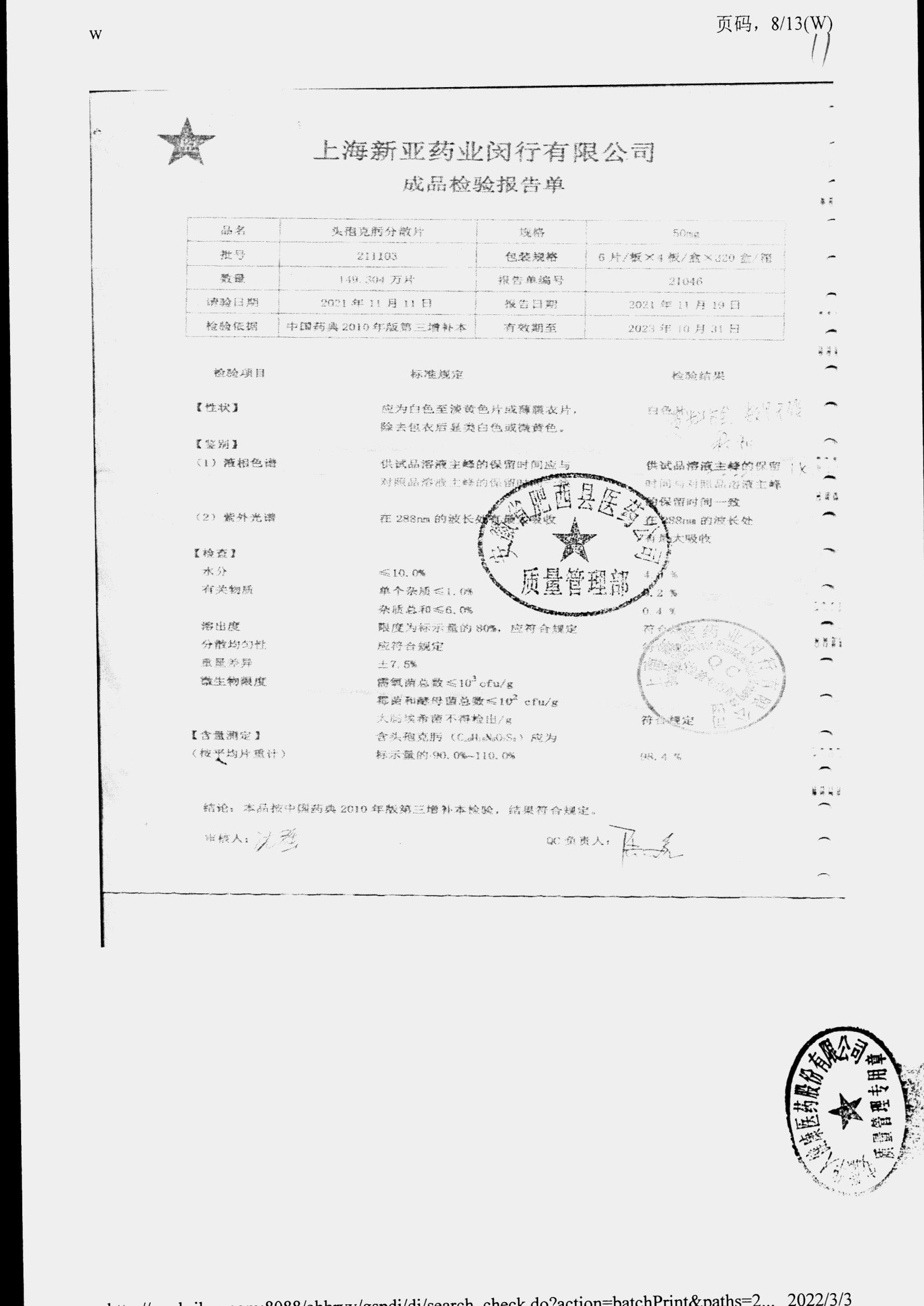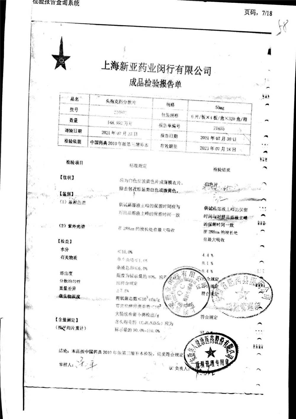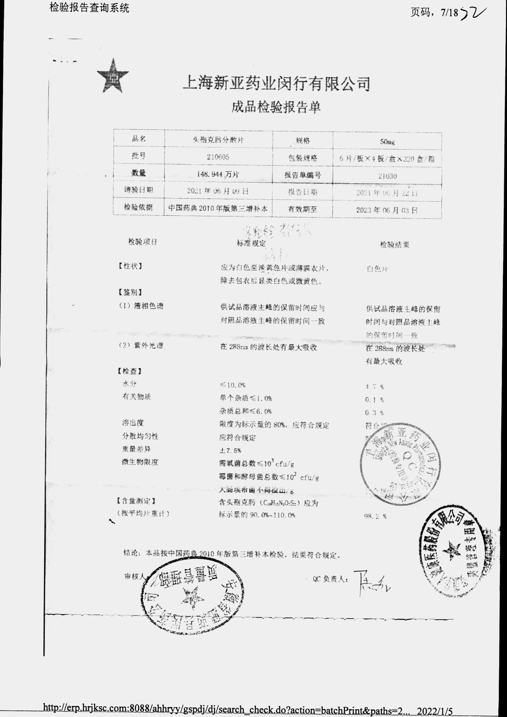 | 頭孢克肟分散片 | 50mg*24s | 210802 | 查看詳情 |