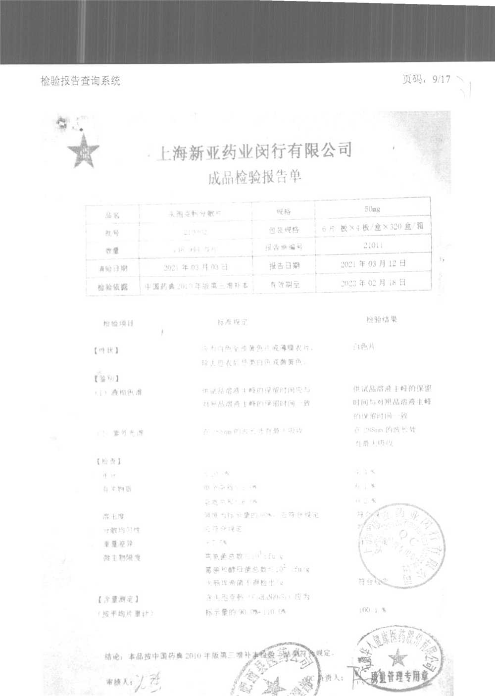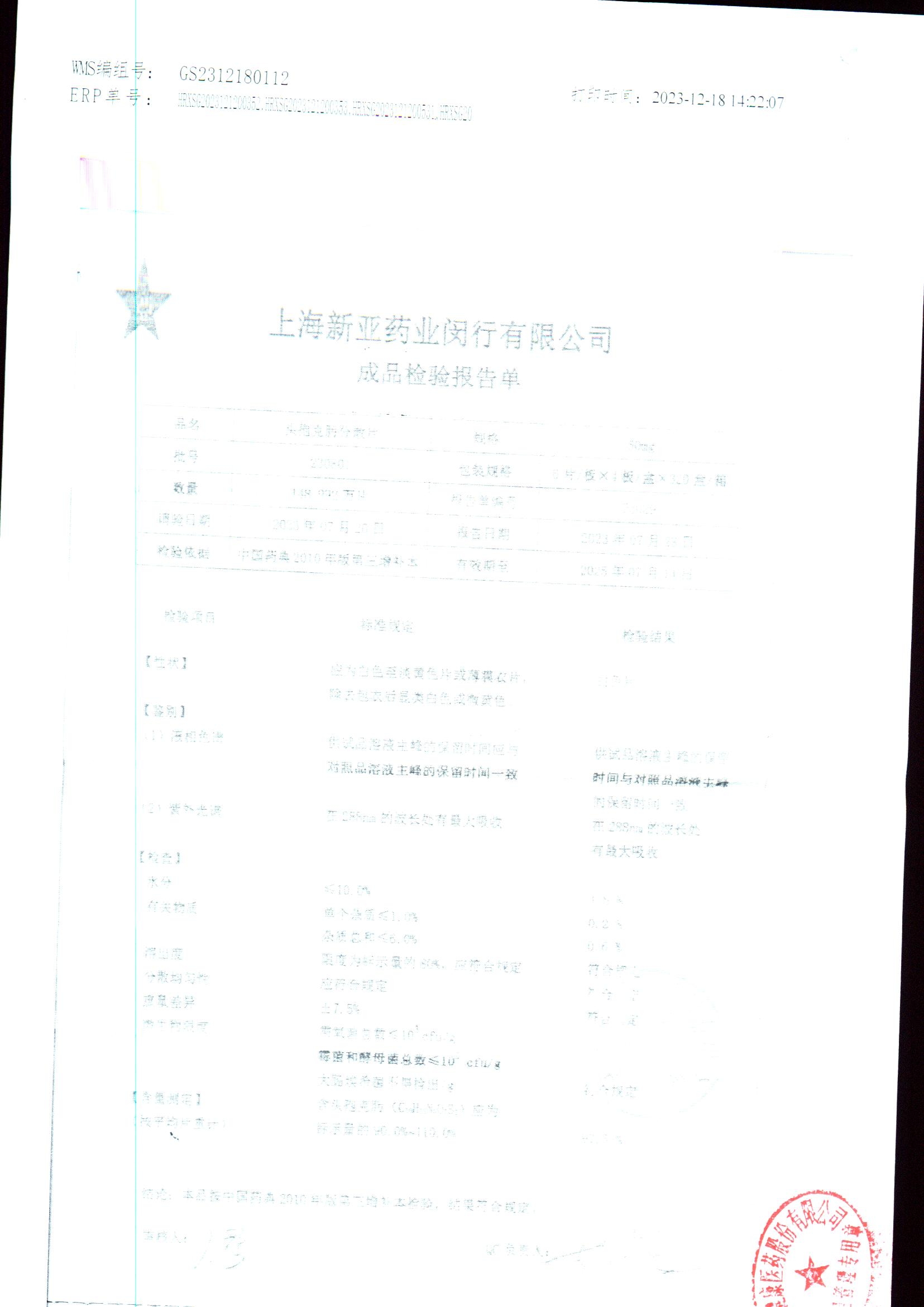 | 名稱 | 規(guī)格 | 批號(hào) | 藥檢報(bào)告 |
