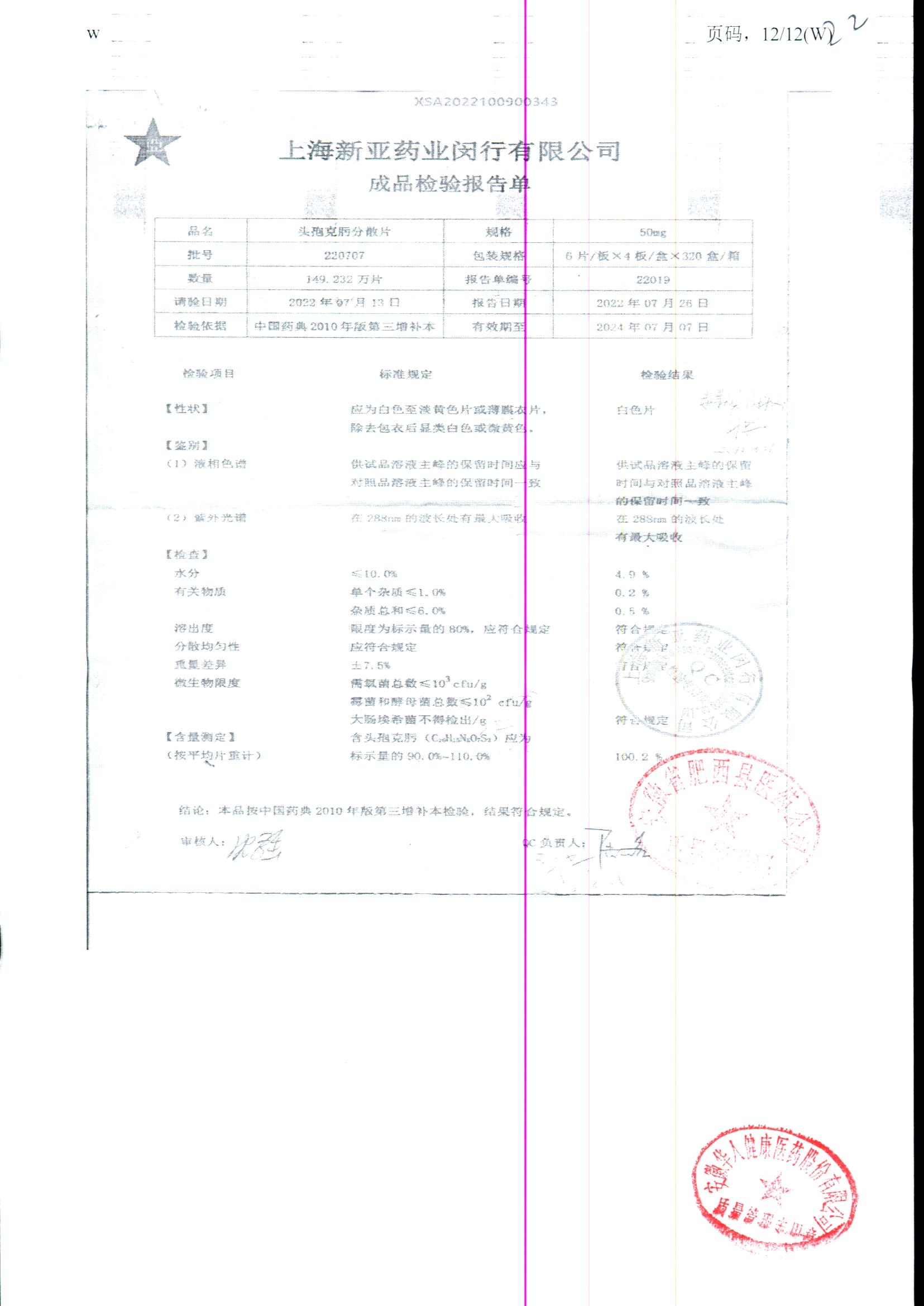 | 頭孢克肟分散片 | 50mg*24s | 221202 | 查看詳情 |