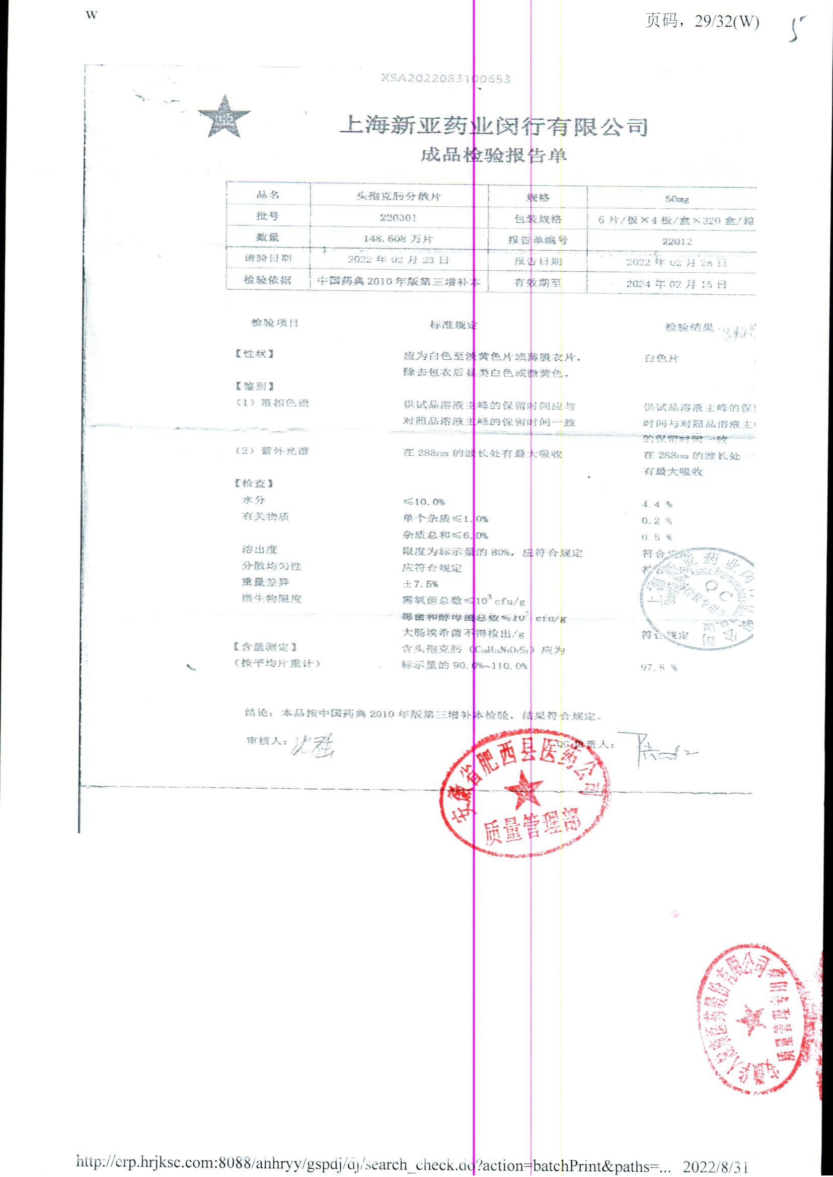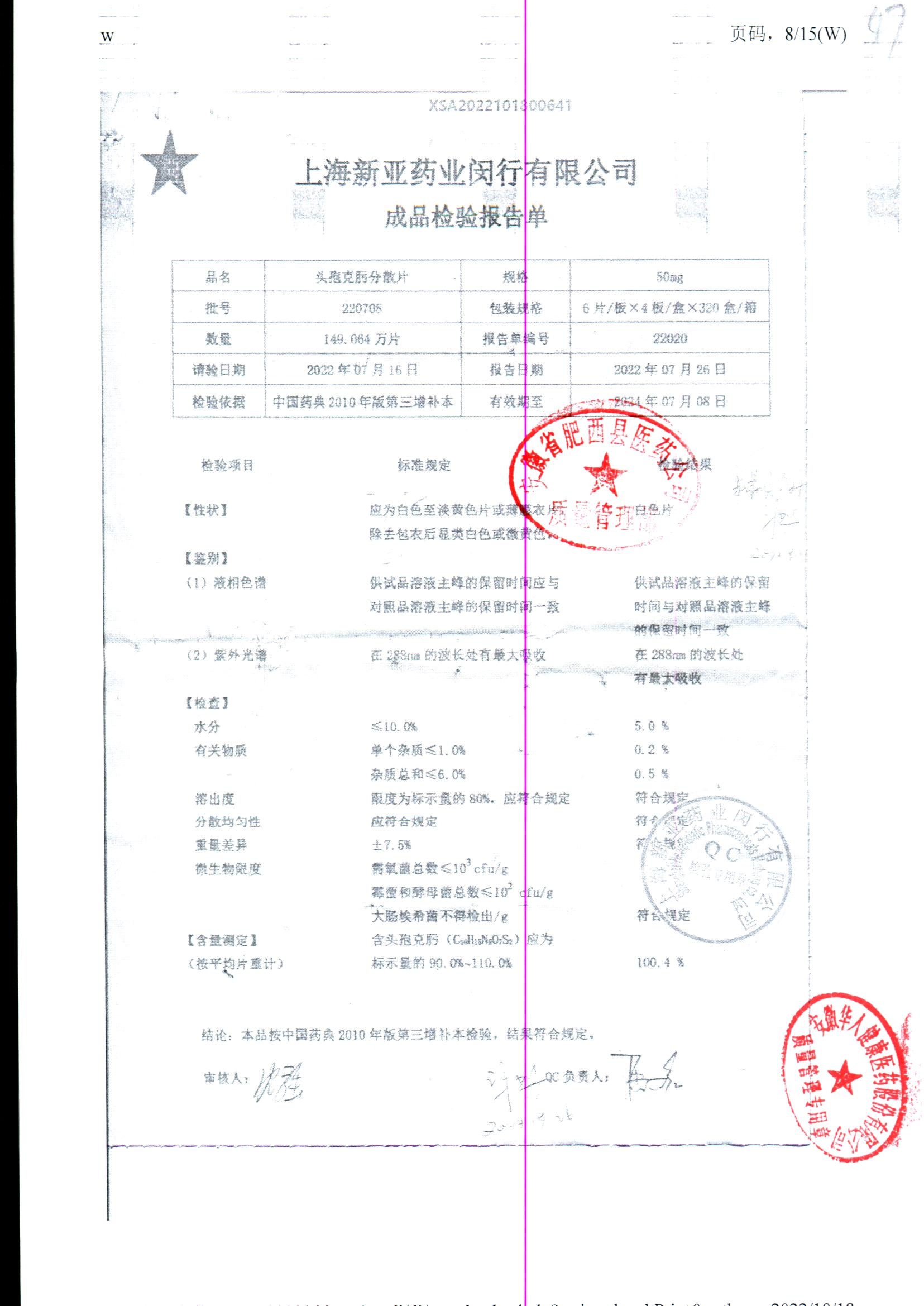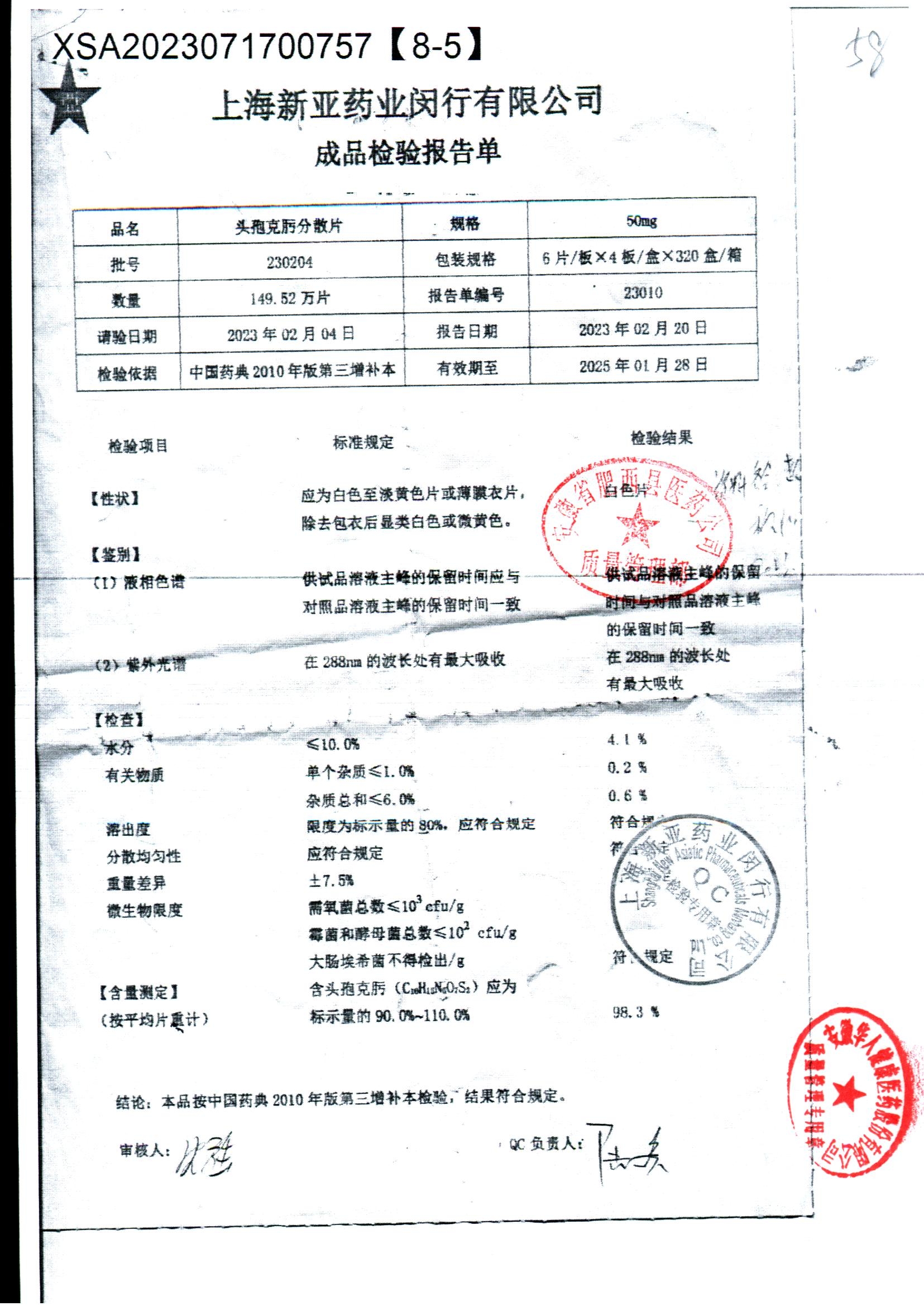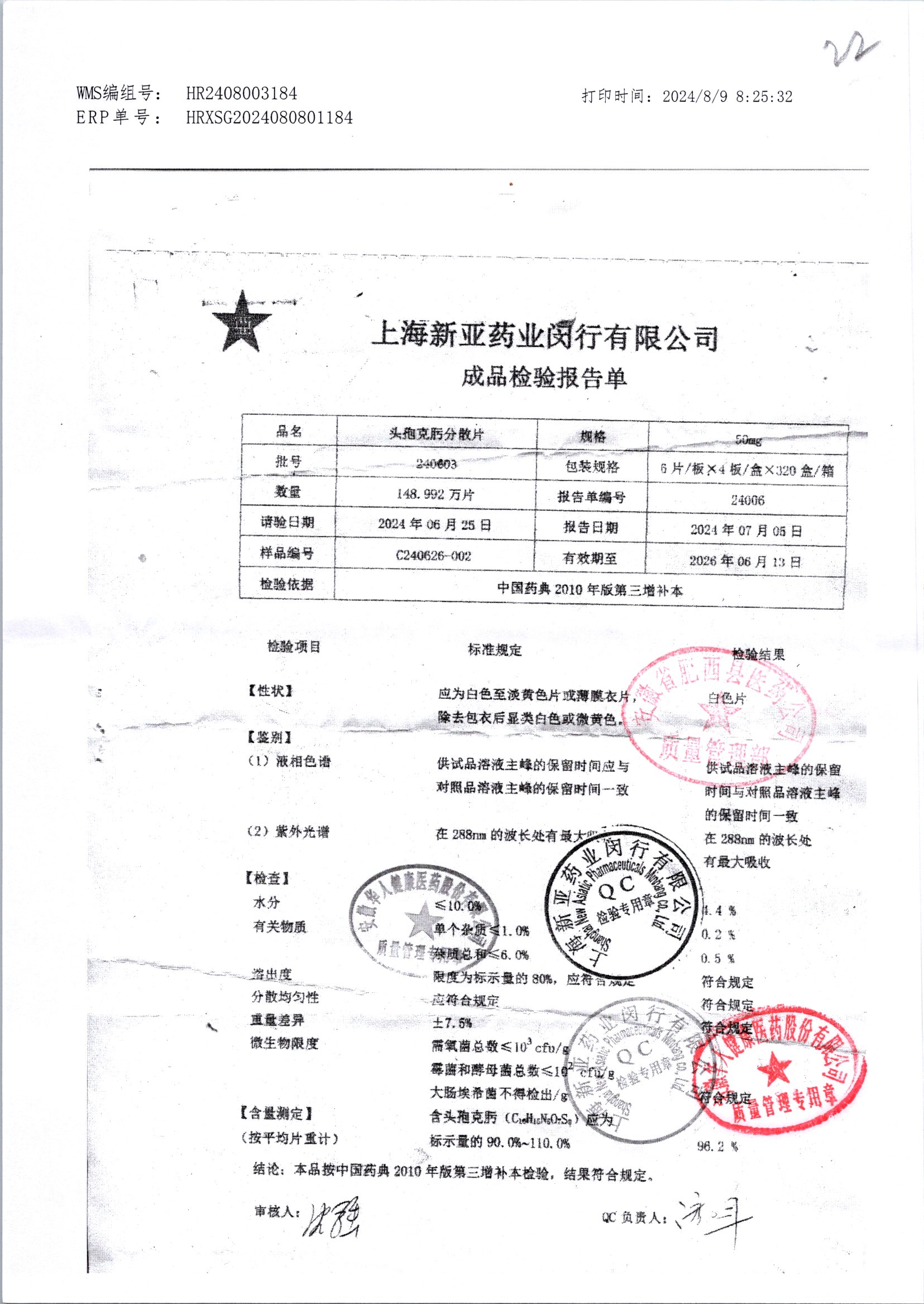| 頭孢克肟分散片 | 50mg*24s | 230801 | 查看詳情 |