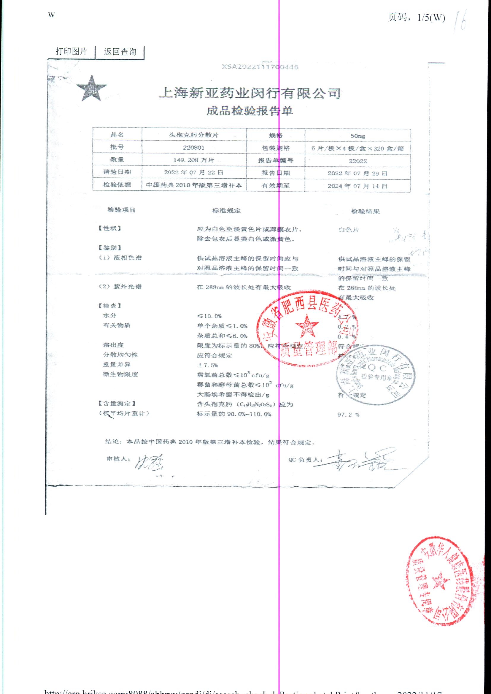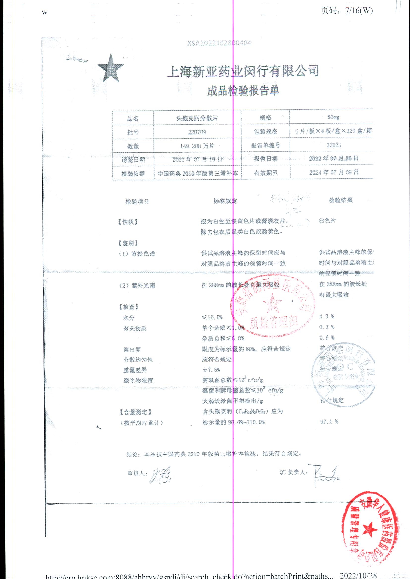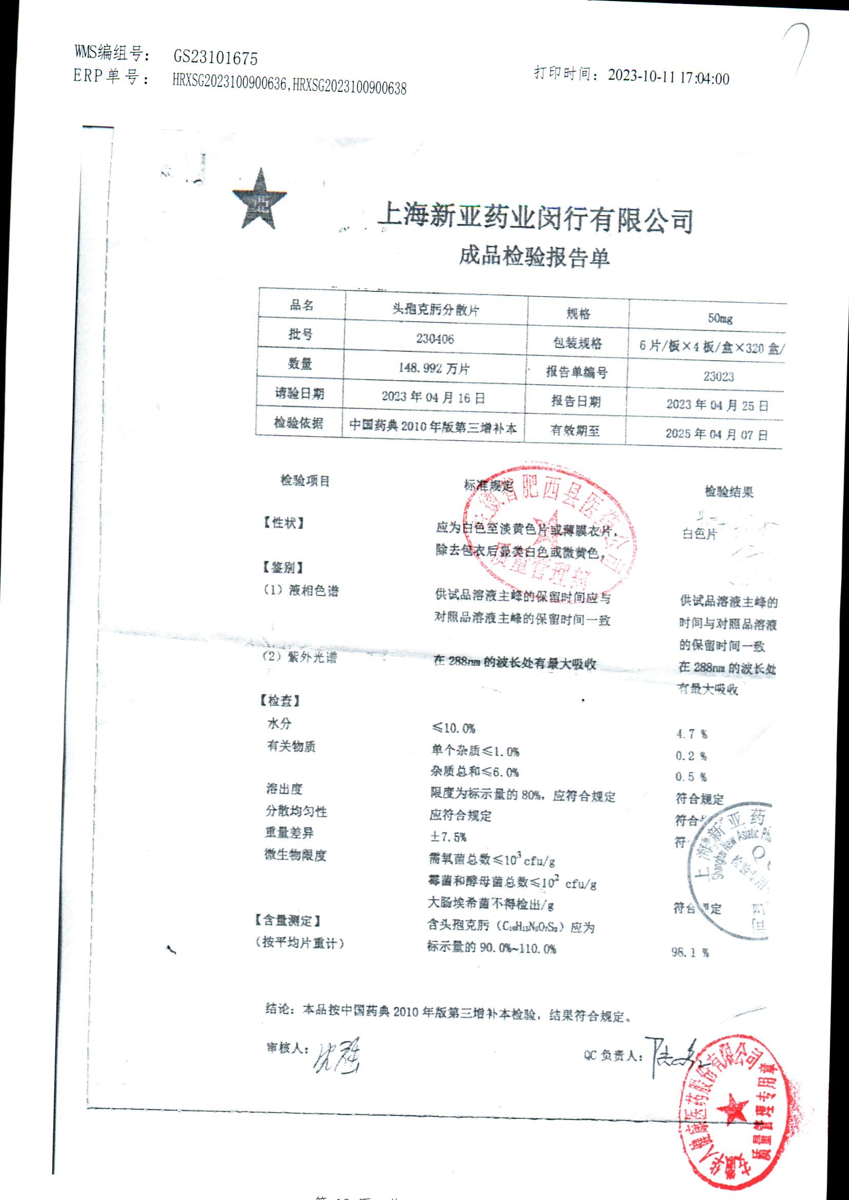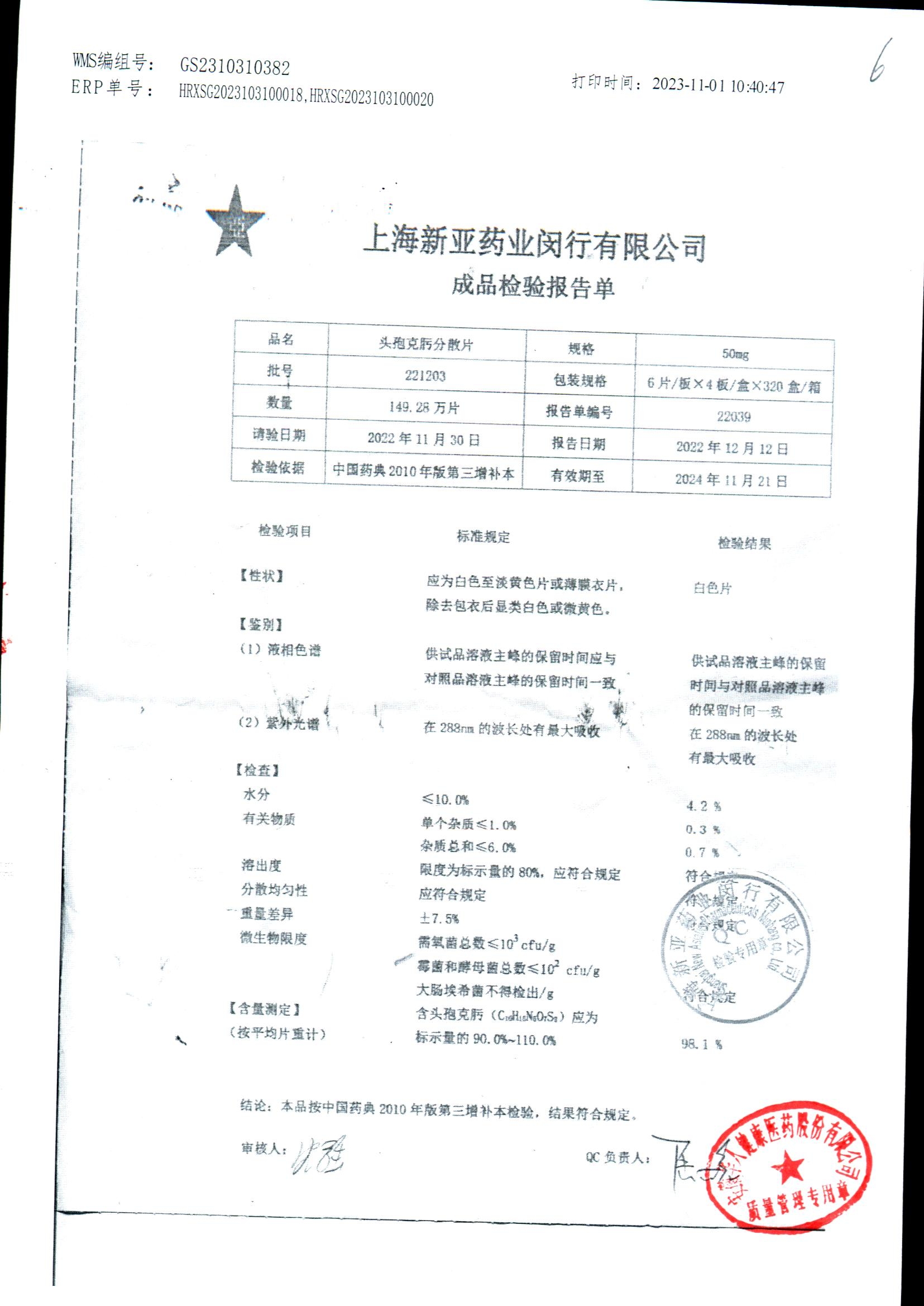 | 頭孢克肟分散片 | 50mg*24s | 230502 | 查看詳情 |
