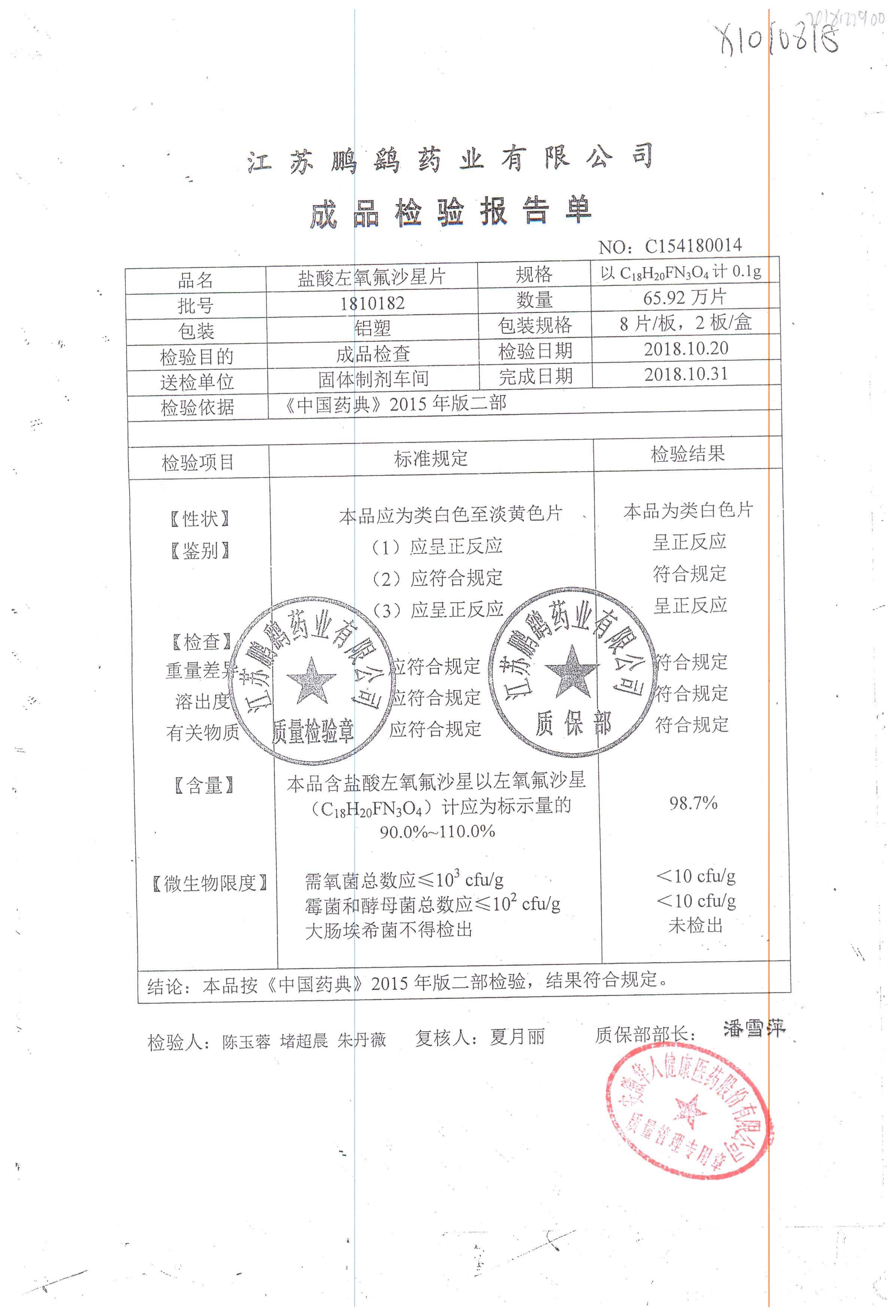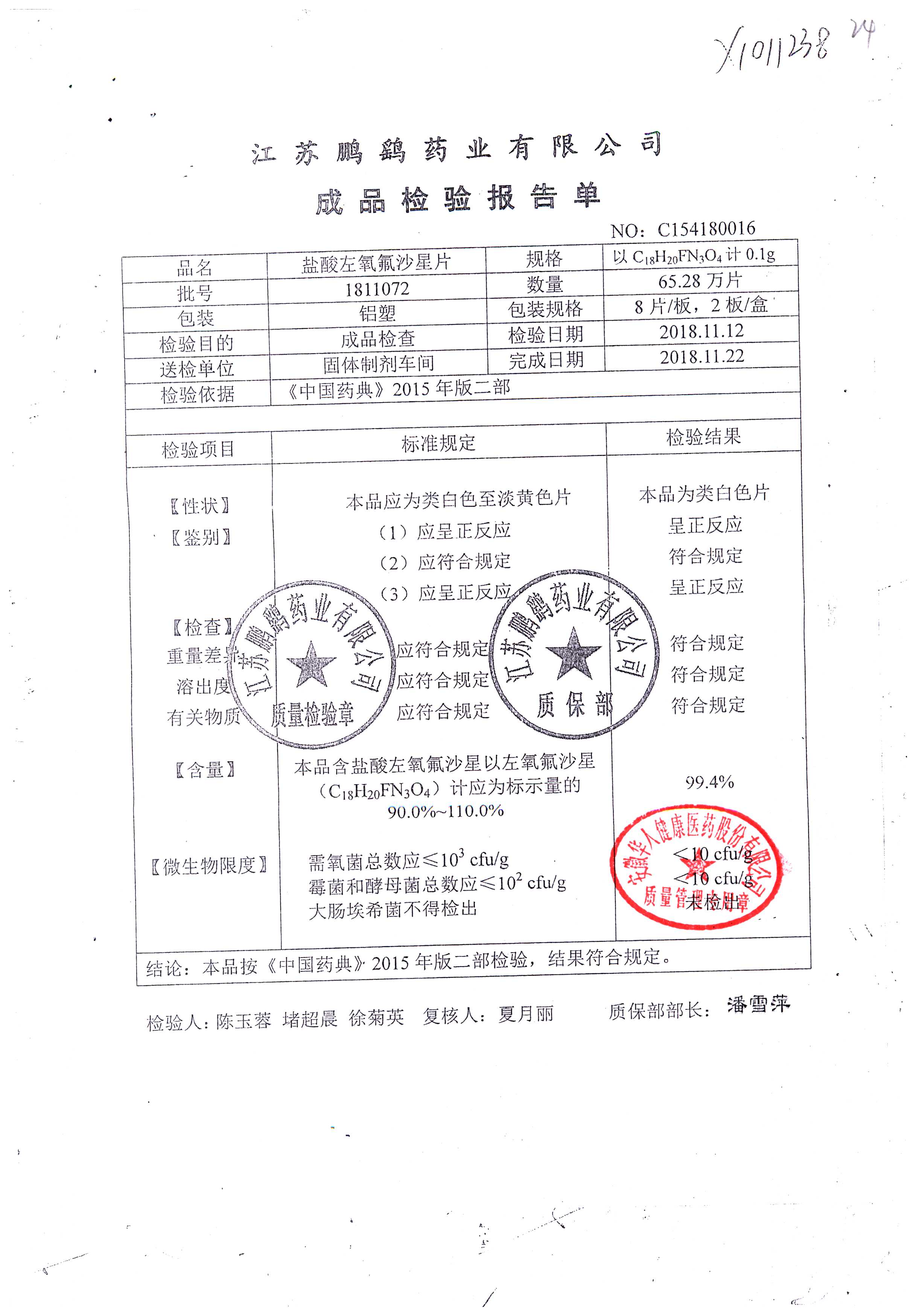 | 鹽酸左氧氟沙星片 | 16s | 1810182 | 查看詳情 |