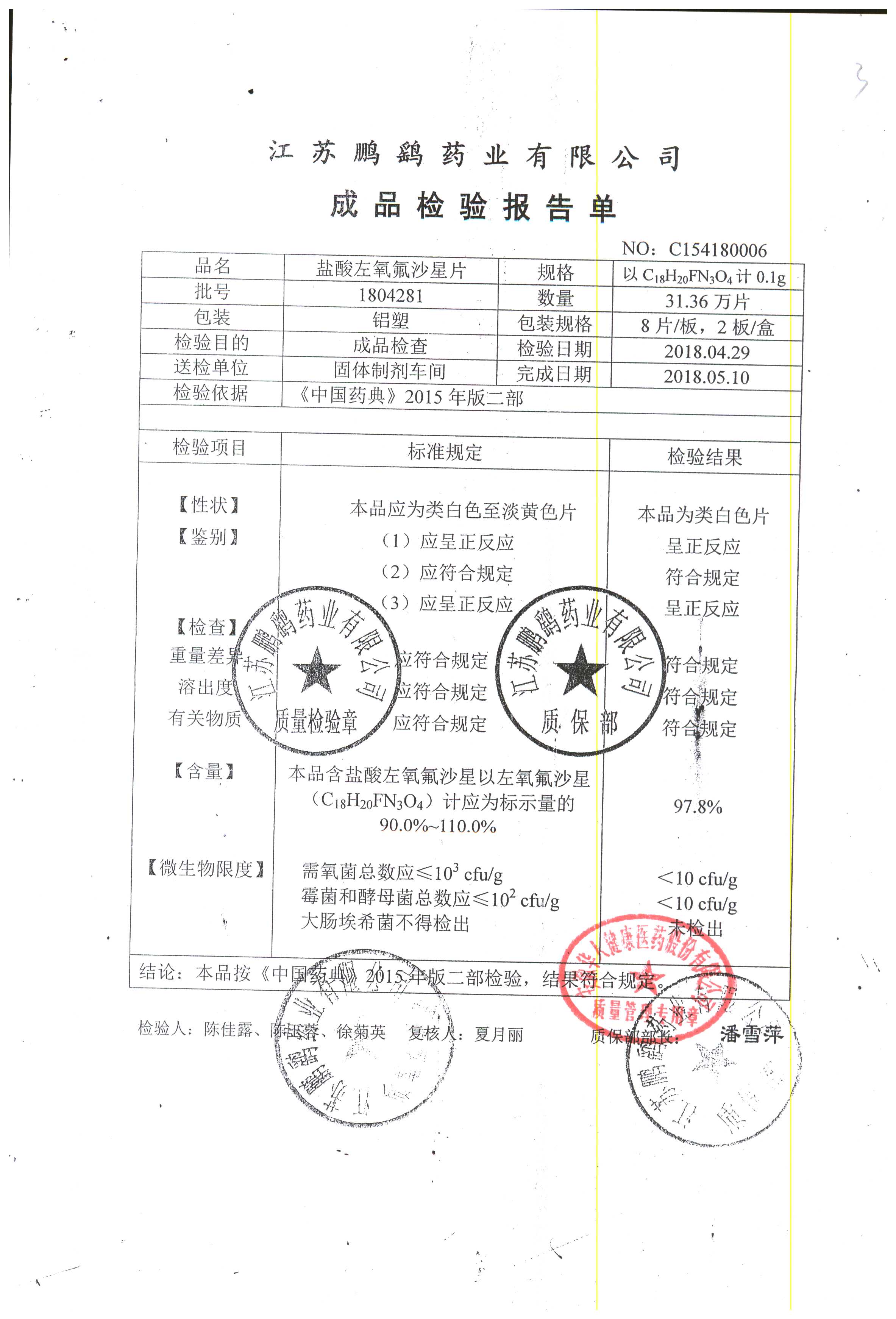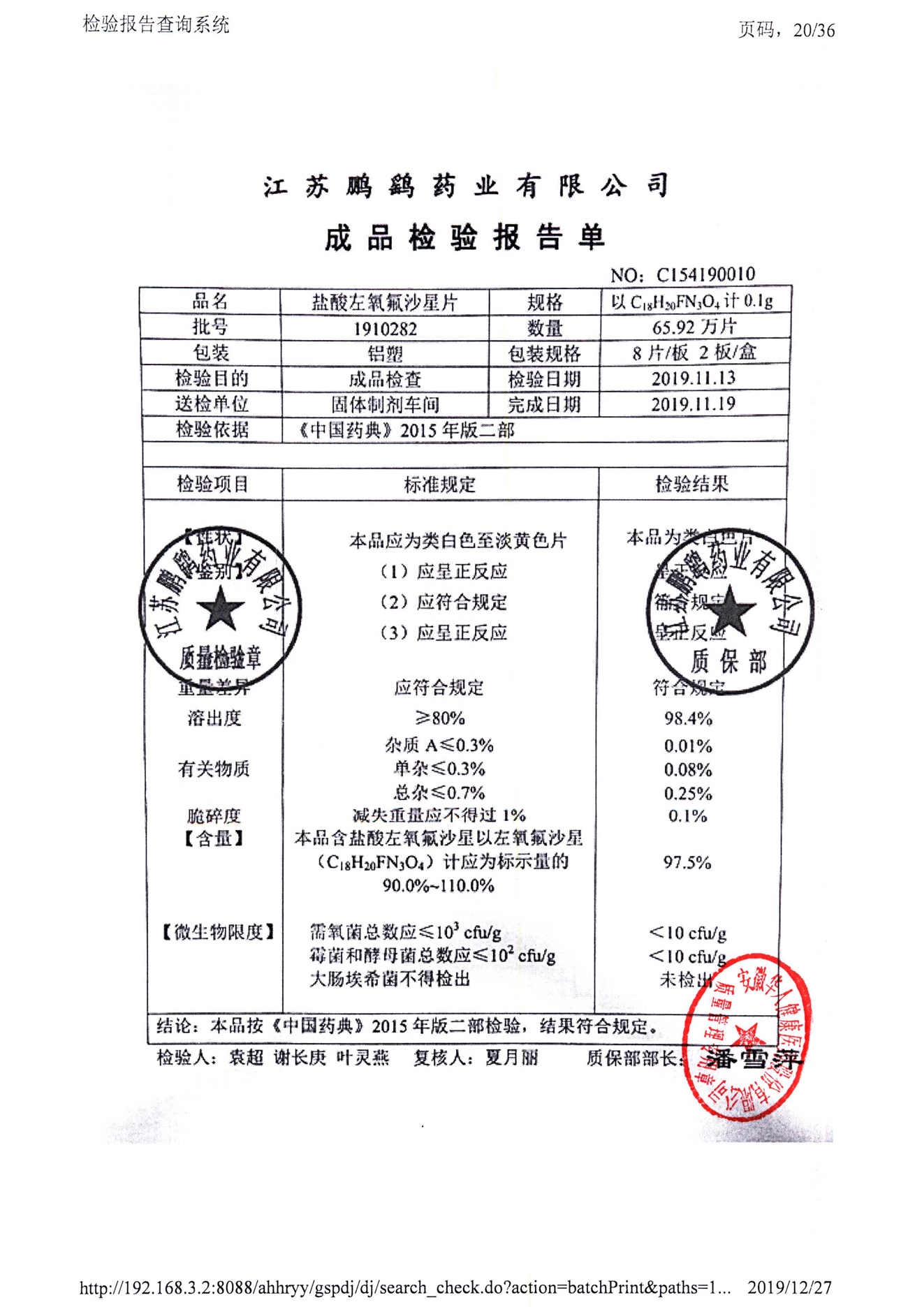 | 鹽酸左氧氟沙星片 | 16s | 2312051 | 查看詳情 |